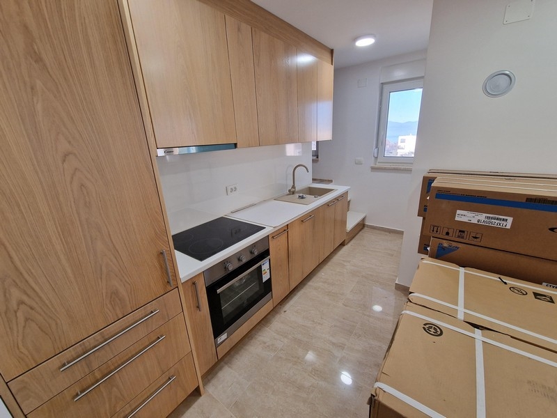 Die Wohnfläche von ca. 61 m² verteilt sich auf zwei Schlafzimmer, ein Bad, Wohnzimmer mit Küche, Abstellraum und eine überdachte Terrasse mit Meerblick.