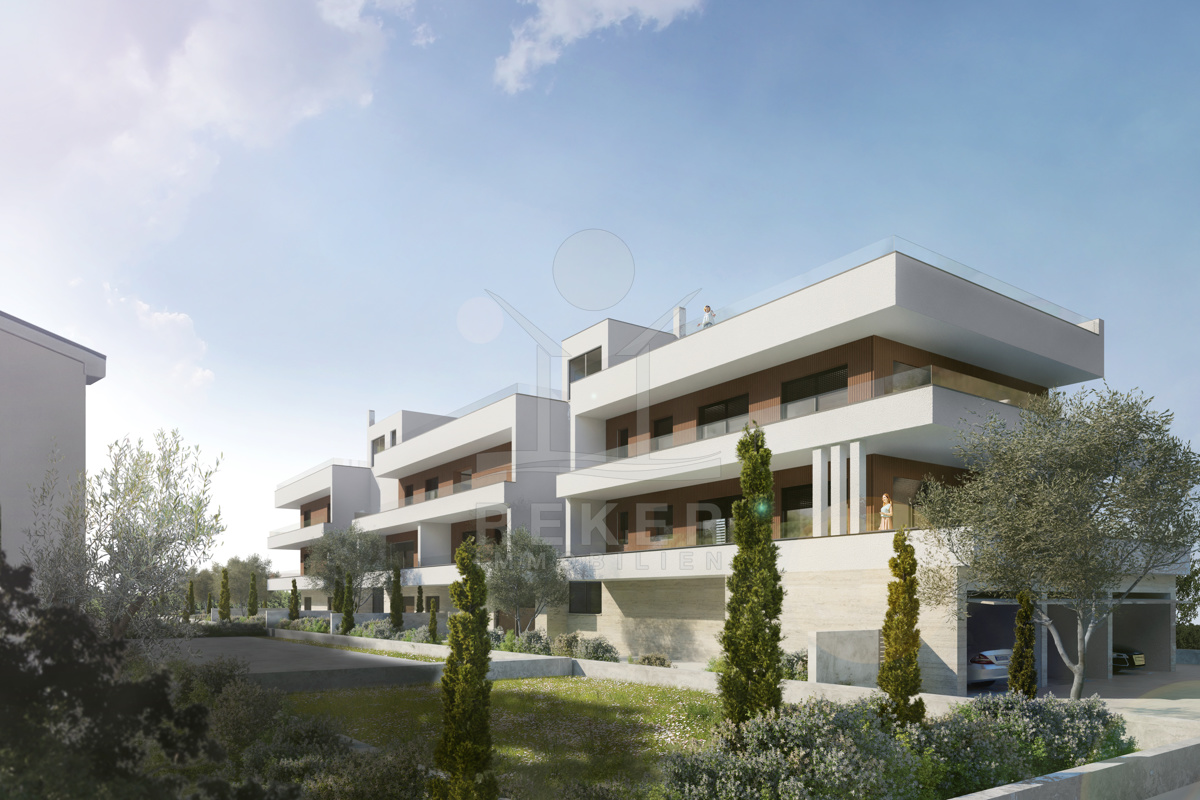 Das Gebäude? Hochwertig gebaut, mit einem klaren Fokus auf Design, Qualität und Ästhetik. Drei Etagen, zehn Wohnungen – jede für sich besonders. Im Erdgeschoss haben die Wohnungen private Gartenanteile. Die Einheiten im zweiten Obergeschoss verfügen über große Dachterrassen mit weitem Meerblick. Großzügige Grundrisse, große Fensterflächen, viel Tageslicht. Der Bau schreitet zügig voran, mit einer geplanten Fertigstellung im Mai 2026. Ein Aufzug verbindet alle Etagen. Jede Wohnung kommt mit zwei Stellplätzen – bei manchen auch inklusive Garage.