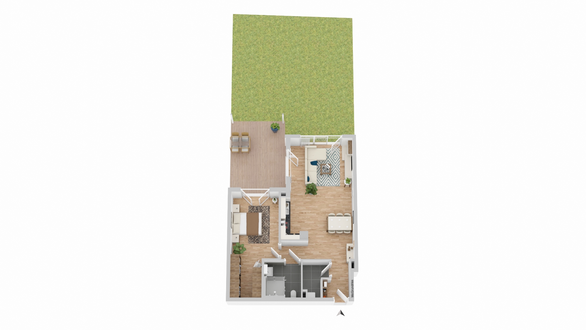 - Terrasse mit Gartenzugang - Hauswirtschaftsraum - Badezimmer mit Dusche - Viel Tageslicht - Offene Küche - Fußbodenheizung