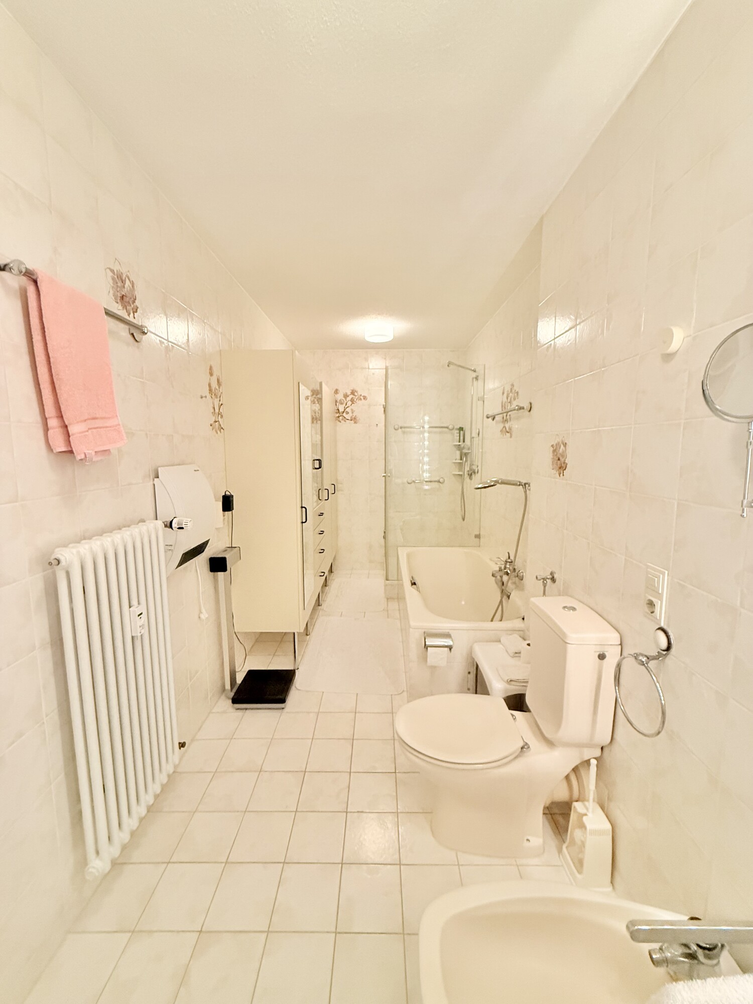 Über einen weiteren Flur gelangen Sie linkseitig in das schöne Badezimmer, welches ausreichend Platz bietet. Eine Dusche und Badewanne ist vorhanden.