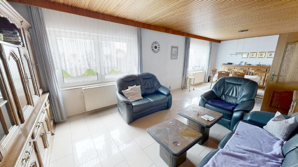 Zurück im Haus bildet das Wohn-/Esszimmer das Herzstück der Immobilie und begeistert dank zahlreicher Fensterflächen mit einem freundlichen und lichtdurchfluteten Wohnambiente.