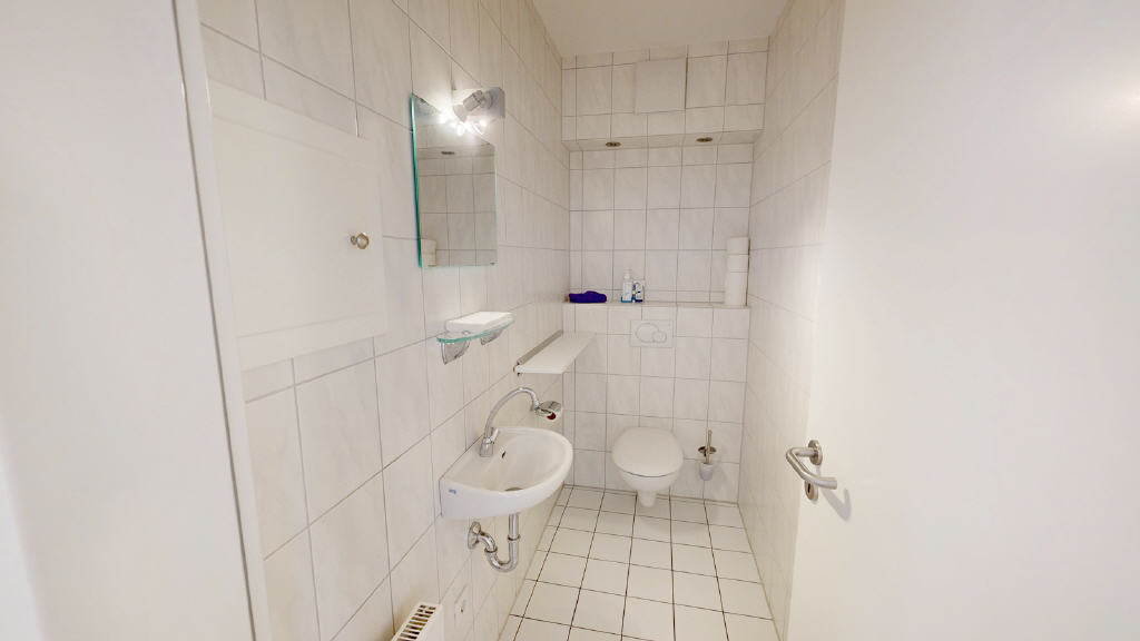 Die Fläche wurde zuvor als Arztpraxis genutzt, entsprechend finden sich in zwei Räumen noch Möbelzeilen mit Waschbecken. Die Gewerbefläche eignet sich aber ebenso hervorragend für ein modernes Büro, ein Beratungsunternehmen oder eine therapeutische Praxis.