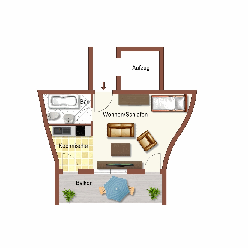 - großzügiger Wohn-/Ess-/Schlafbereich mit Zugang zum Balkon