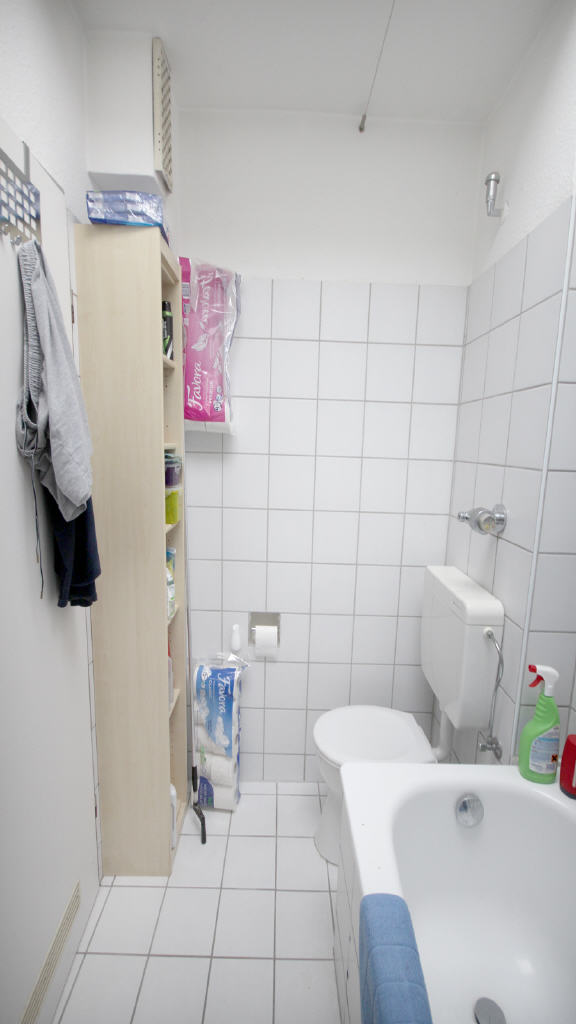 Die freundlich-helle Diele gibt eine erste gelungene Visitenkarte ab und bietet ausreichend Platz für eine Garderobe sowie ein Schuhregal. Das mit Laminat ausgelegte Wohn-/Esszimmer erlaubt durch seinen großzügigen Zuschnitt eine ideale Unterteilung von Wohn- und Essbereich. Ein großes Fenster sowie die bodentiefe Balkontüre (in 2013 erneuert) versorgen den Raum mit viel Tageslicht. Der gepflasterte Balkon erstreckt sich über die gesamte Wohn- und Schlafzimmerbreite und bietet somit ausreichend Platz für jegliche Gestaltungsmöglichkeiten. Das Schlafzimmer ist mit Parkettboden ausgelegt und wird von einem Fenster sonnenhell belichtet. Dank ihres idealen Zuschnitts gewährt diese Räumlichkeit jegliche Einrichtungs- und Möblierungswünsche. Das tagesbelichtete Badezimmer ist nahezu deckenhoch mit zeitlosen, weißen Wand- und Bodenfliesen versehen. Eine Badewanne, ein Waschtisch und ein WC beschreiben die Ausstattung. Die Küche der Wohnung präsentiert sich quadratisch und praktisch. Mit viel Licht und einem blauen Fliesenboden sowie einem weißen Fliesenspiegel zeigt sie sich einladend freundlich. Ein eigener, der Wohnung zugeordneter Kellerraum, ein gemeinschaftlich genutzter Wasch- und Trockenraum sowie ein Fahrradkeller befinden sich im Untergeschoss.