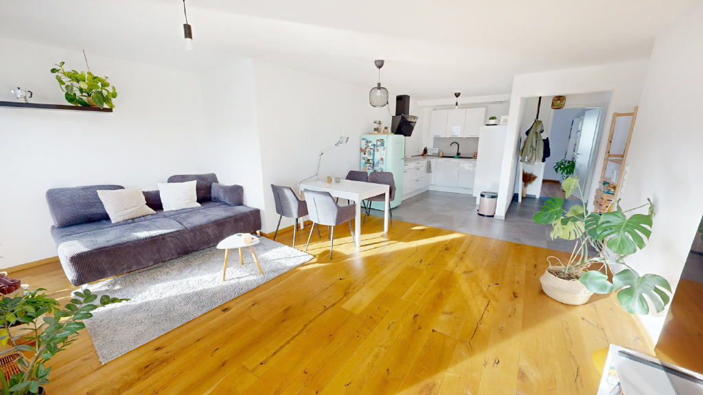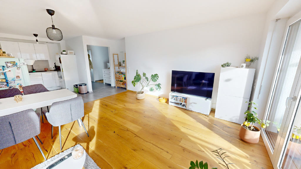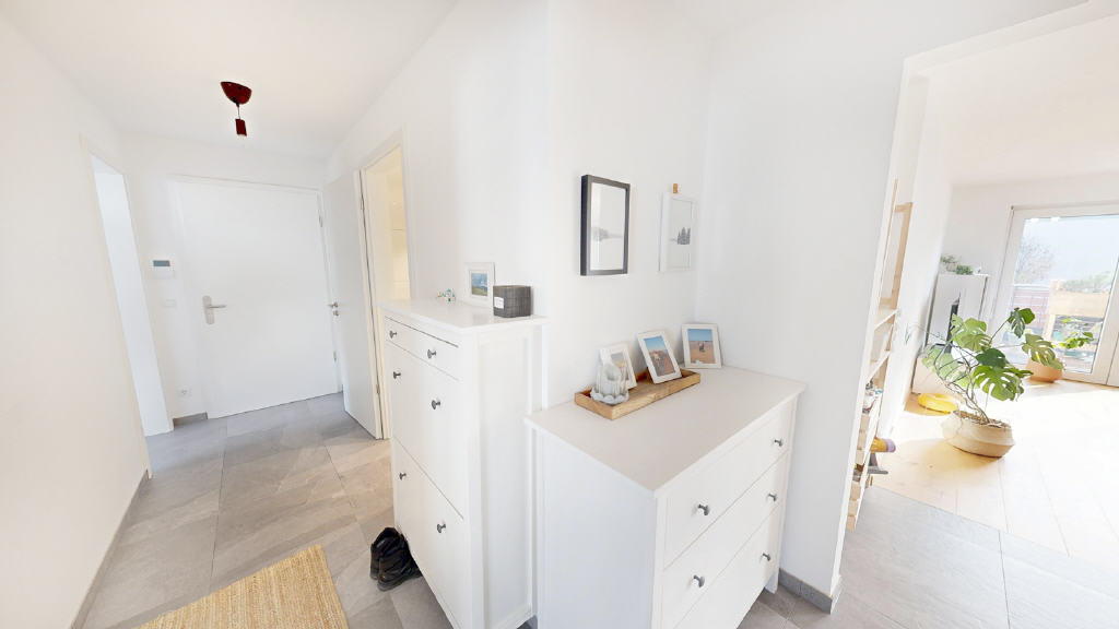 Schon beim Betreten durch die weiße Sicherheits-Wohnungstür fallen die optimale Aufteilung und einladende Atmosphäre auf. Durchgängig hochwertige Ausstattungsmerkmale werden beschrieben durch einen Mix aus verlegtem, honigfarbenen Echtholz-Parkett und großformatigen, anthrazitfarbenen Bodenfliesen sowie eleganten, weißen Innentüren.