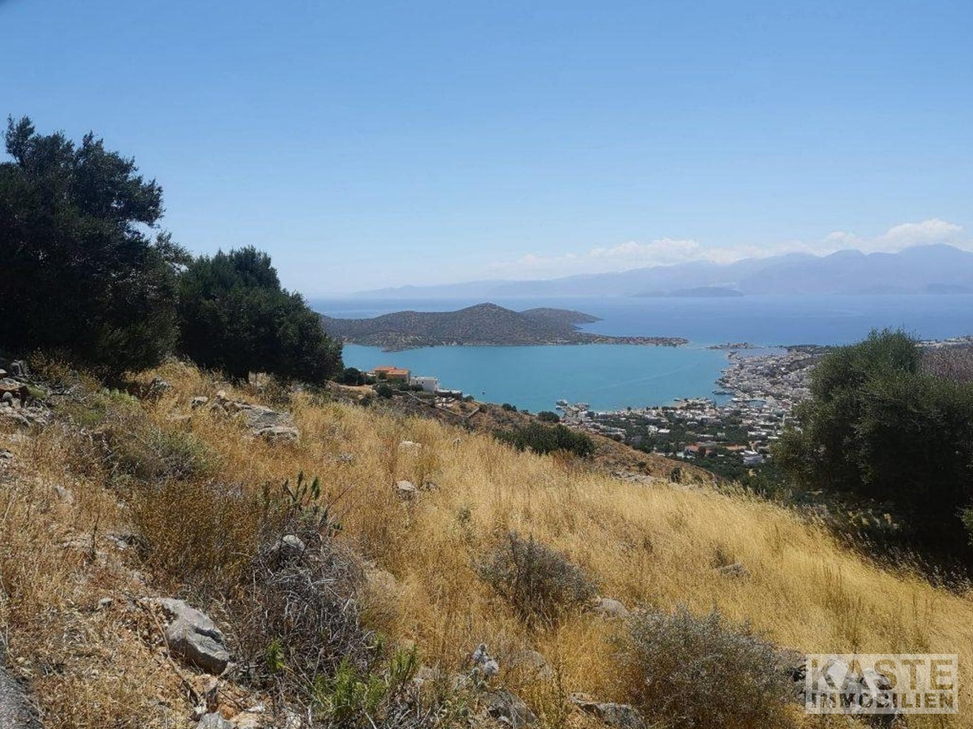 Ein schön gelegenes, erhöhtes Baugrundstück, das einen atemberaubenden Blick auf die Bucht von Elounda bietet.