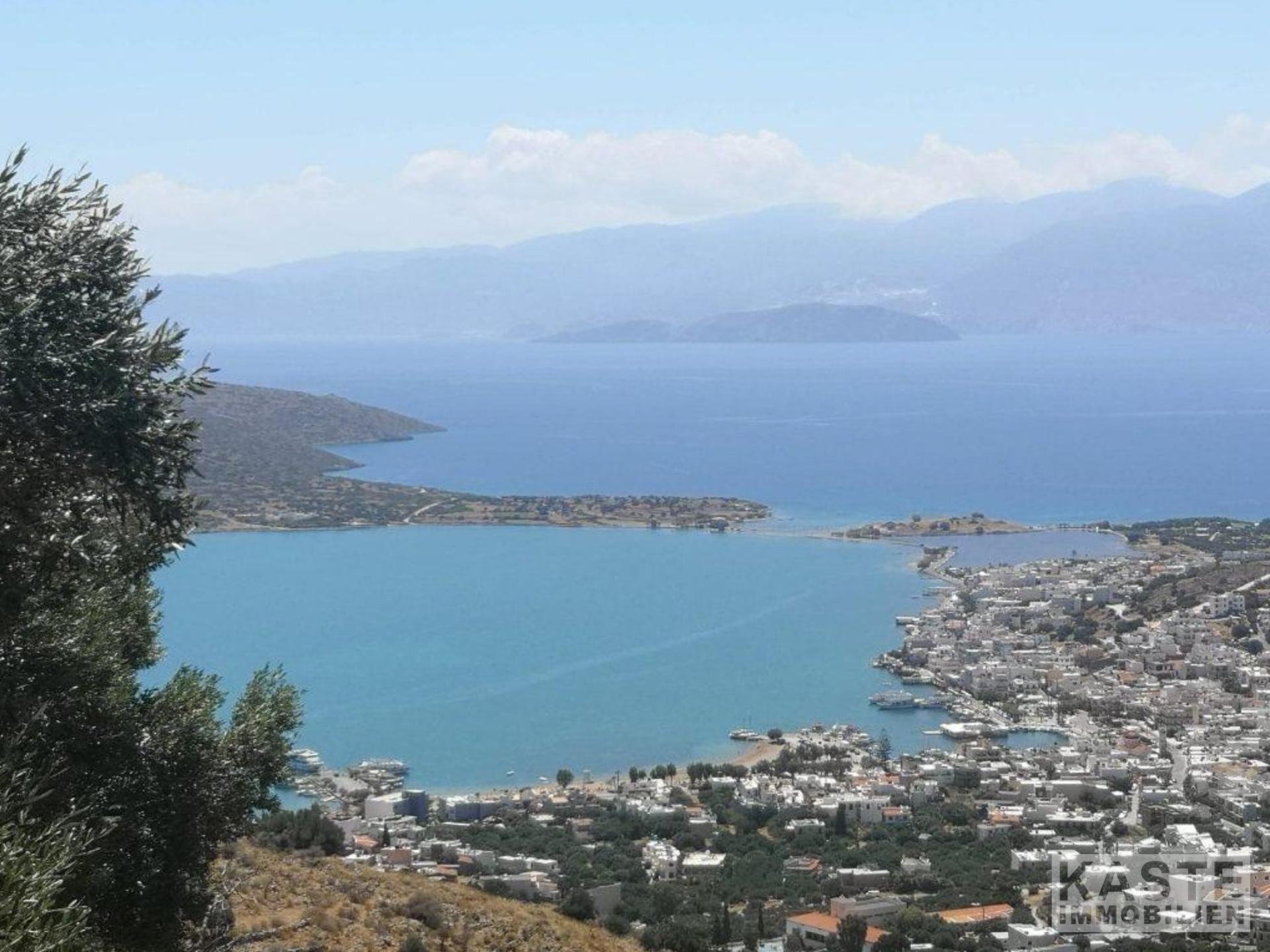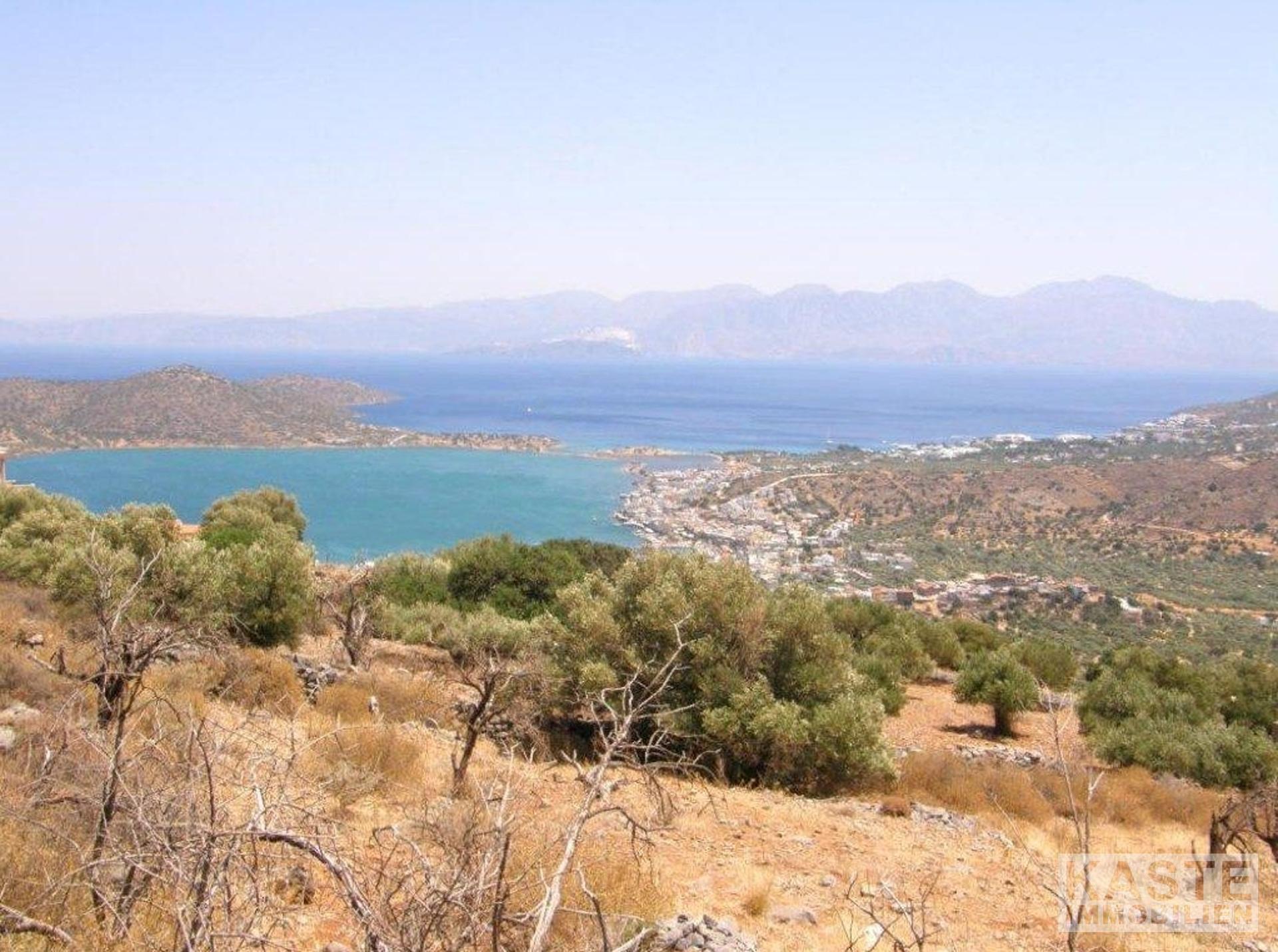 Ein schön gelegenes, erhöhtes Baugrundstück, das einen atemberaubenden Blick auf die Bucht von Elounda bietet.