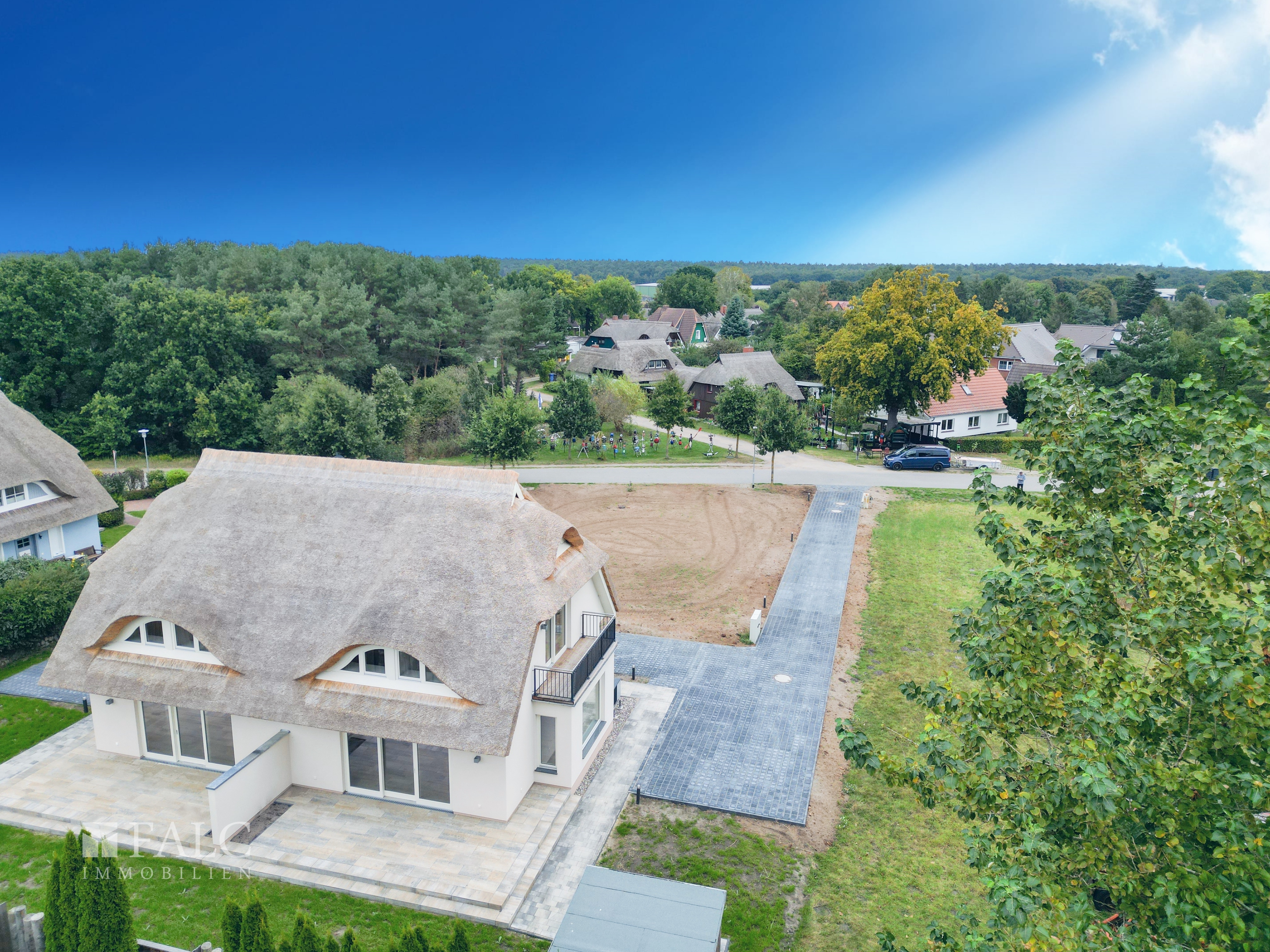 Diese Wohnimmobilie befindet sich in einer idyllischen und ruhigen Straße in Born a. Darß, einer malerischen kleinen Stadt an der Ostseeküste Deutschlands. Das Wohnumfeld zeichnet sich durch gepflegte, traditionell gestaltete Häuser und eine beeindruckende Nähe zur Natur aus. Die charakteristische Bebauung fügt sich harmonisch in die umgebende Landschaft ein und vermittelt ein Gefühl von Ruhe und Geborgenheit.