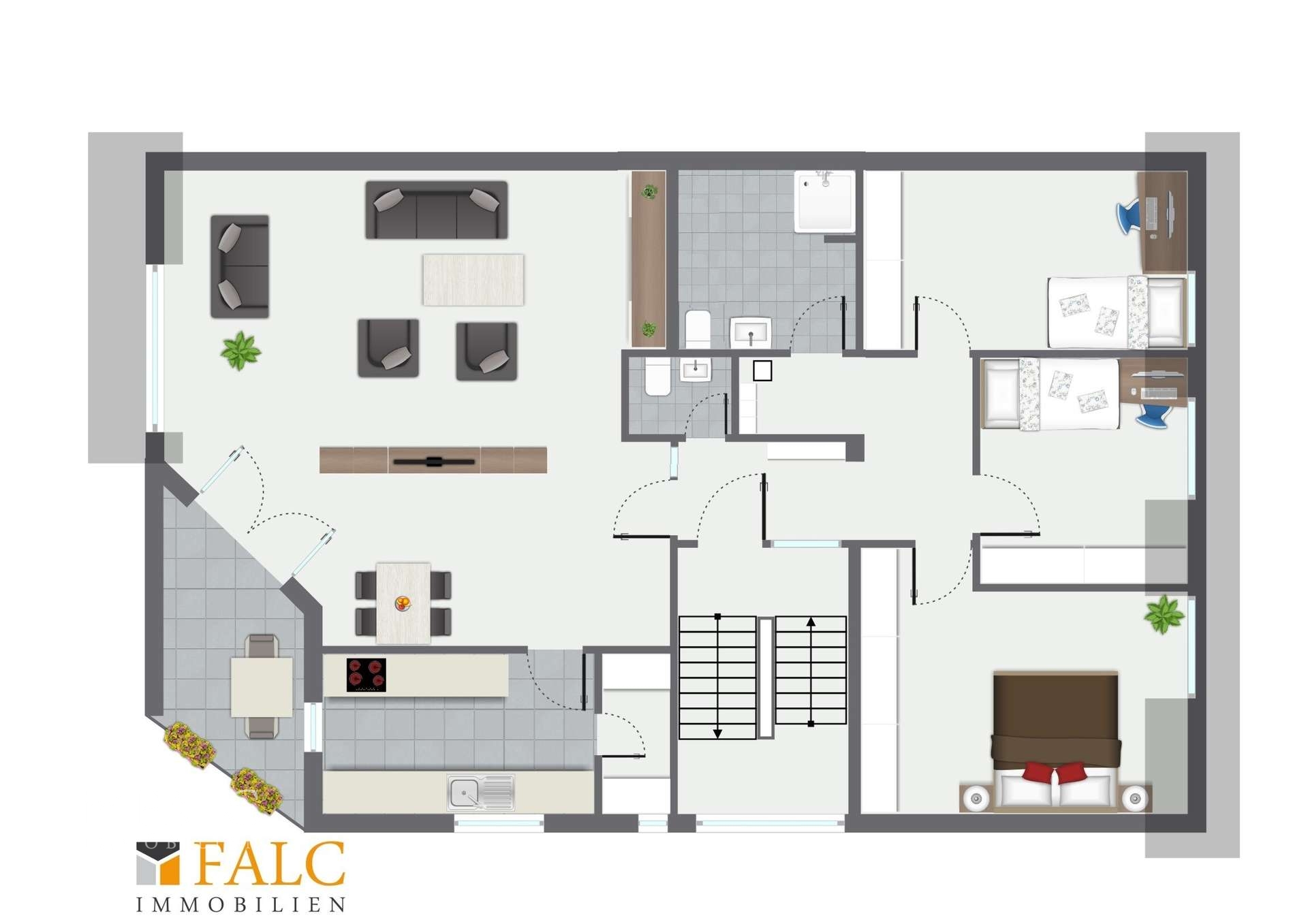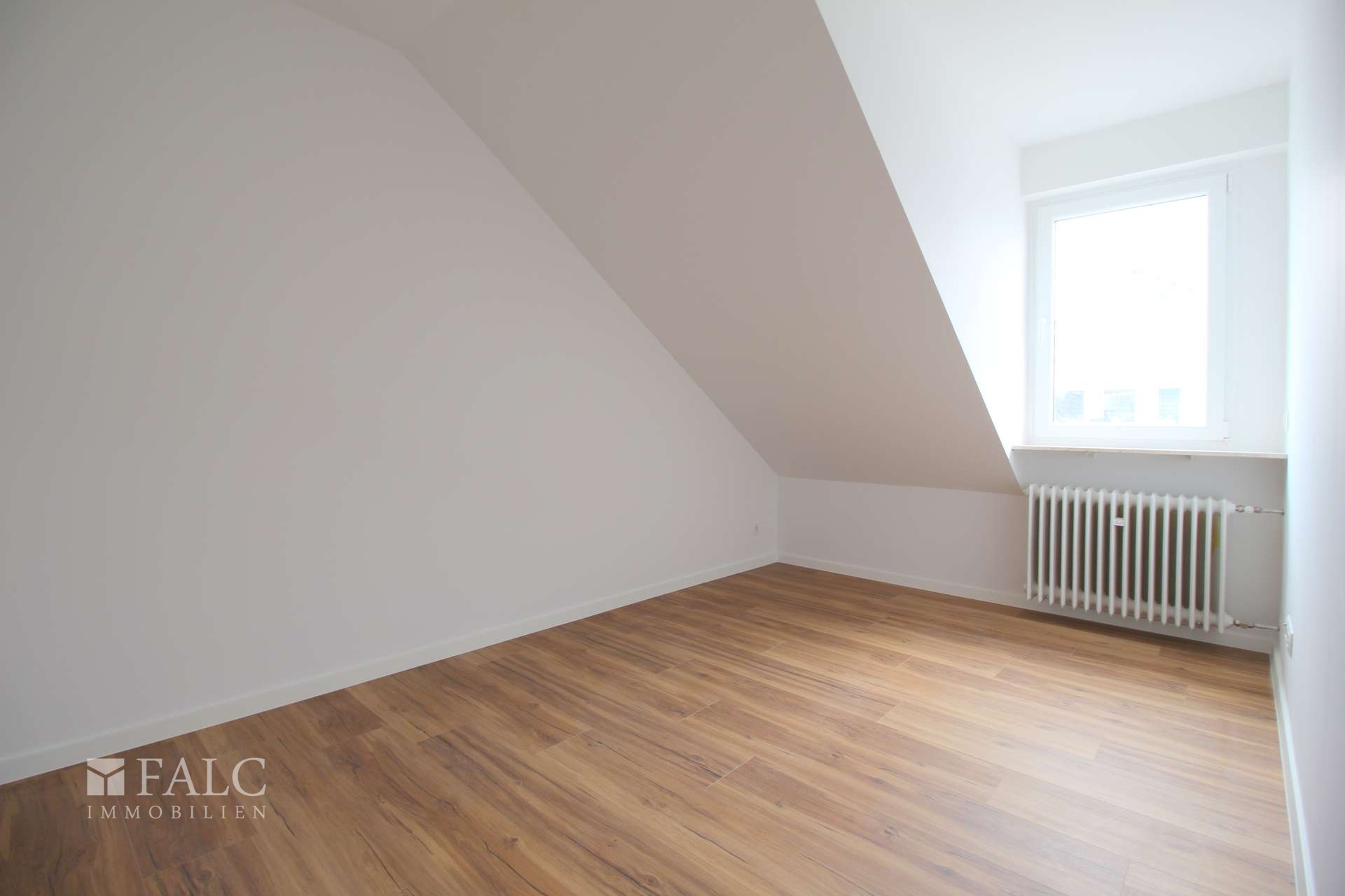 Diese im Jahr 2024 kernsanierte Wohnung im Dachgeschoss bietet auf einer Wohnfläche von ca. 106 m² optimalen Raum für Paare oder die kleine Familie. Insgesamt stehen Ihnen ein weitläufiges und lichtdurchflutetes Wohnzimmer zur Verfügung, das direkt an die Küche mit Vorratsraum angrenzt. Beide Zimmer haben einen Ausgang zum Balkon.