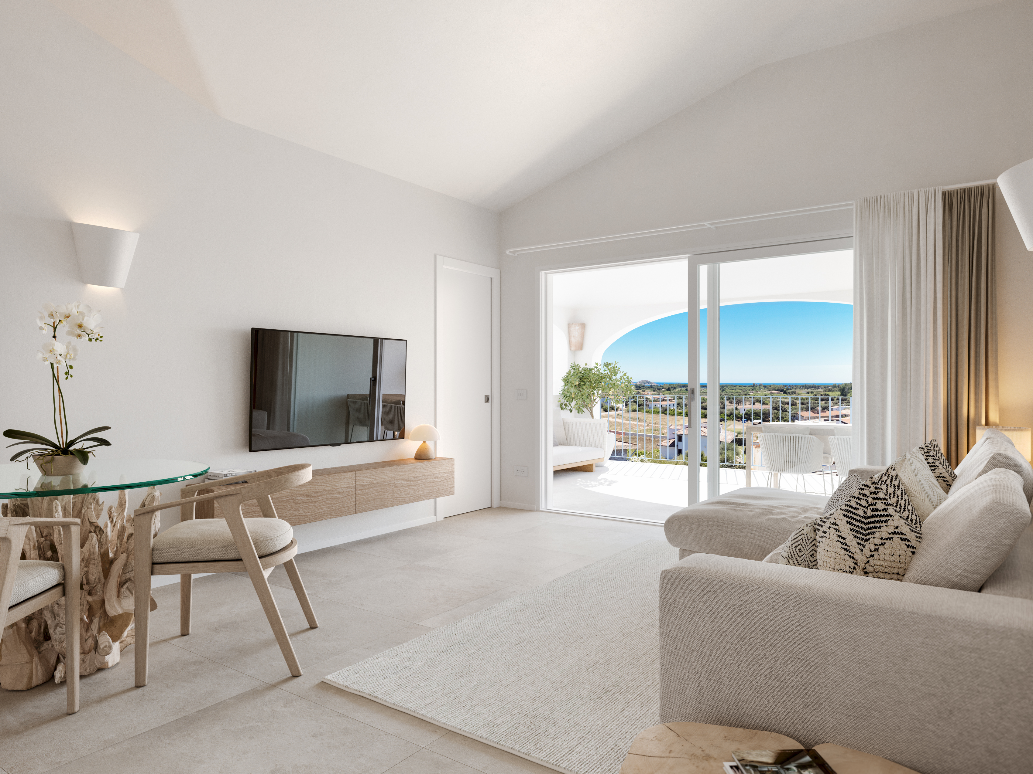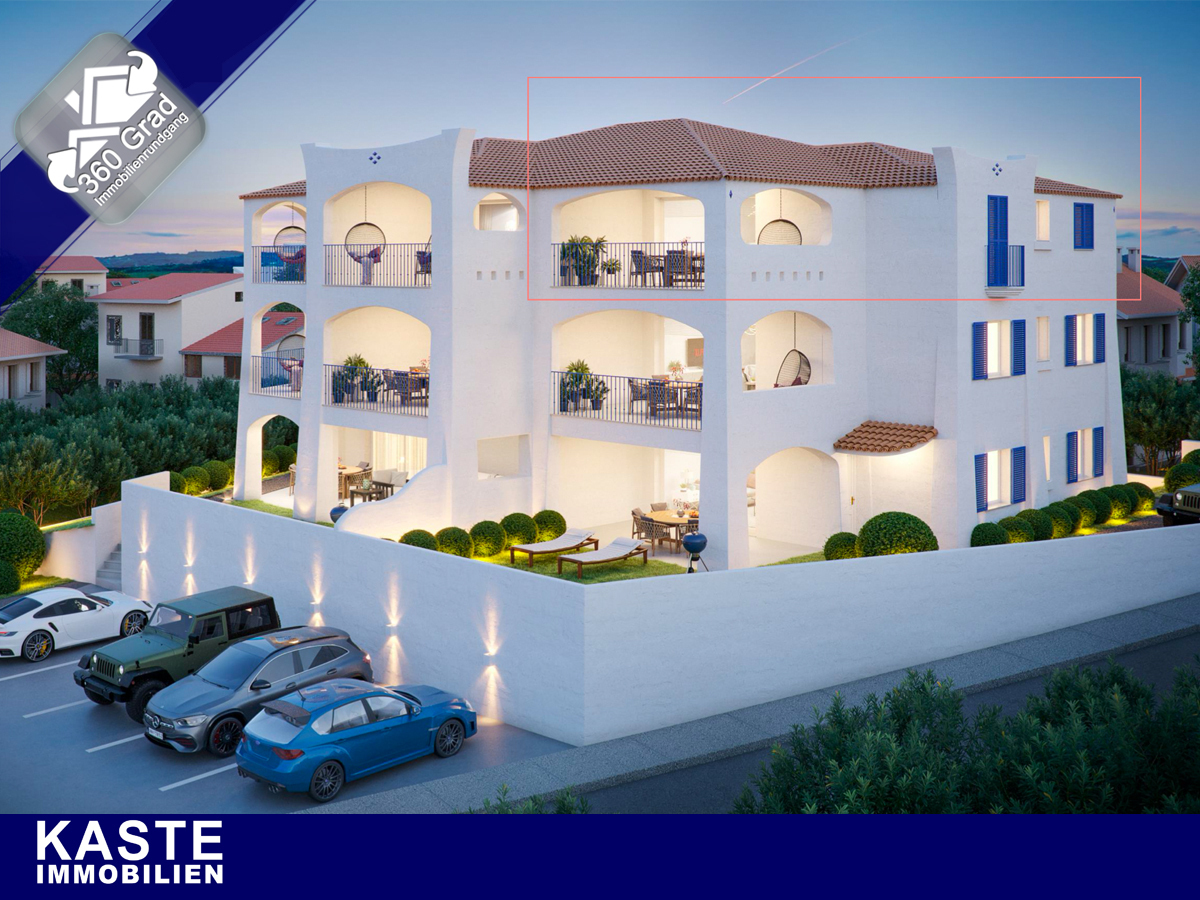 Dieses exklusive Neubau-Apartment mit Sonnenterrassen und Meerblick im Erstbezug bietet Ihnen hochwertigen Ausstattungsdetails, sowie eine stilvolle Wohnatmosphäre. Funktionalität trifft hier auf moderne Architektur im mediterran-sardischen Stil. Die großen Glasschiebeelemente mit einer Öffnung von ca. 4,20 m und des raffinierten Designs lassen die Innen- und Außenbereich fließend ineinander übergehen. Das Resultat ist ein unvergleichlich lichtdurchfluteter Wohnbereich mit einer ca. 17,10 qm großen Terrasse.