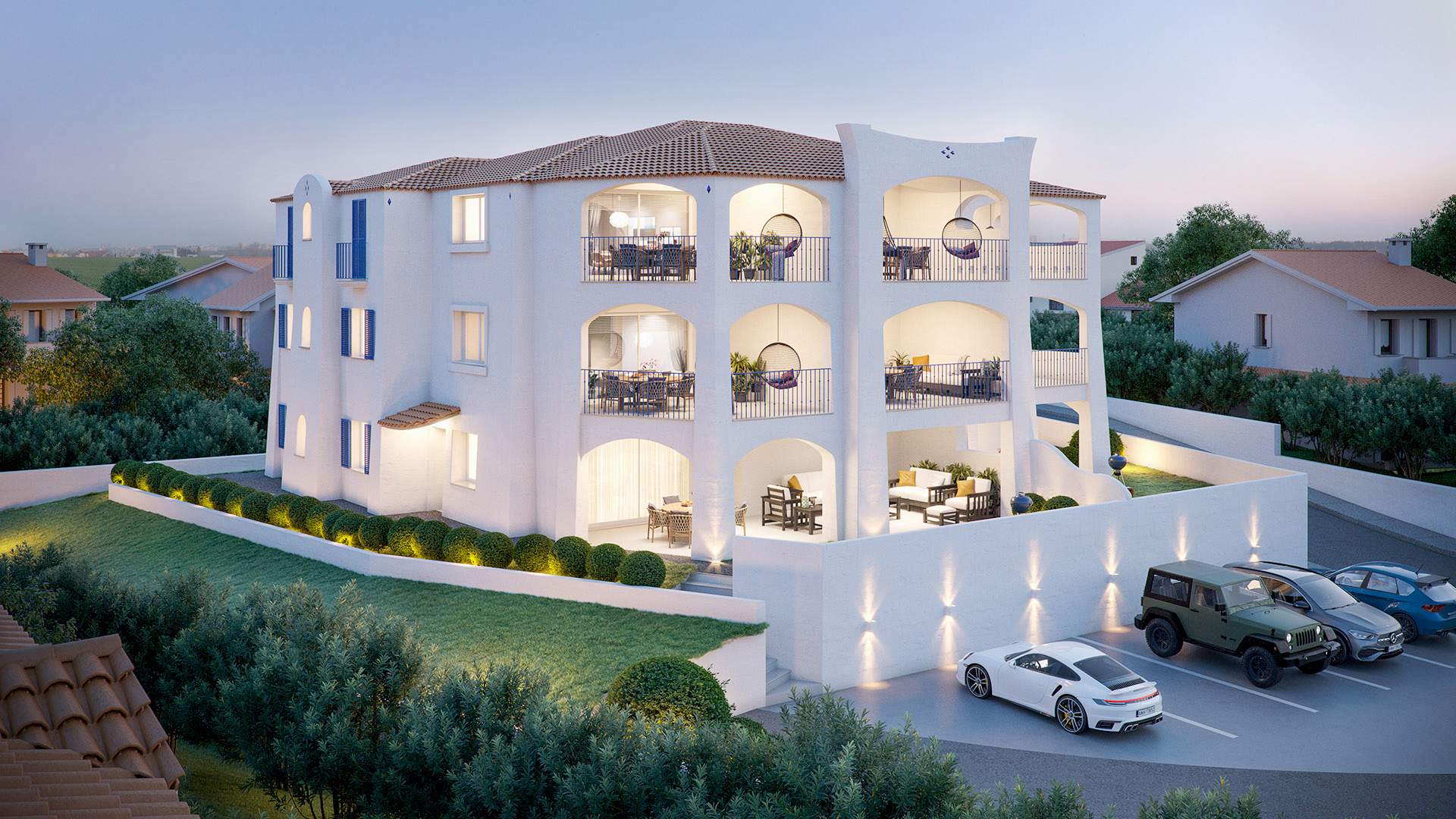 Dieses exklusive Penthouse-Apartment, erstmalig bezugsfertig, befindet sich auf Sardinien und vereint deutschen Baustandard mit mediterranem Flair, wobei besonders hochwertige Materialien und eine sorgfältige Lärm- und Wärmedämmung verwendet wurden. Die Immobilie besticht durch ihre markante architektonische Gestaltung im sardisch-mediterranen Stil, wobei gleichzeitig eine moderne Funktionalität und Ästhetik der verwendeten Materialien gewährleistet sind.