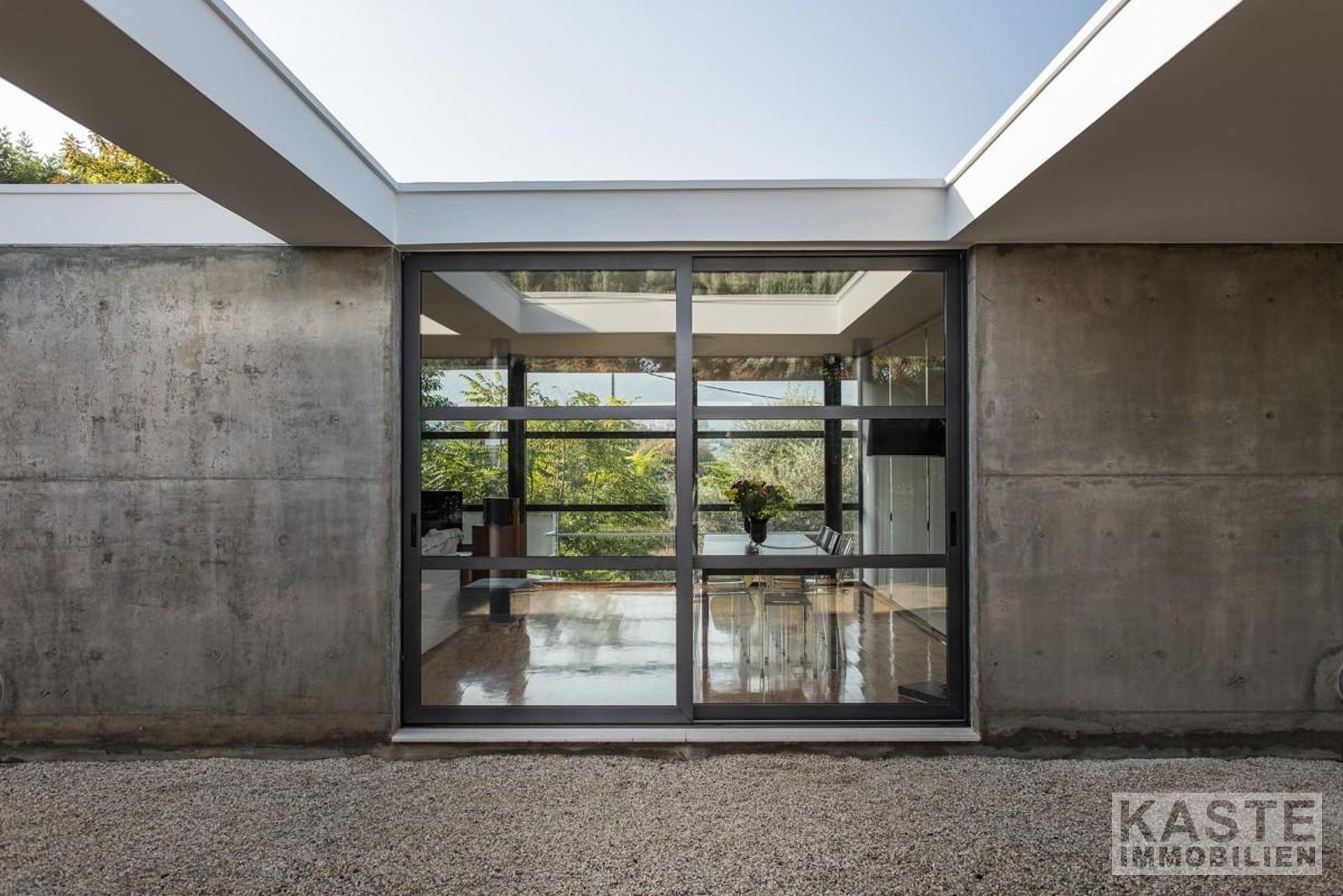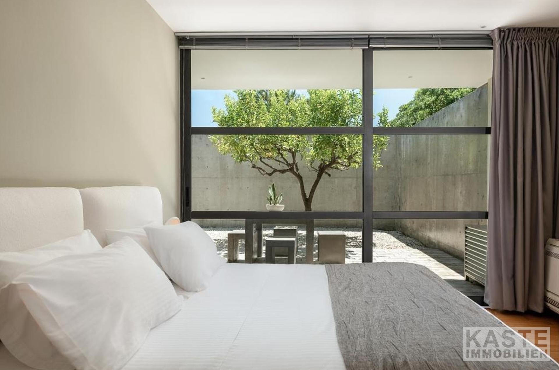 Die Villa erstreckt sich über zwei großzügige Etagen und wird geprägt von einer konsequent minimalistischen Ästhetik, die japanische Eleganz mit den klaren Linien des Bauhausstils verbindet. Die gesamte Konstruktion ist aus Beton gefertigt, was selten und architektonisch besonders ist: keine Ziegel, sondern ein architektonisches Statement für Modernität und Beständigkeit. Diese einzigartige Bauweise fand sogar internationale Anerkennung und führte 2009 zur Nominierung für die renommierten Mies van der Rohe Awards.