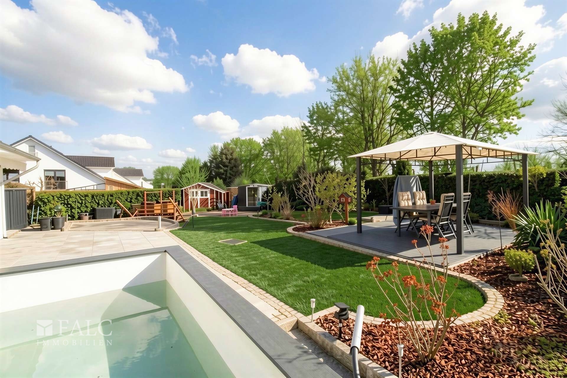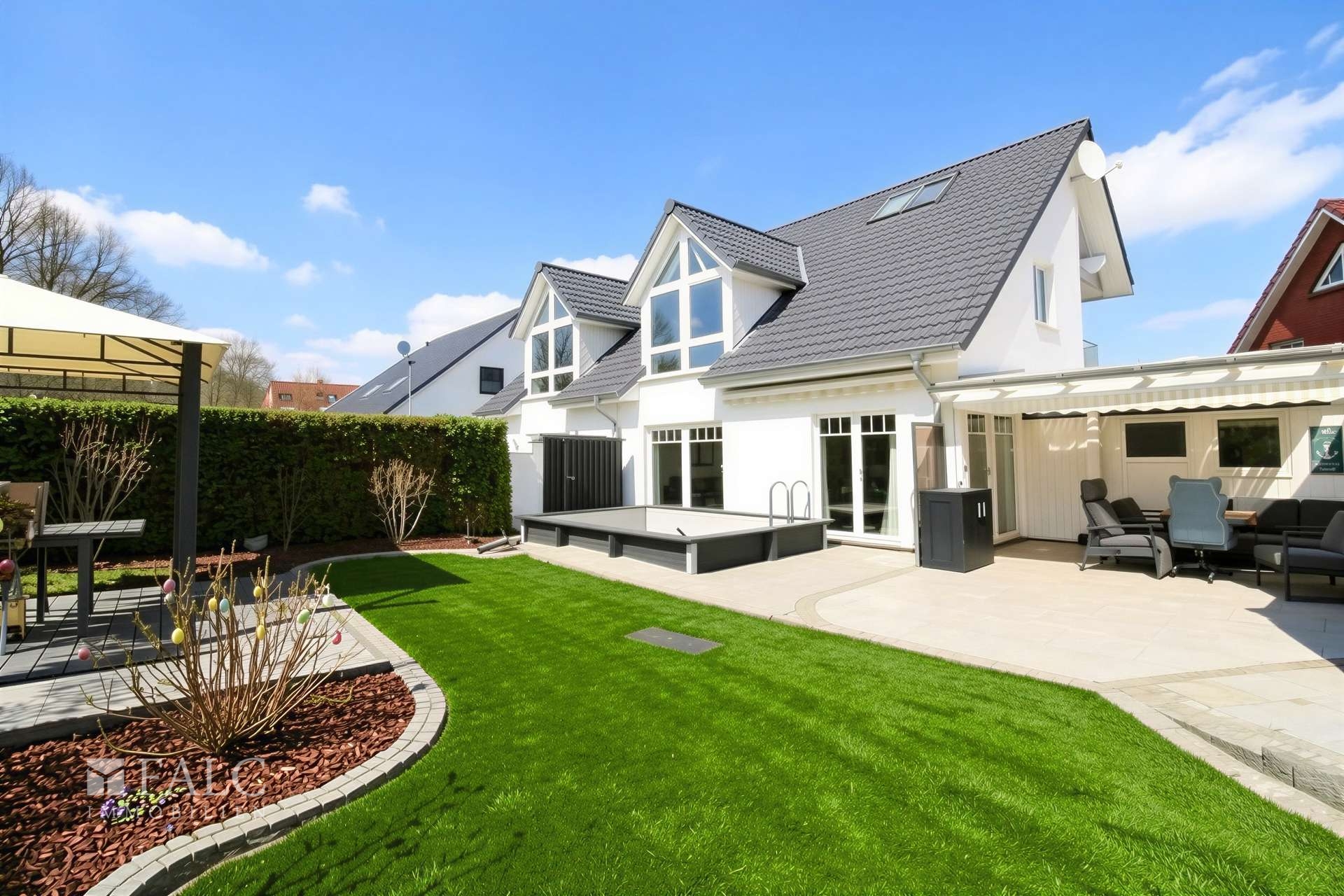 TitelAußenansicht - (KI generiert)FrontansichtGartenPool & GartenKücheWohn- und EsszimmerWohnzimmerBadezimmer IBadezimmer IIEingangsbereichSchlafzimmerKinderzimmer IKinderzimmer IIWohnraum im DachgeschossGarageGäste-WCErdgeschoss1. ObergeschossTitel