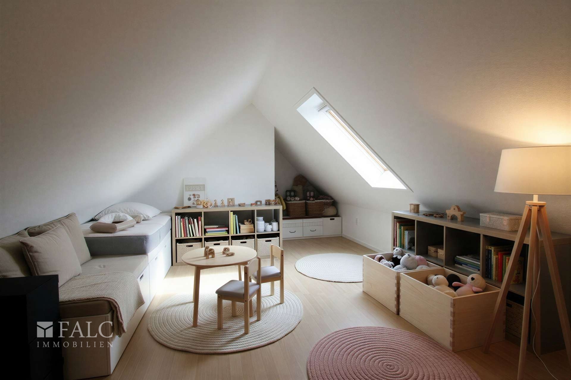 Das 2. Obergeschoss: Das Studio-Highlight Ein besonderes Merkmal dieses Architektenhauses ist das voll ausgebaute zweite Obergeschoss. Dieser große, offene Wohnraum ordnet sich als eigenständiger Rückzugsbereich ein. Ob als exklusives Master-Studio, großzügiges Home-Office oder Atelier – die Raumhöhe und das Lichtspiel machen dieses Geschoss zu einem ganz besonderen Ort.