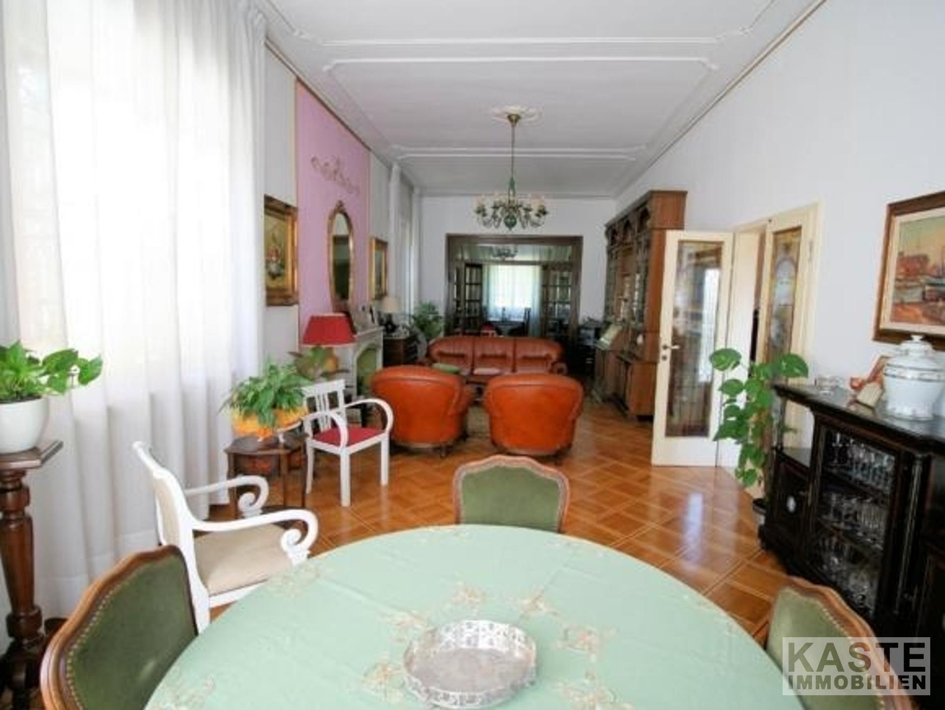 Innenausstattung - Ca. 425 m² Wohnfläche auf mehreren Ebenen - 6 Zimmer, davon 5 geräumige Schlafzimmer - 3 Badezimmer - Bedeutende Jugendstil-Architektur mit dekorativen Marmorsäulen - Doppelte Wohnräume mit Kamin - Esszimmer und offene Kochnische mit Essbereich und Kamin - Arbeitszimmer - Parkettböden in den Schlafzimmern - Dachgeschoss mit nicht vollständig ausgebauten Räumen
