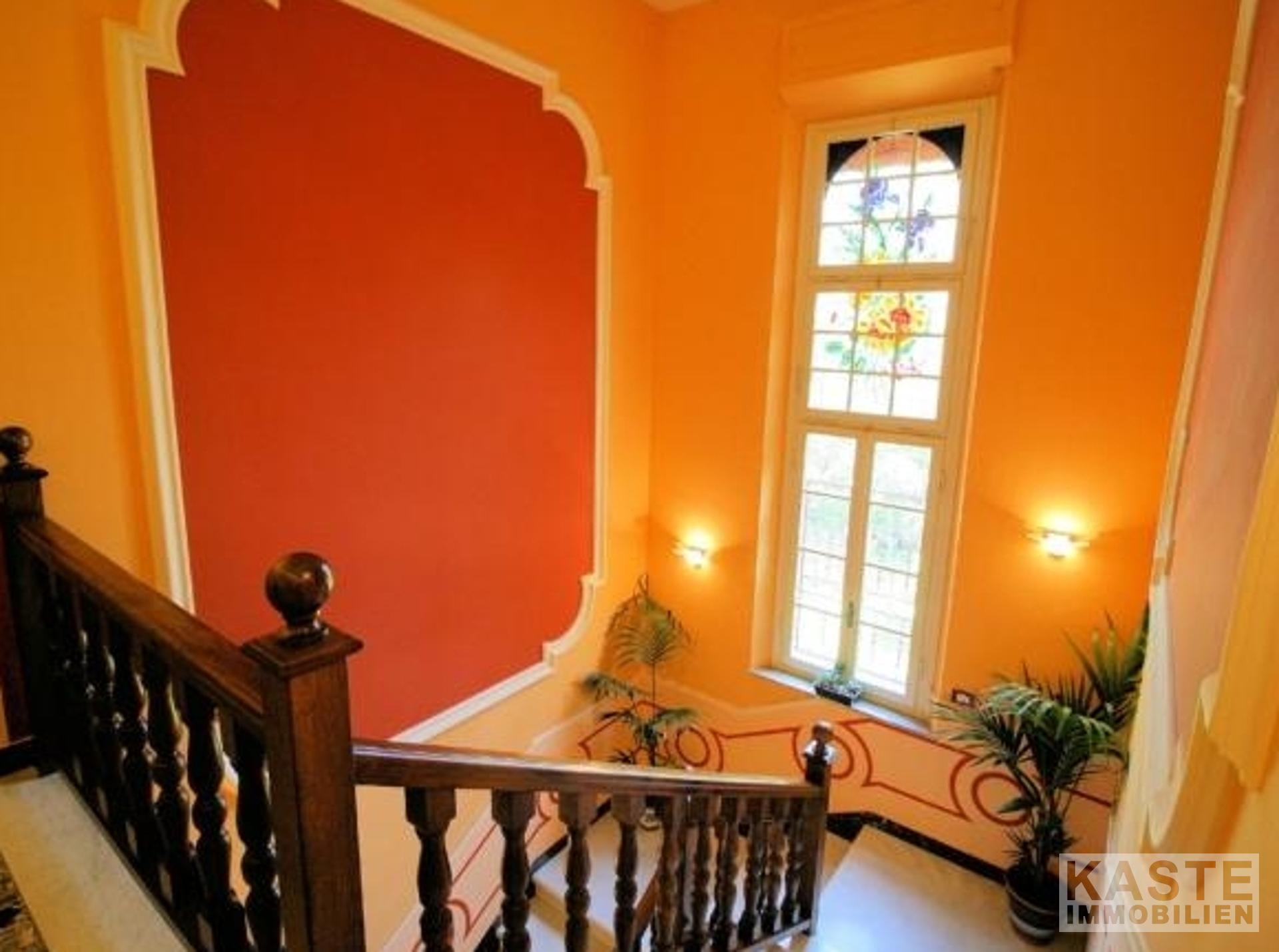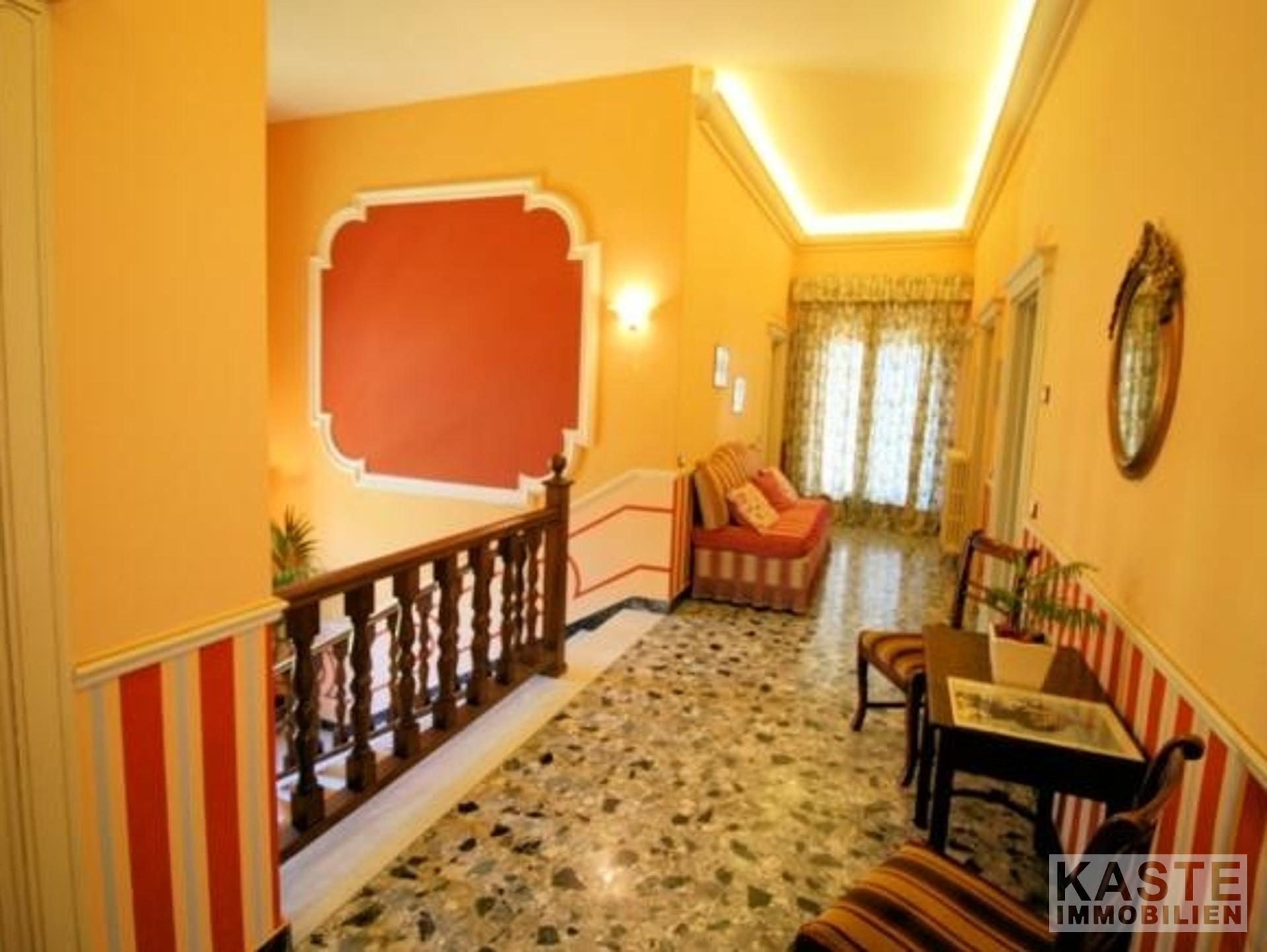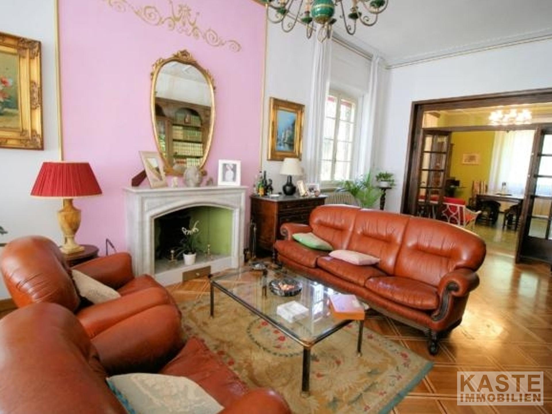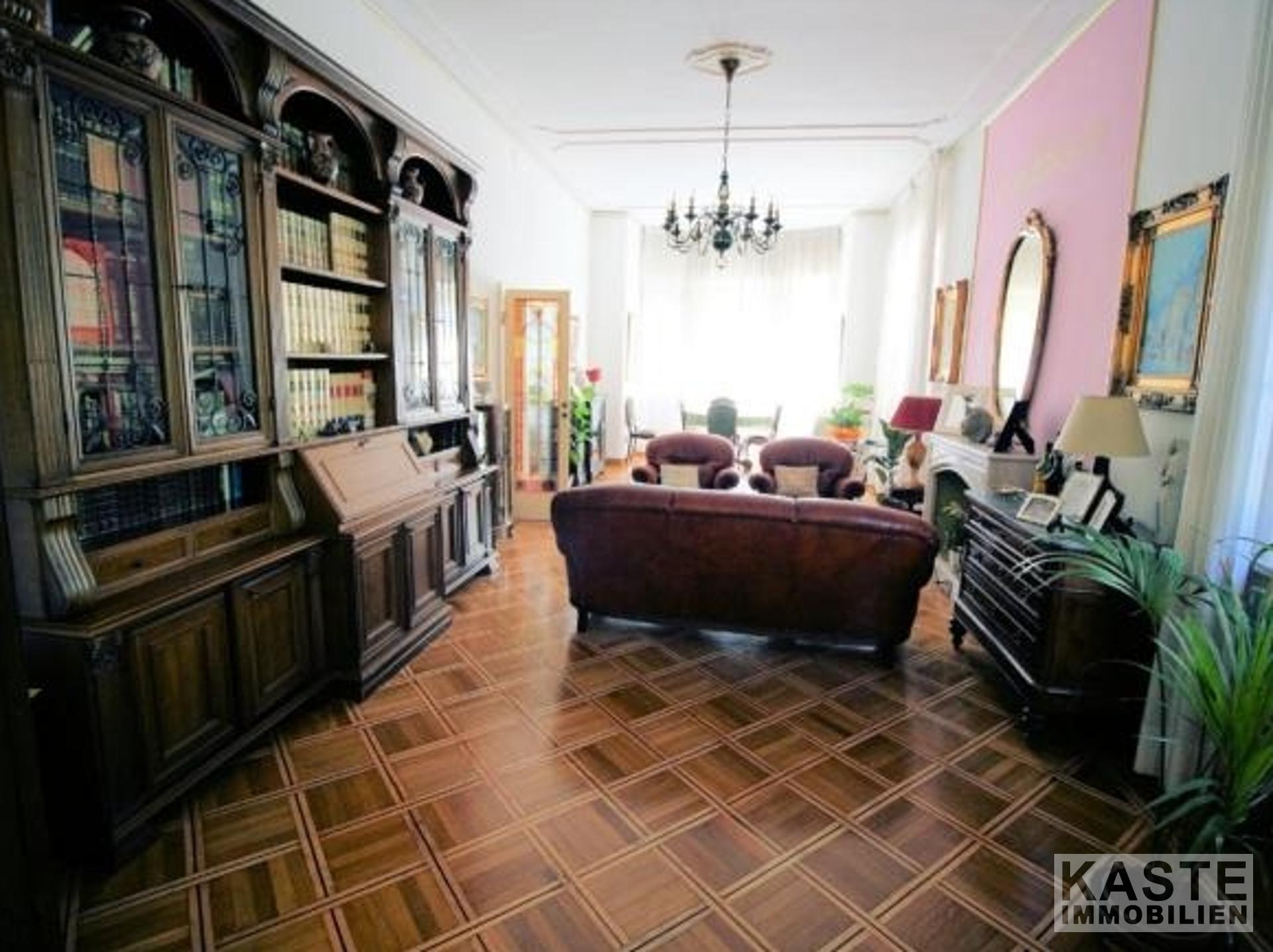 Innenausstattung - Ca. 425 m² Wohnfläche auf mehreren Ebenen - 6 Zimmer, davon 5 geräumige Schlafzimmer - 3 Badezimmer - Bedeutende Jugendstil-Architektur mit dekorativen Marmorsäulen - Doppelte Wohnräume mit Kamin - Esszimmer und offene Kochnische mit Essbereich und Kamin - Arbeitszimmer - Parkettböden in den Schlafzimmern - Dachgeschoss mit nicht vollständig ausgebauten Räumen