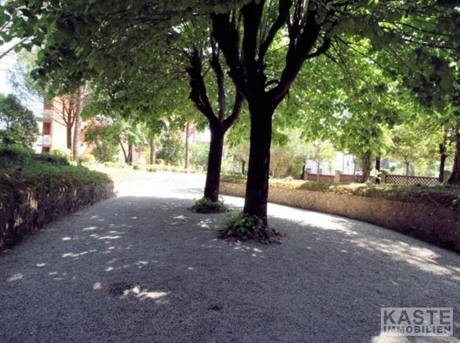 Außenbereich & Grundstück - Großzügiger Garten mit ca. 2.000 m² Grundstücksfläche - Gepflegte Parkanlage rund um das Anwesen - Terrasse im Obergeschoss mit Blick auf den Garten - Garage im Untergeschoss