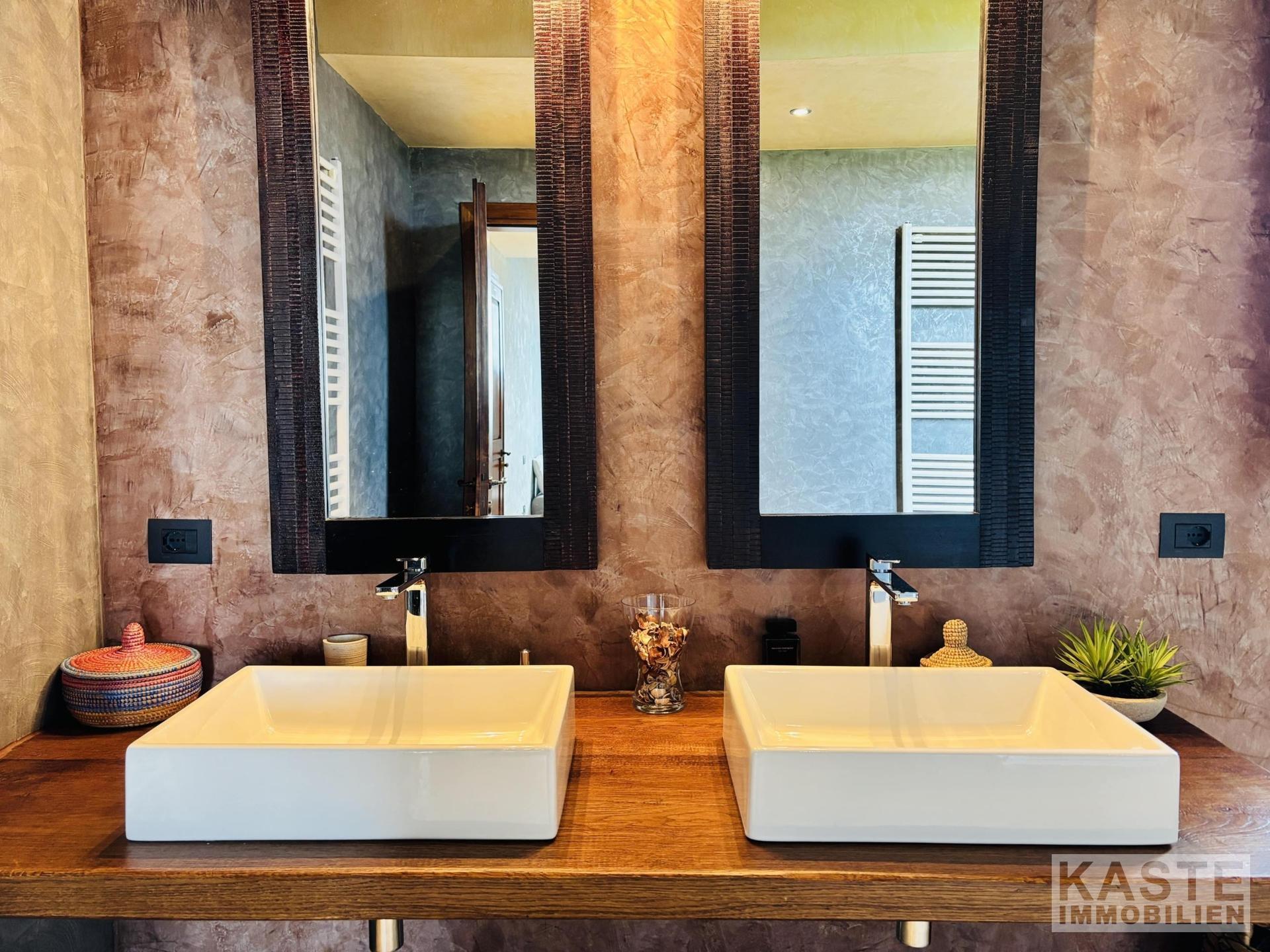 Obergeschoss: - Zwei geräumige Doppelschlafzimmer, jeweils mit eigenem Bad (eines mit Badewanne, das andere mit Dusche) - Großzügiges Hauptschlafzimmer mit luxuriösem Ensuite-Bad inklusive Dusche und einem eleganten, begehbaren Kleiderschrank