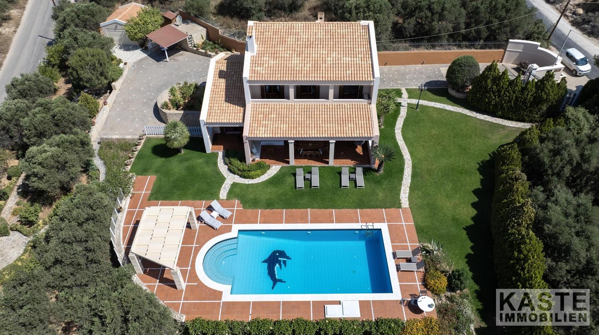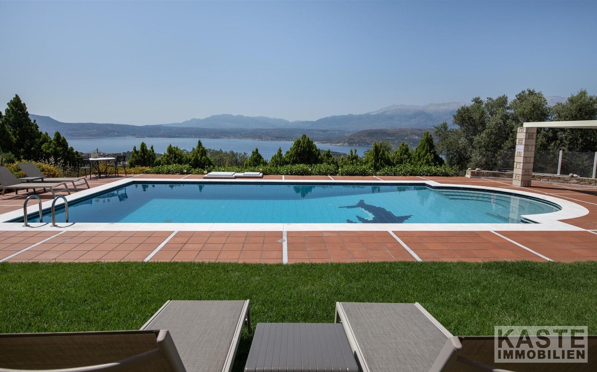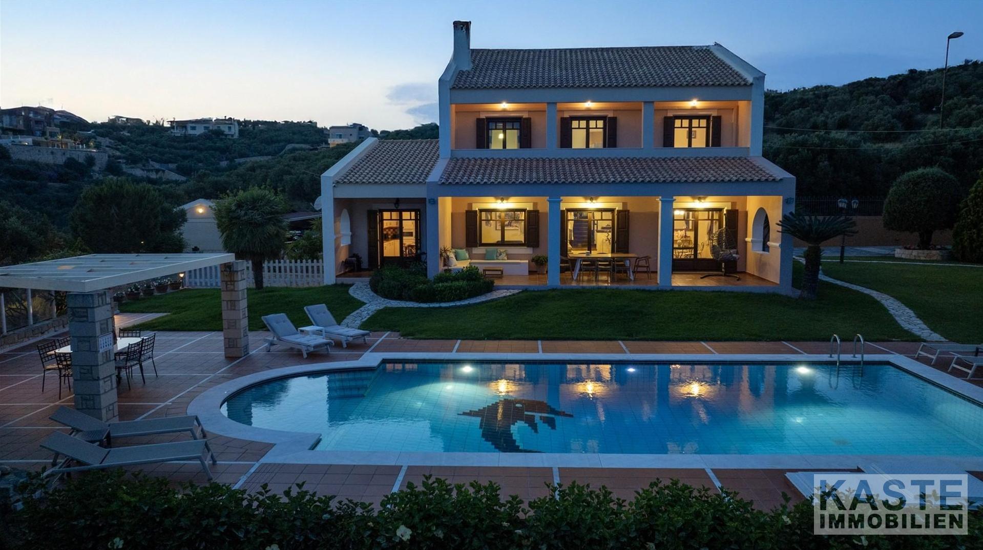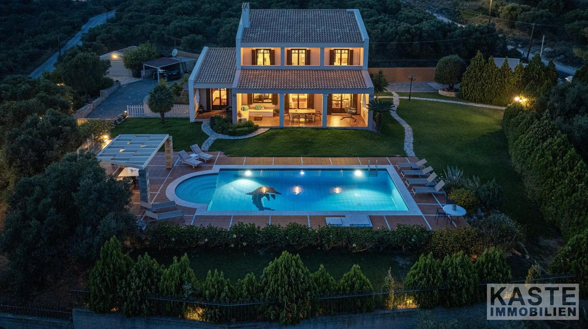 Diese beeindruckende Luxusvilla in Sternes, einem der begehrtesten Dörfer auf der malerischen Halbinsel Akrotiri, bietet Ihnen auf Kreta ein unvergleichliches Wohngefühl verbunden mit spektakulären Panoramablicken auf die Bucht von Souda und die majestätischen Weißen Berge. Die großzügige Immobilie mit einer Wohnfläche von 343 m² erstreckt sich über eine weitläufige Konzeption mit 5 eleganten Schlafzimmern und 3 modernen Badezimmern, ideal für Familien und Liebhaber exklusiven Komforts.