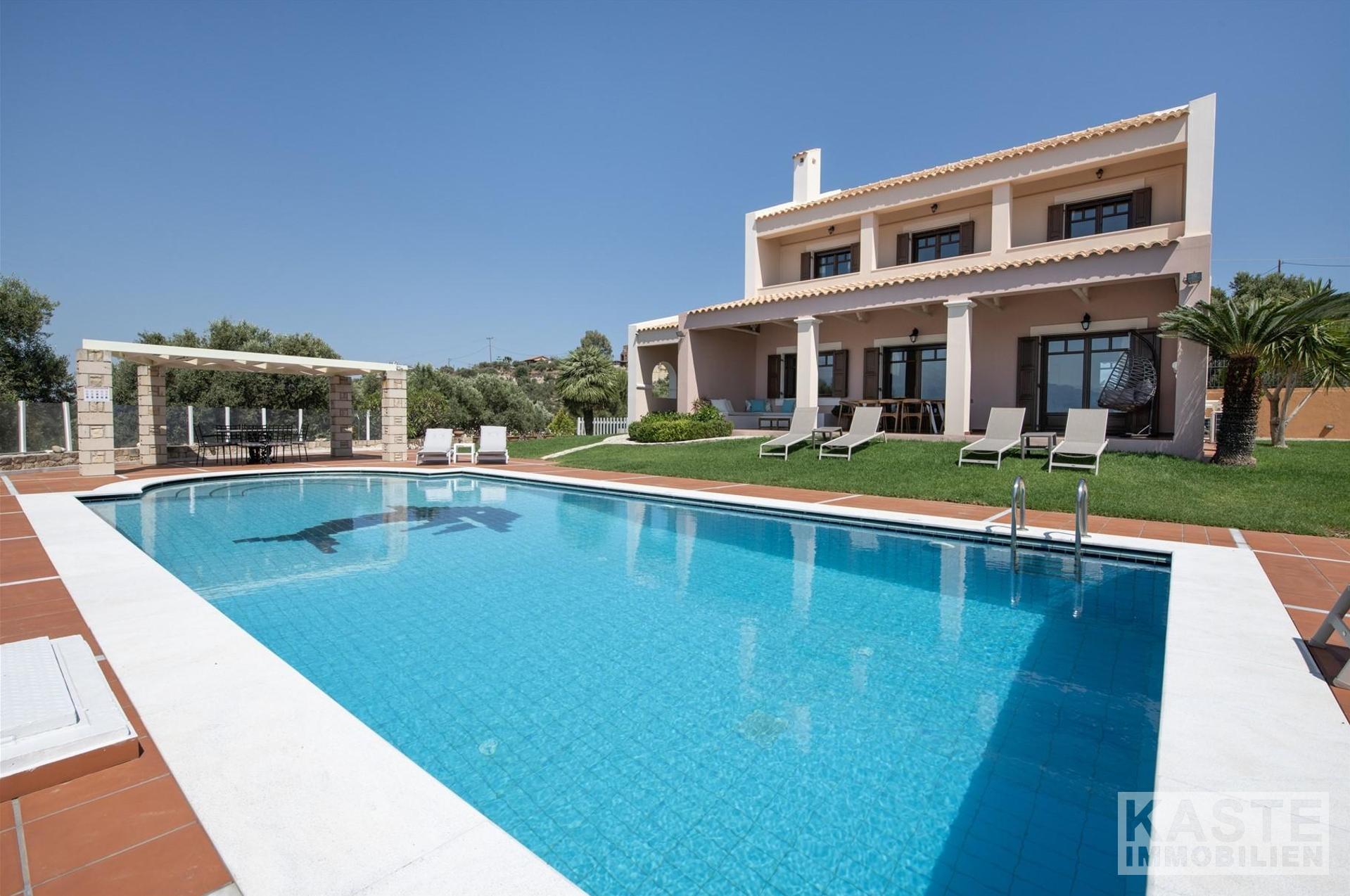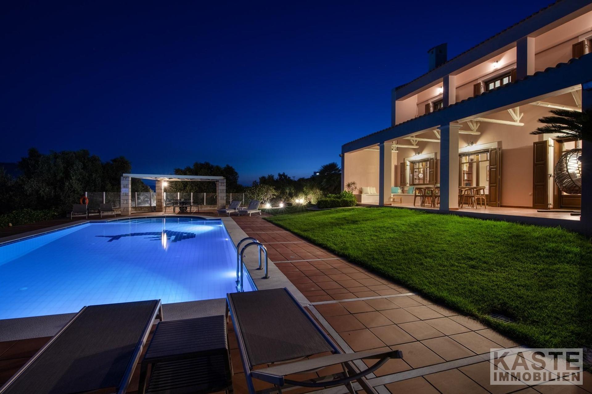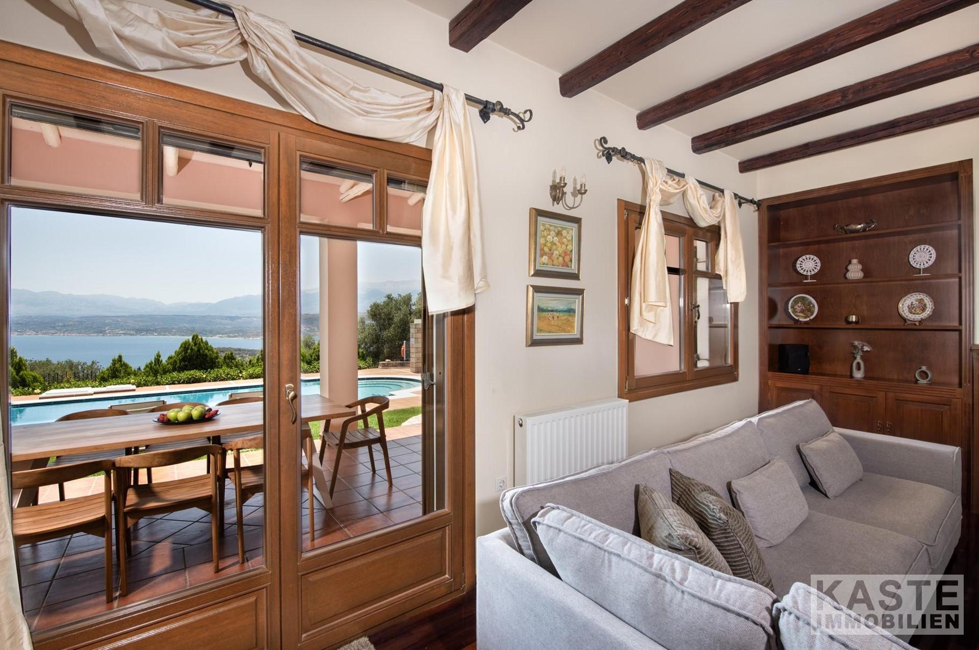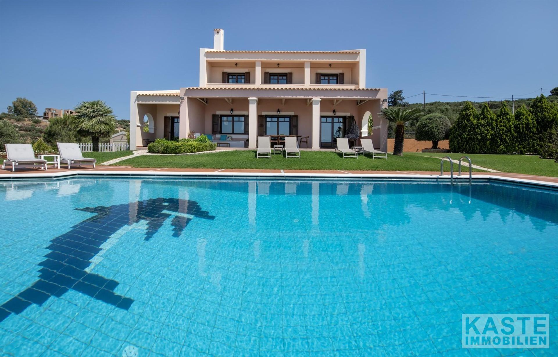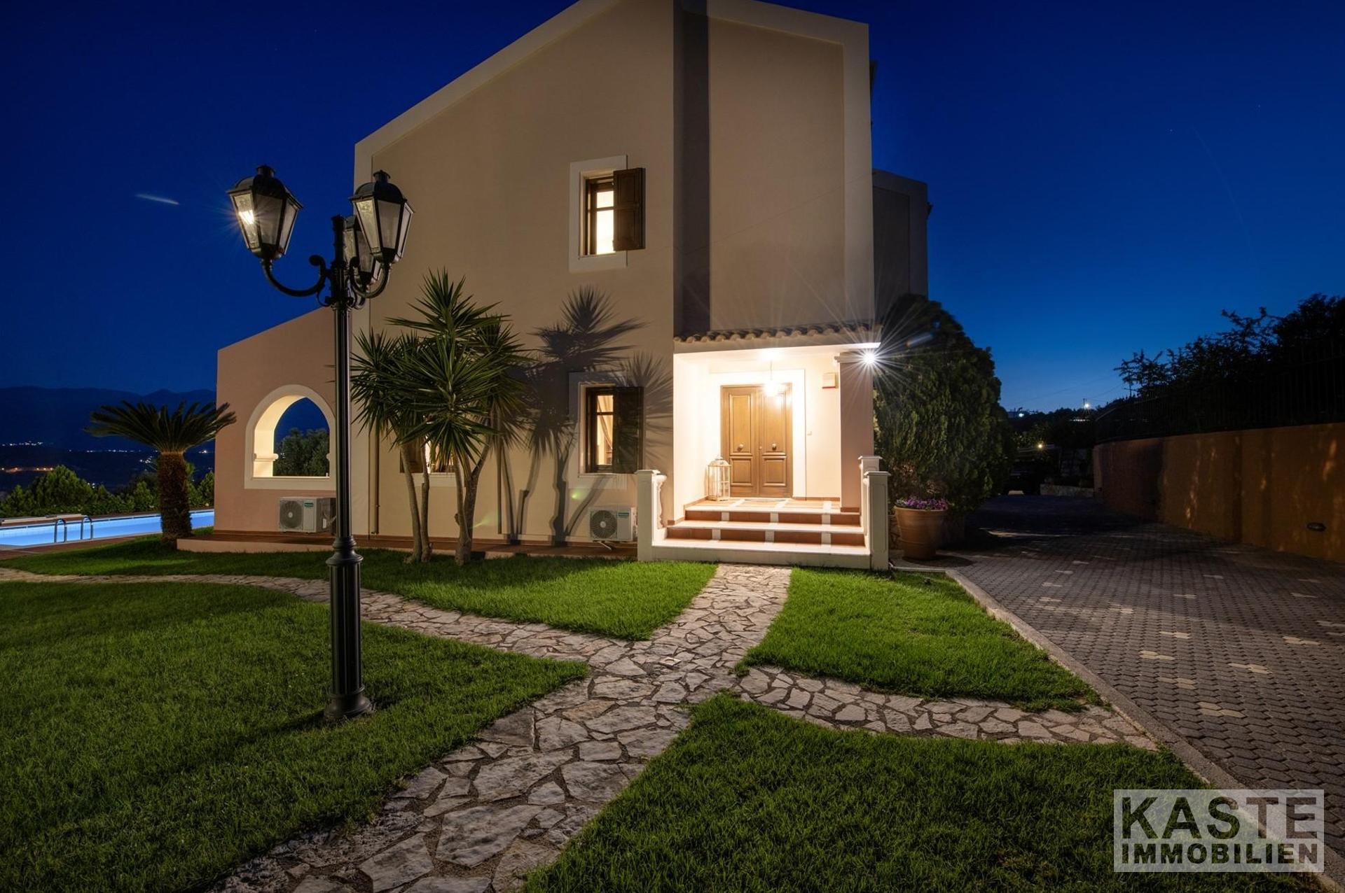 Diese beeindruckende Luxusvilla in Sternes, einem der begehrtesten Dörfer auf der malerischen Halbinsel Akrotiri, bietet Ihnen auf Kreta ein unvergleichliches Wohngefühl verbunden mit spektakulären Panoramablicken auf die Bucht von Souda und die majestätischen Weißen Berge. Die großzügige Immobilie mit einer Wohnfläche von 343 m² erstreckt sich über eine weitläufige Konzeption mit 5 eleganten Schlafzimmern und 3 modernen Badezimmern, ideal für Familien und Liebhaber exklusiven Komforts.