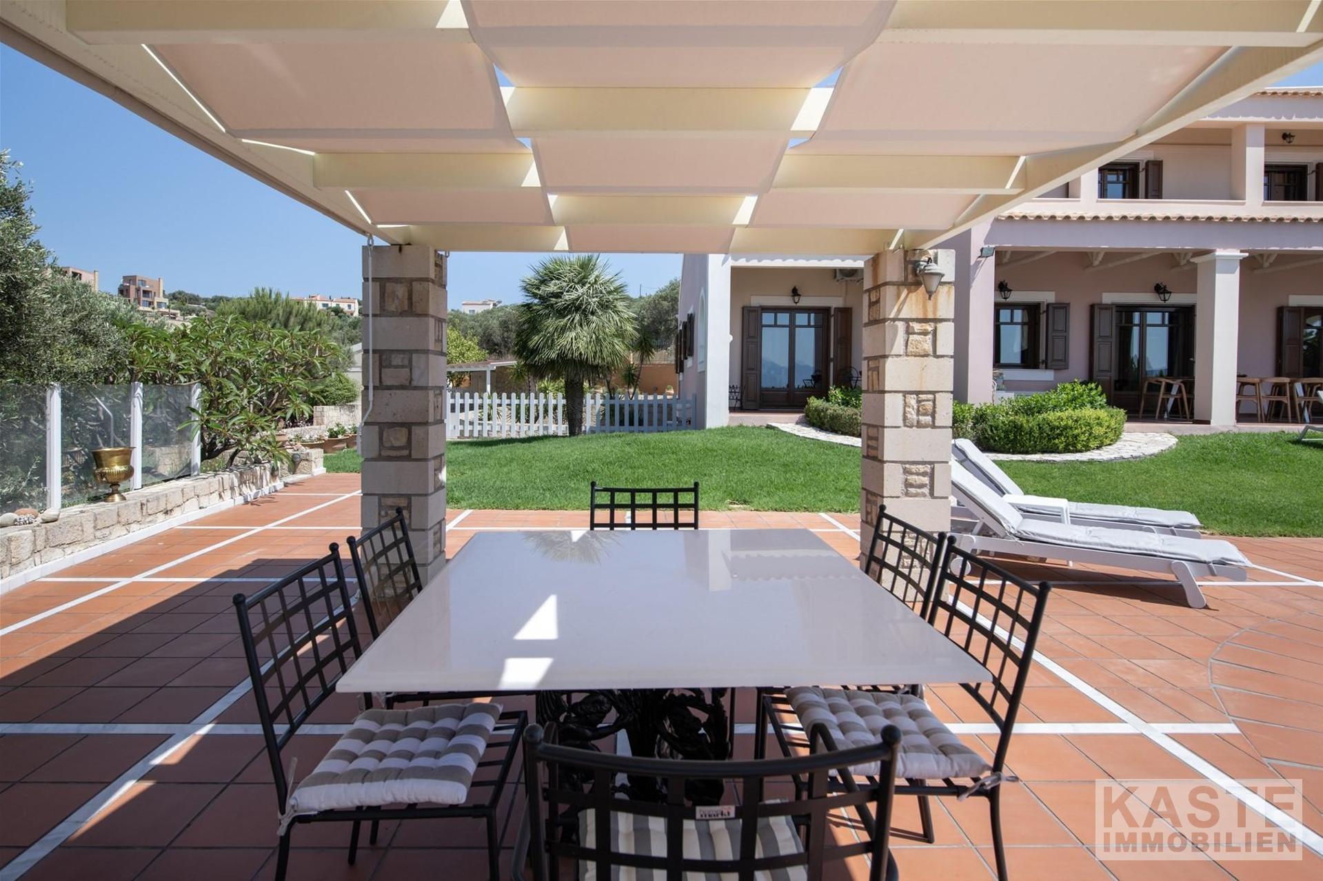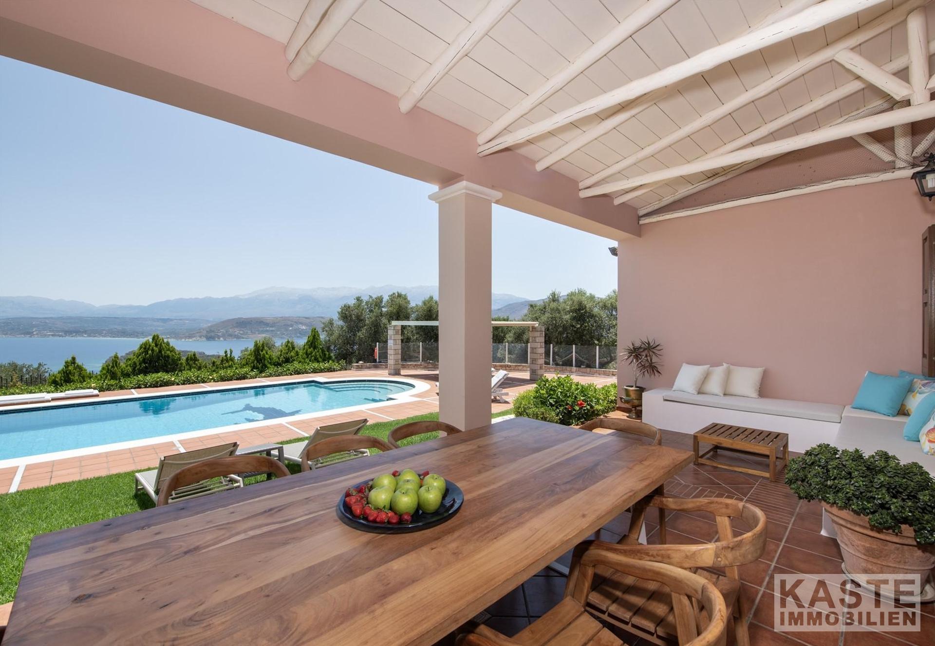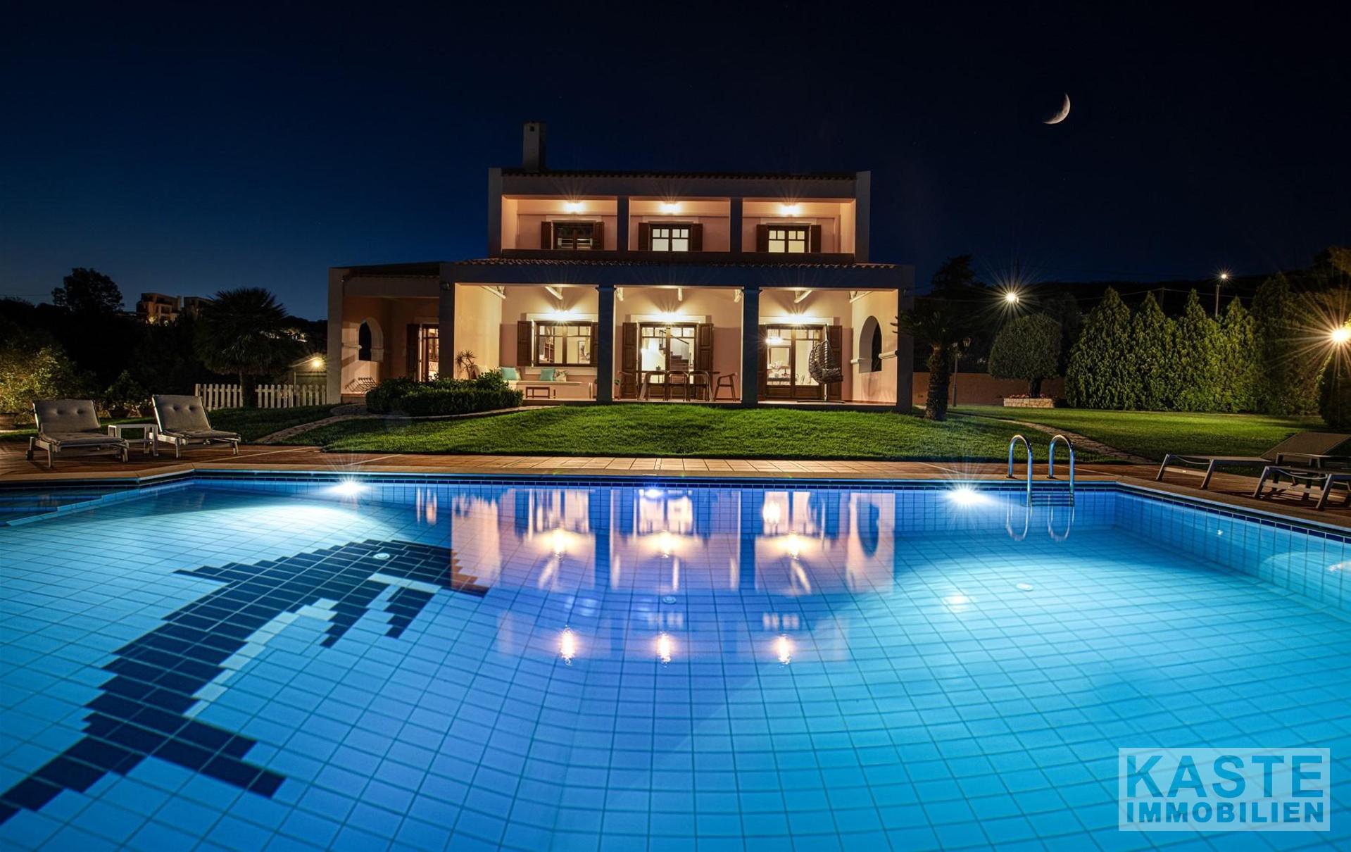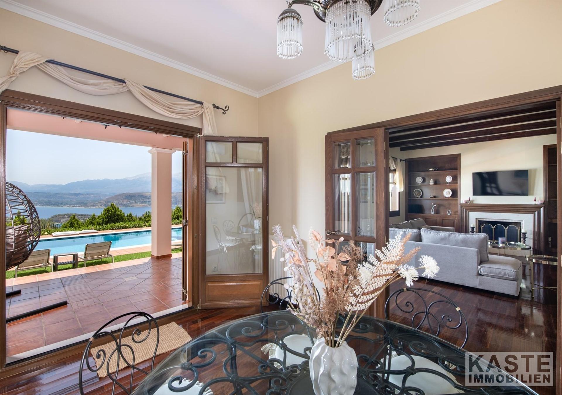 Diese beeindruckende Luxusvilla in Sternes, einem der begehrtesten Dörfer auf der malerischen Halbinsel Akrotiri, bietet Ihnen auf Kreta ein unvergleichliches Wohngefühl verbunden mit spektakulären Panoramablicken auf die Bucht von Souda und die majestätischen Weißen Berge. Die großzügige Immobilie mit einer Wohnfläche von 343 m² erstreckt sich über eine weitläufige Konzeption mit 5 eleganten Schlafzimmern und 3 modernen Badezimmern, ideal für Familien und Liebhaber exklusiven Komforts.