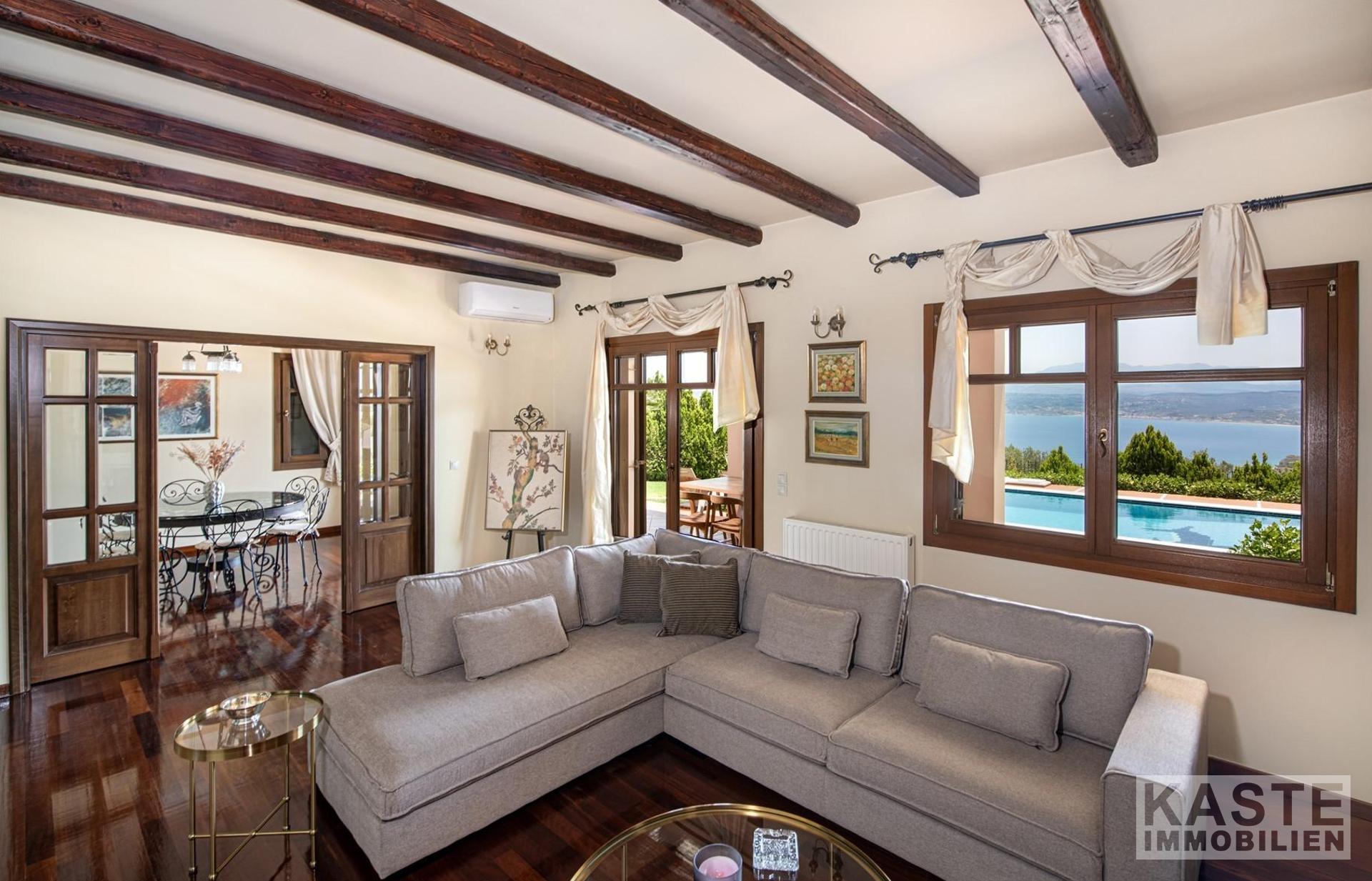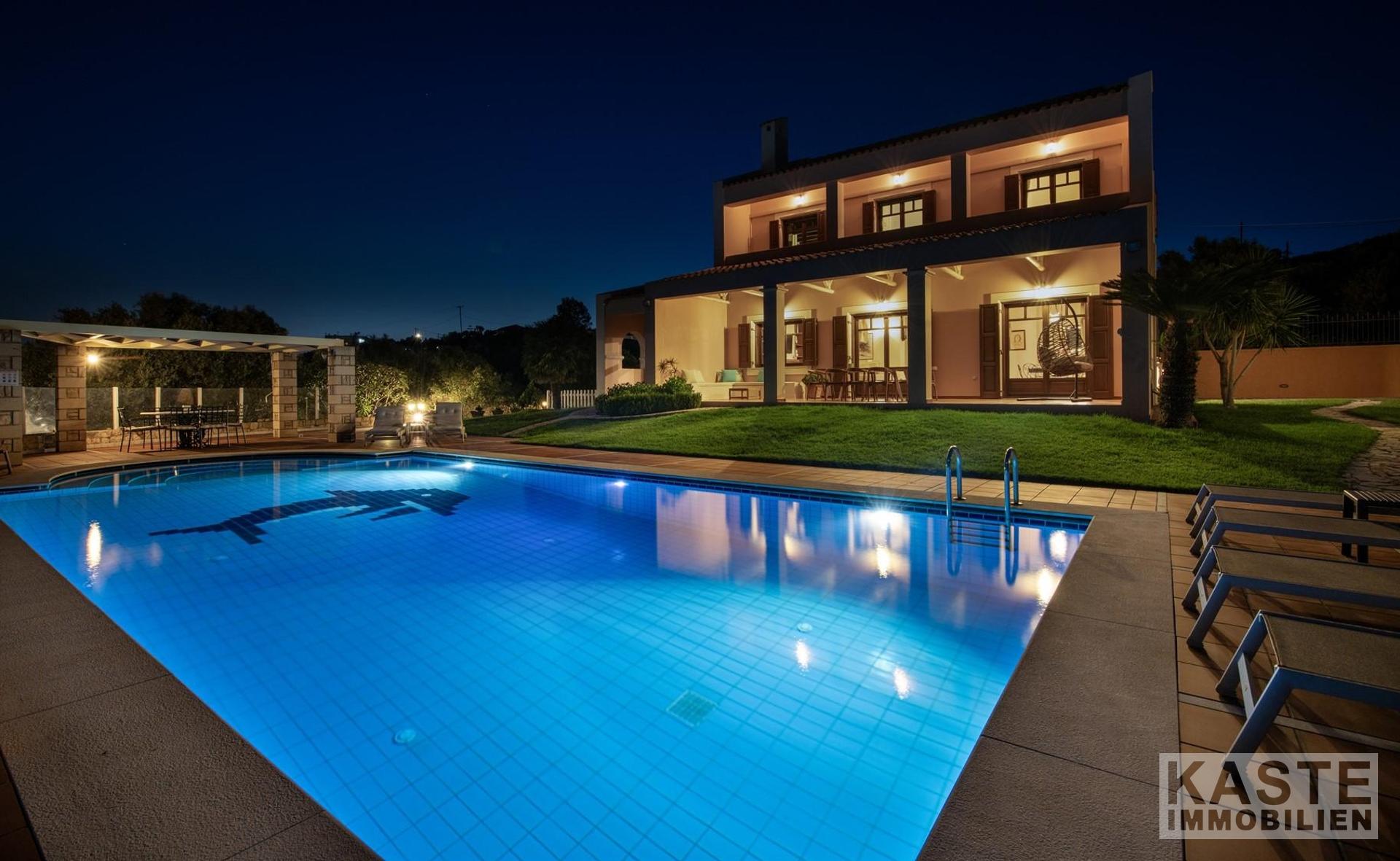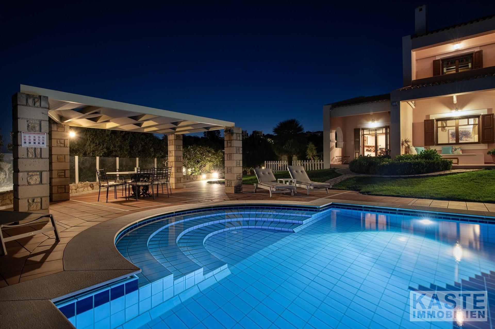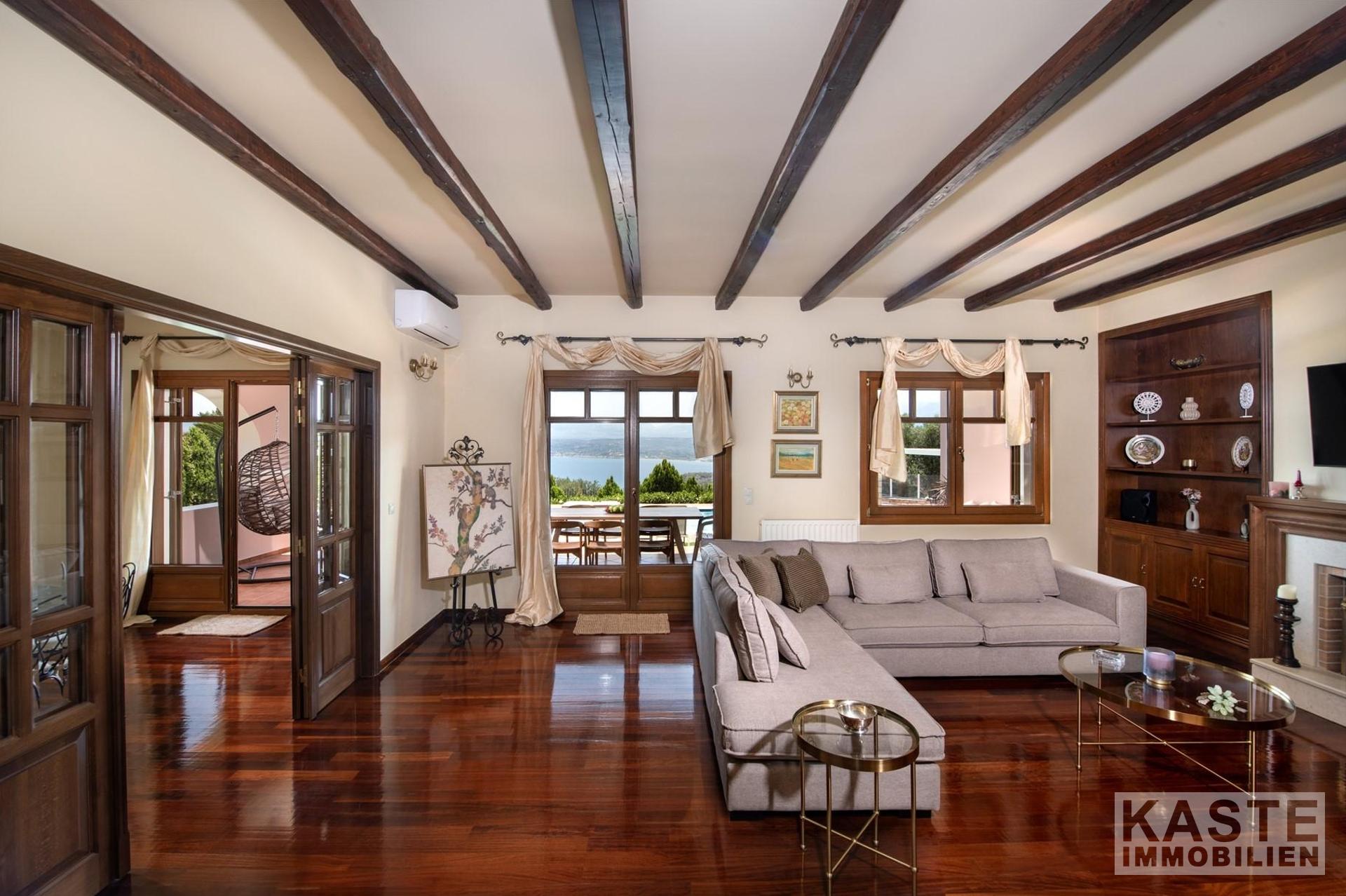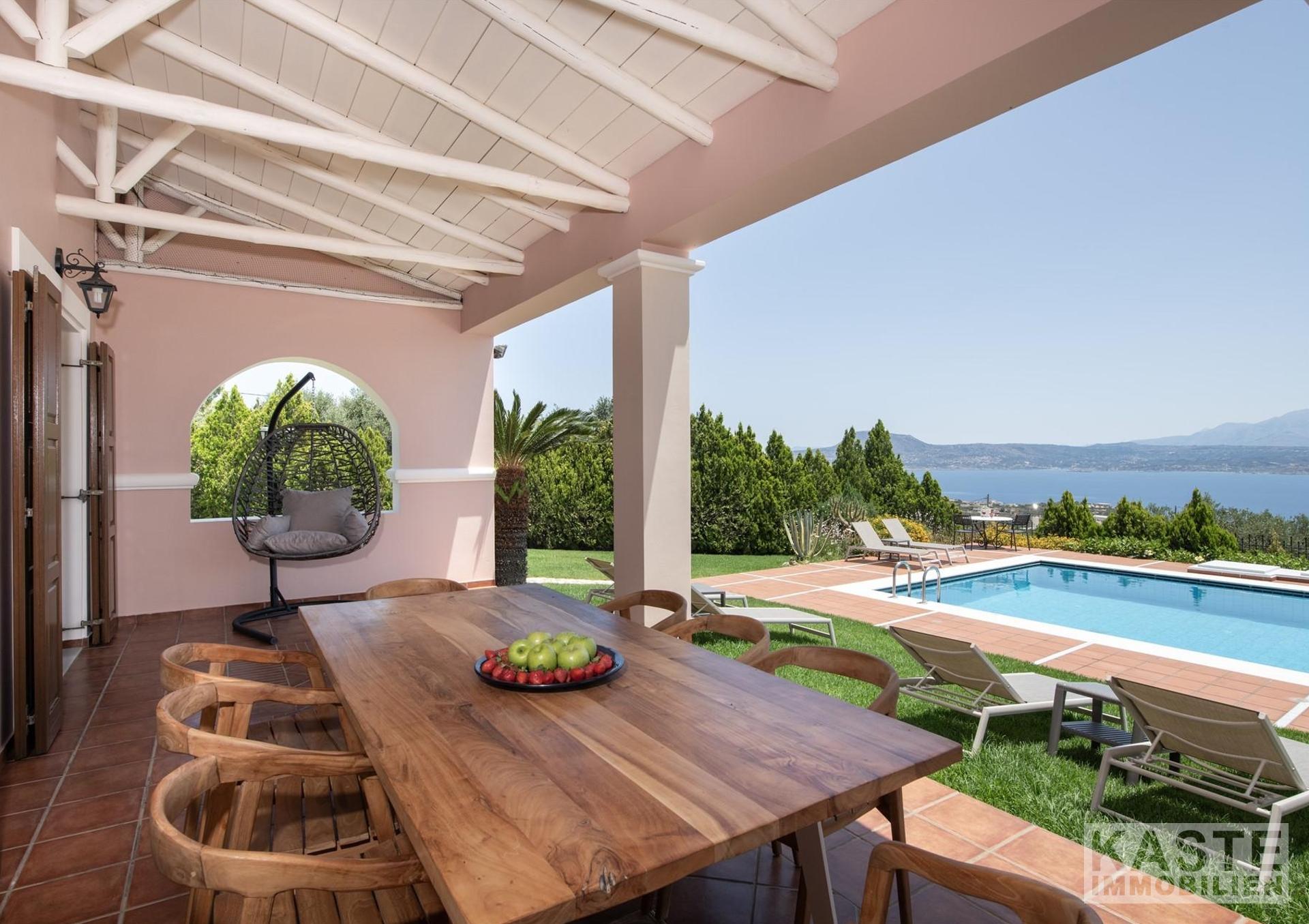 Diese beeindruckende Luxusvilla in Sternes, einem der begehrtesten Dörfer auf der malerischen Halbinsel Akrotiri, bietet Ihnen auf Kreta ein unvergleichliches Wohngefühl verbunden mit spektakulären Panoramablicken auf die Bucht von Souda und die majestätischen Weißen Berge. Die großzügige Immobilie mit einer Wohnfläche von 343 m² erstreckt sich über eine weitläufige Konzeption mit 5 eleganten Schlafzimmern und 3 modernen Badezimmern, ideal für Familien und Liebhaber exklusiven Komforts.