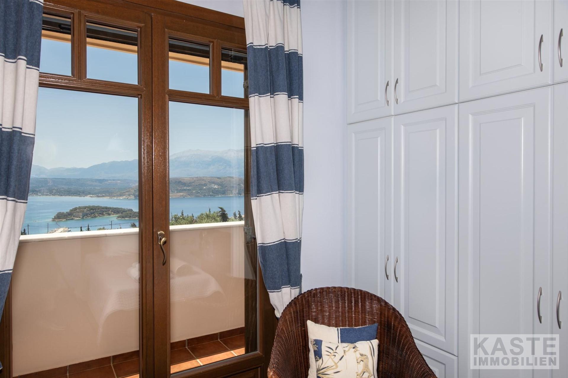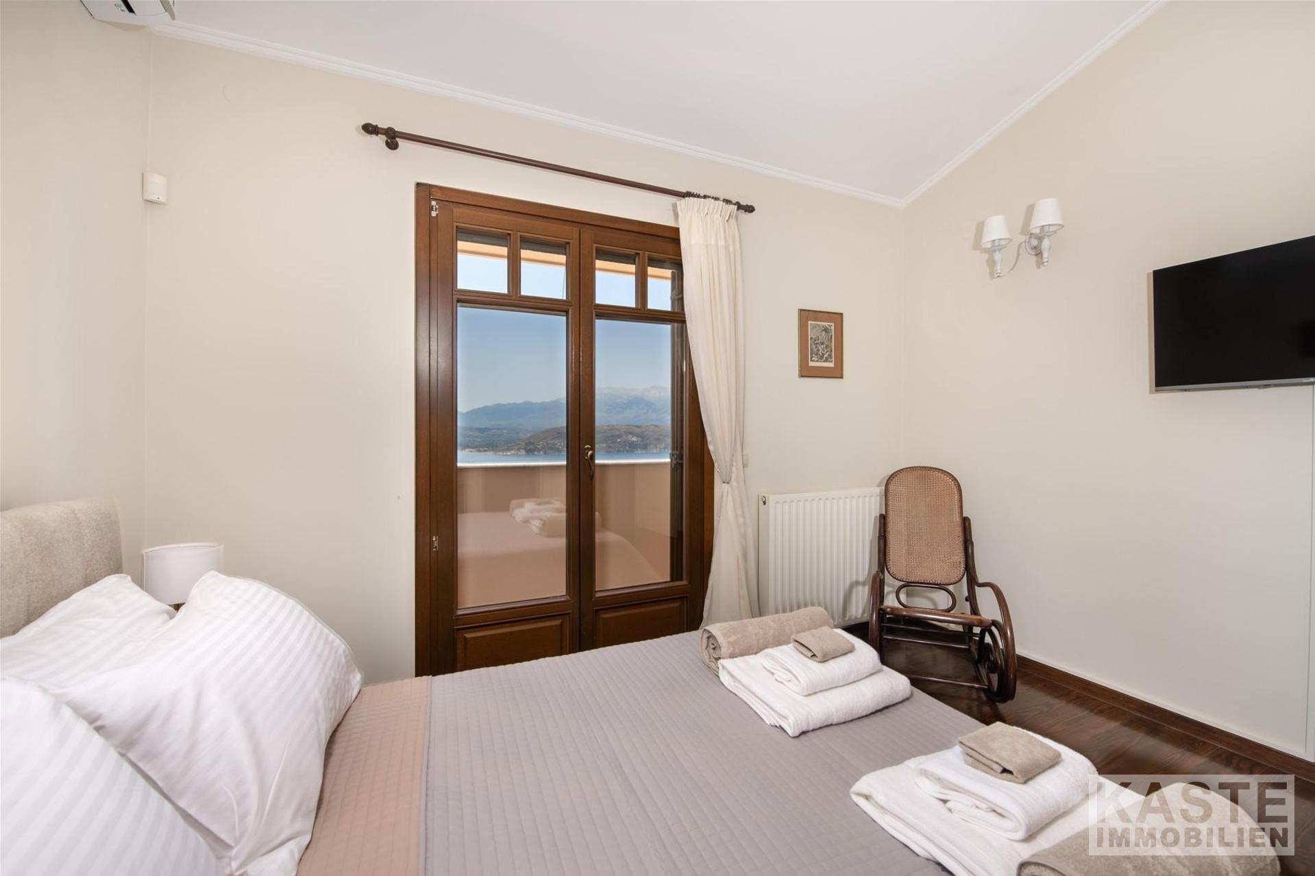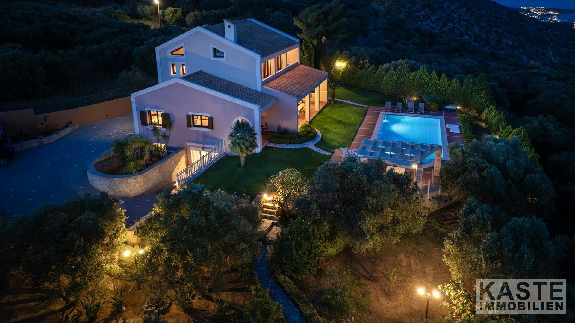 Mit seiner privilegierten Hanglage garantiert die Villa eine unverbaubare, freie Sicht auf das funkelnde Meer und idyllische Naturpanoramen. Die großzügige Terrasse und der Balkon laden zu entspannten Stunden im Freien ein. Die Immobilie ermöglicht zudem den Ausbau eines separaten Gästeapartments auf der unteren Ebene, was zusätzliche Flexibilität für Vermietung oder Großfamilienkonstellationen verspricht.