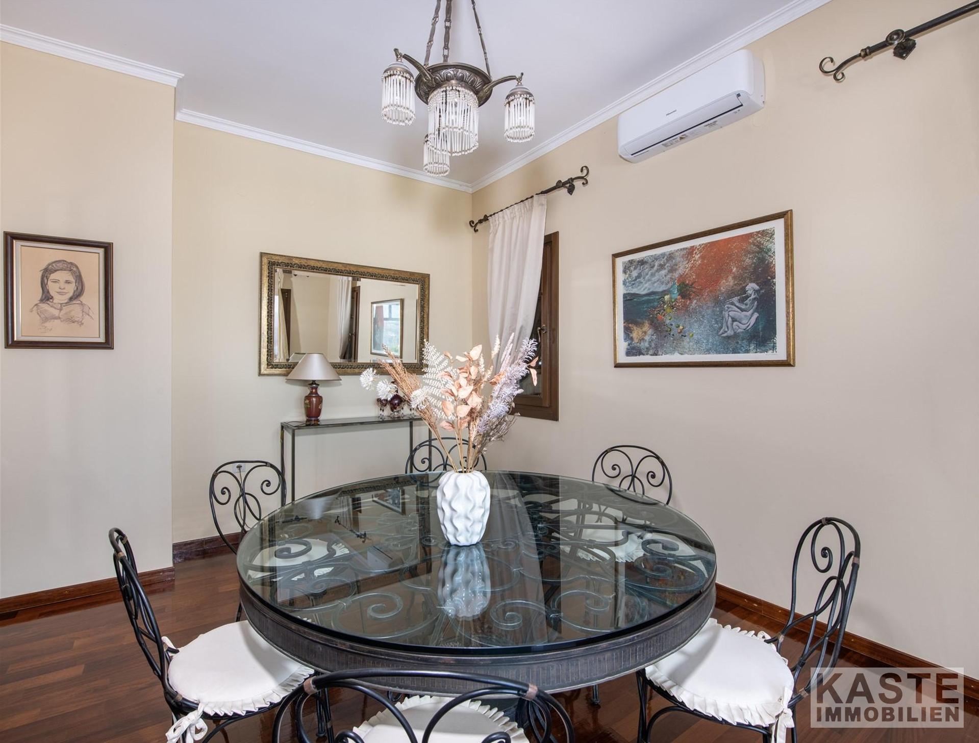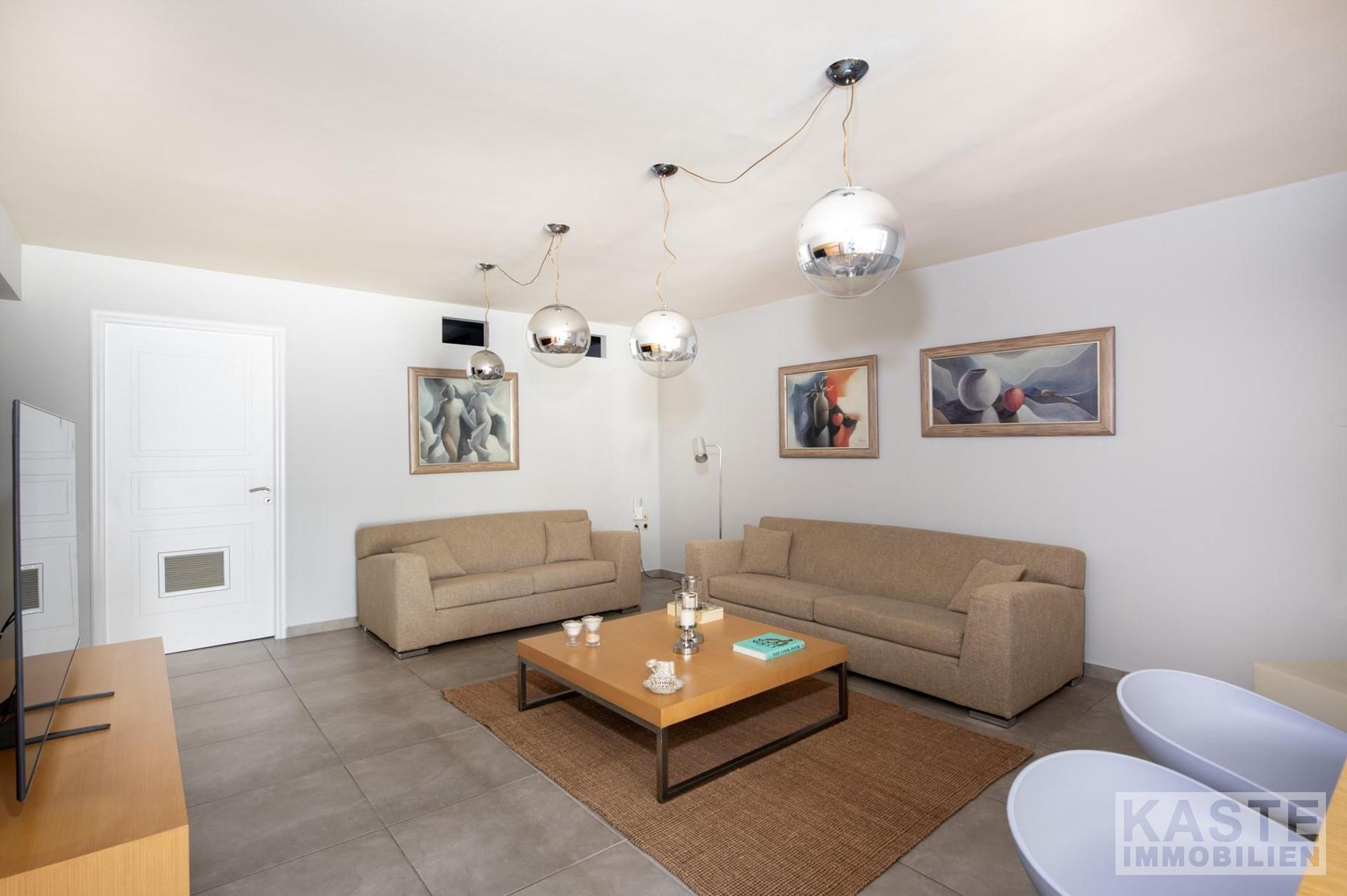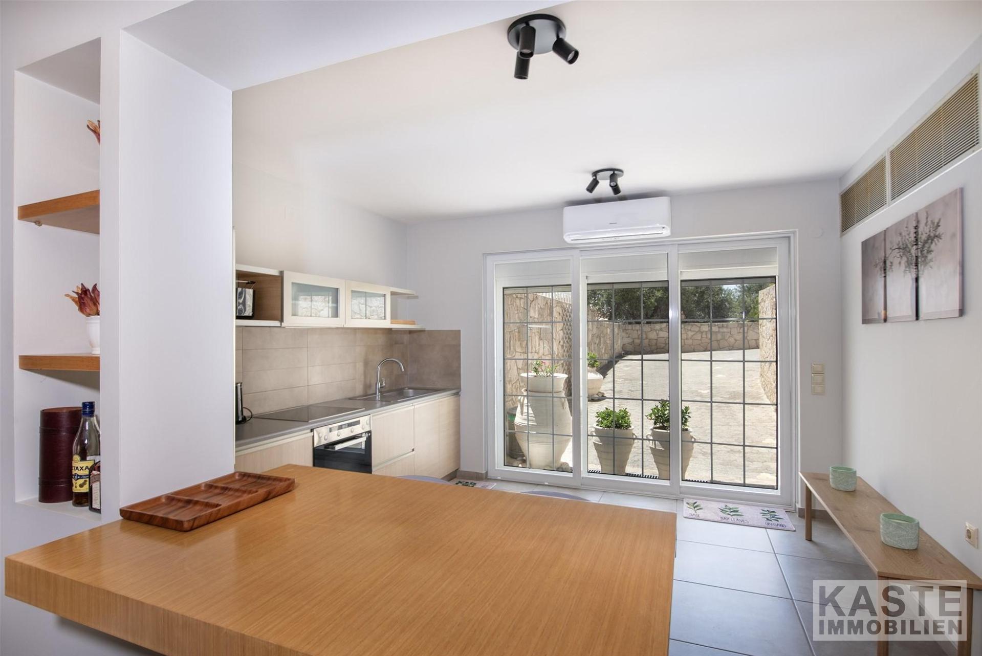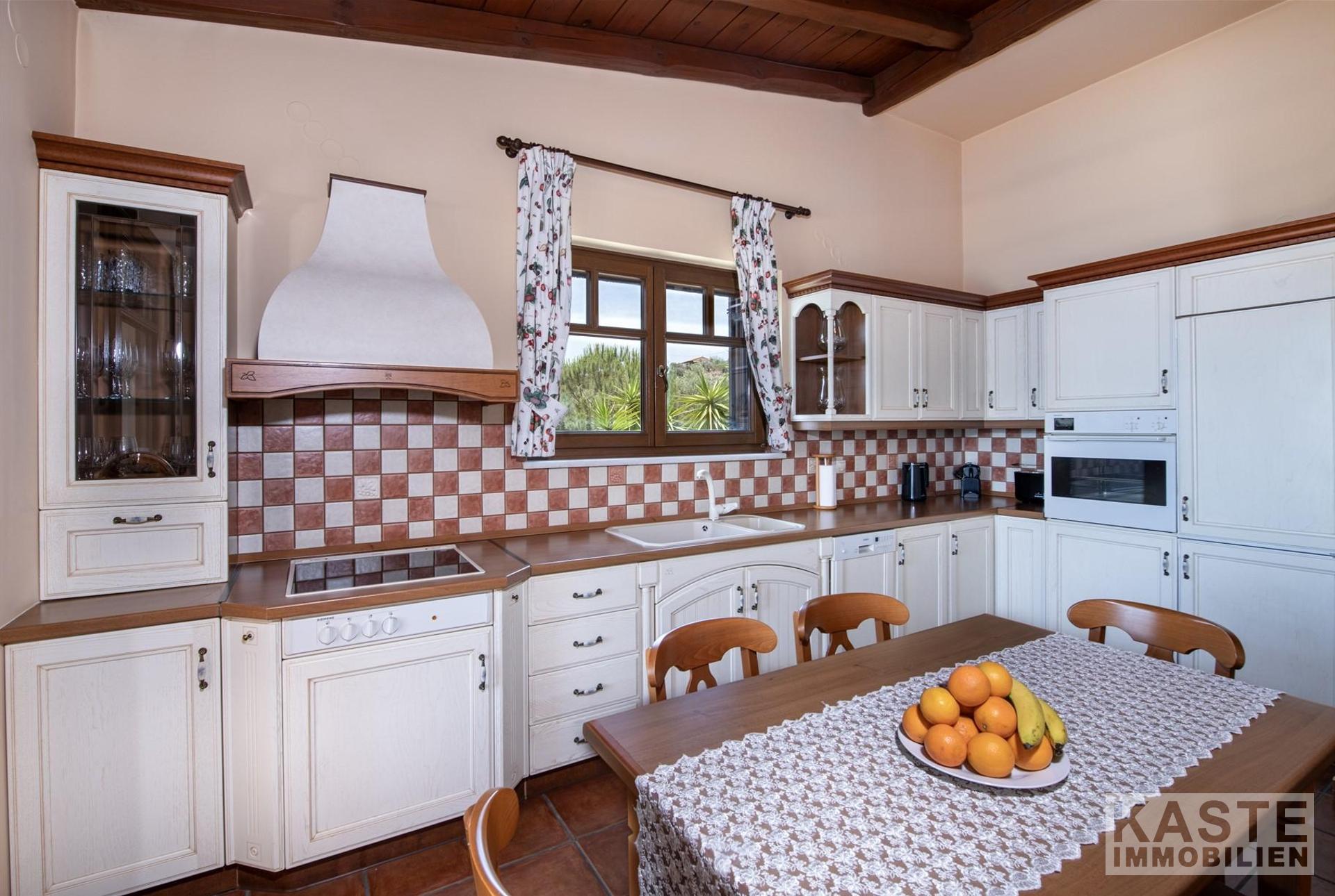 In stilvollem Design integriert sind zwei hochmoderne Küchenbereiche, die den hohen Ansprüchen täglicher Wohnkultur gerecht werden. Das Haus verfügt über eine erstklassige Gesamtisolierung und moderne Klimaanlage, was Energieeffizienzklasse B+ unterstreicht und das Domizil auch in den heißen Sommermonaten prächtig temperiert hält.