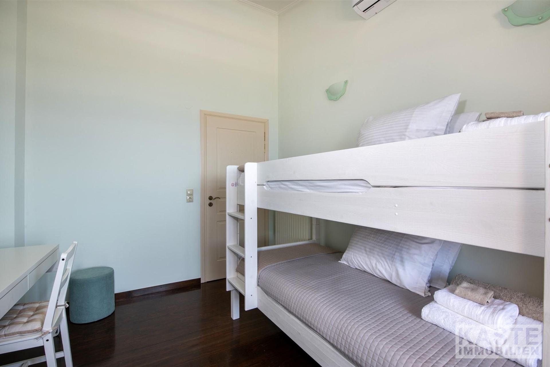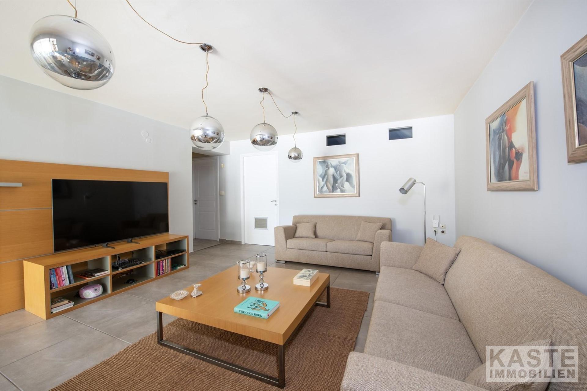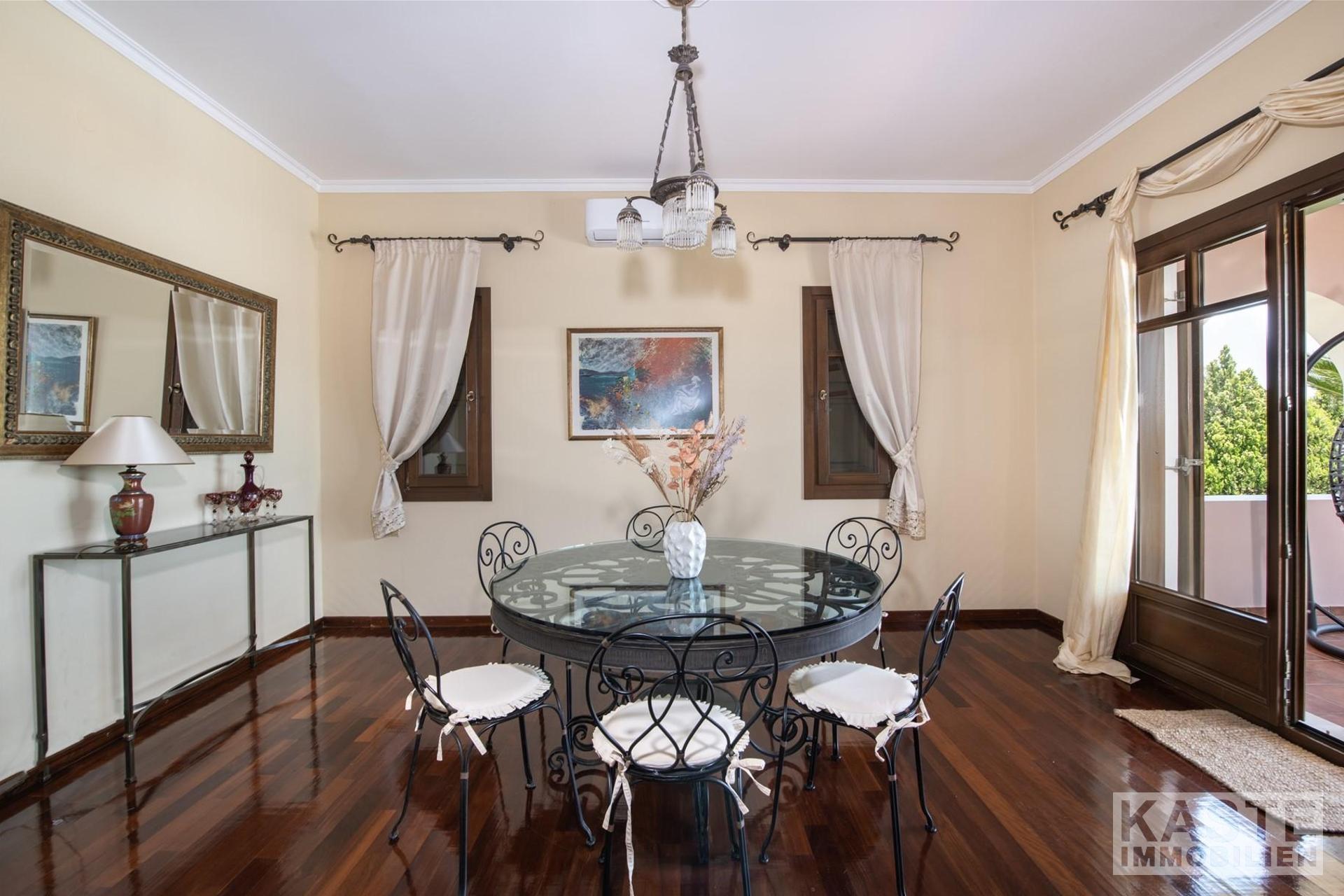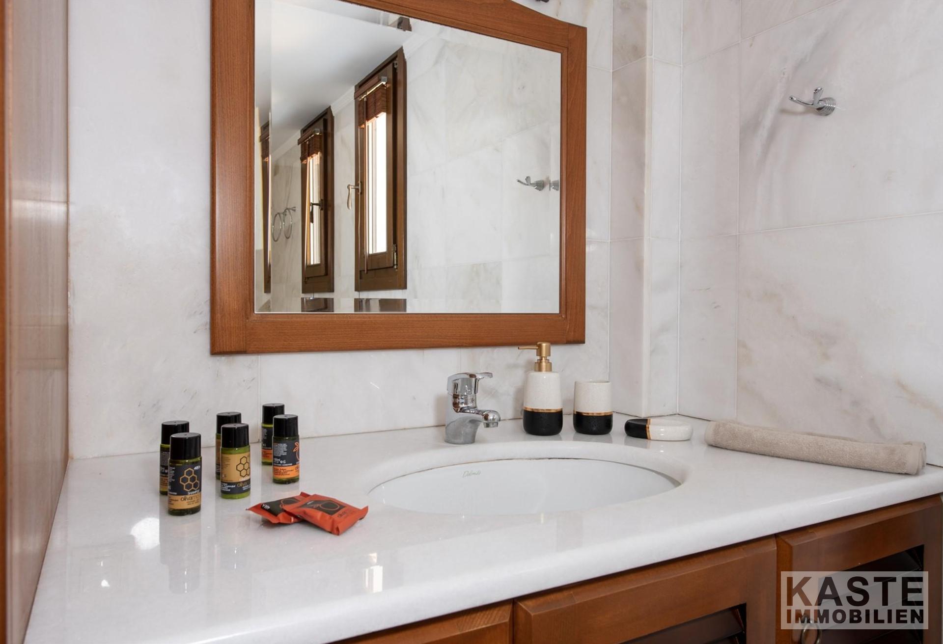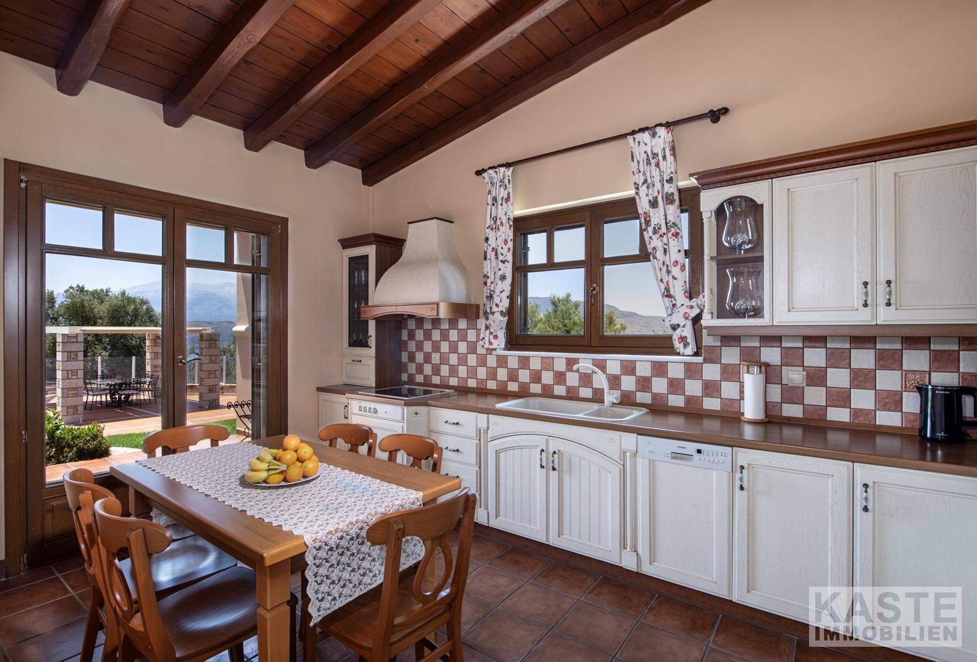 In stilvollem Design integriert sind zwei hochmoderne Küchenbereiche, die den hohen Ansprüchen täglicher Wohnkultur gerecht werden. Das Haus verfügt über eine erstklassige Gesamtisolierung und moderne Klimaanlage, was Energieeffizienzklasse B+ unterstreicht und das Domizil auch in den heißen Sommermonaten prächtig temperiert hält.