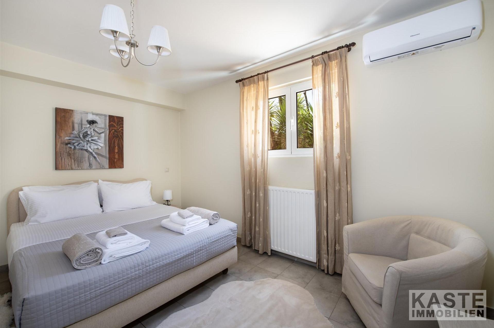 Profis für Lifestyle und Architektur finden hier ein außergewöhnliches Anwesen, das mit mediterranem Flair, exklusiven Extras wie einer Außengrillstation, privaten Parkmöglichkeiten inklusive Garage, und naturnahem Kleinklimagebiet neue Maßstäbe setzt. Diese Luxusvilla verbindet die Vorzüge des ländlichen Lebens mit der Nähe zum urbanen Zentrum von Chania und eröffnet damit ein erstklassiges Lebens- und Investitionspotenzial auf Kreta.