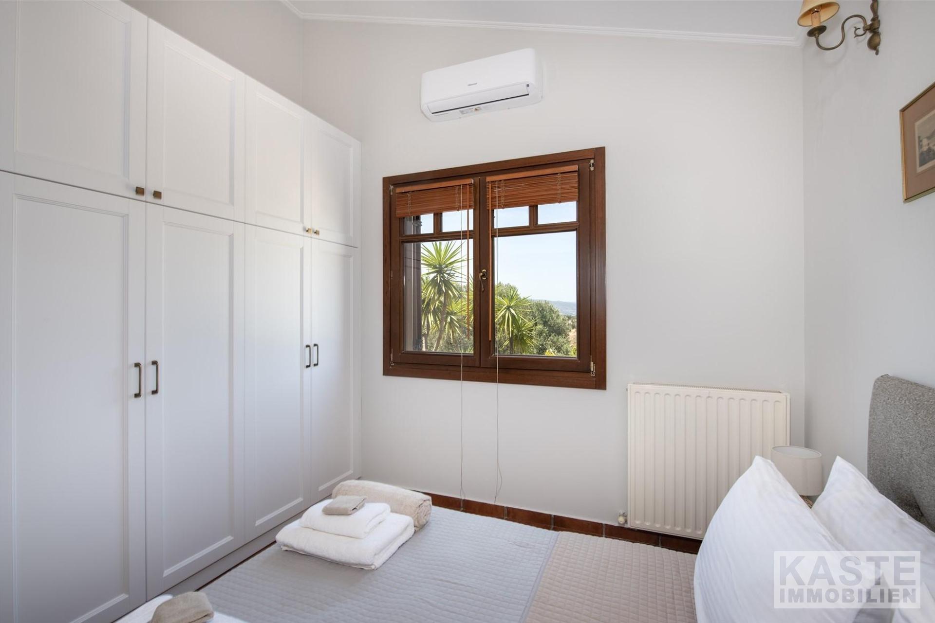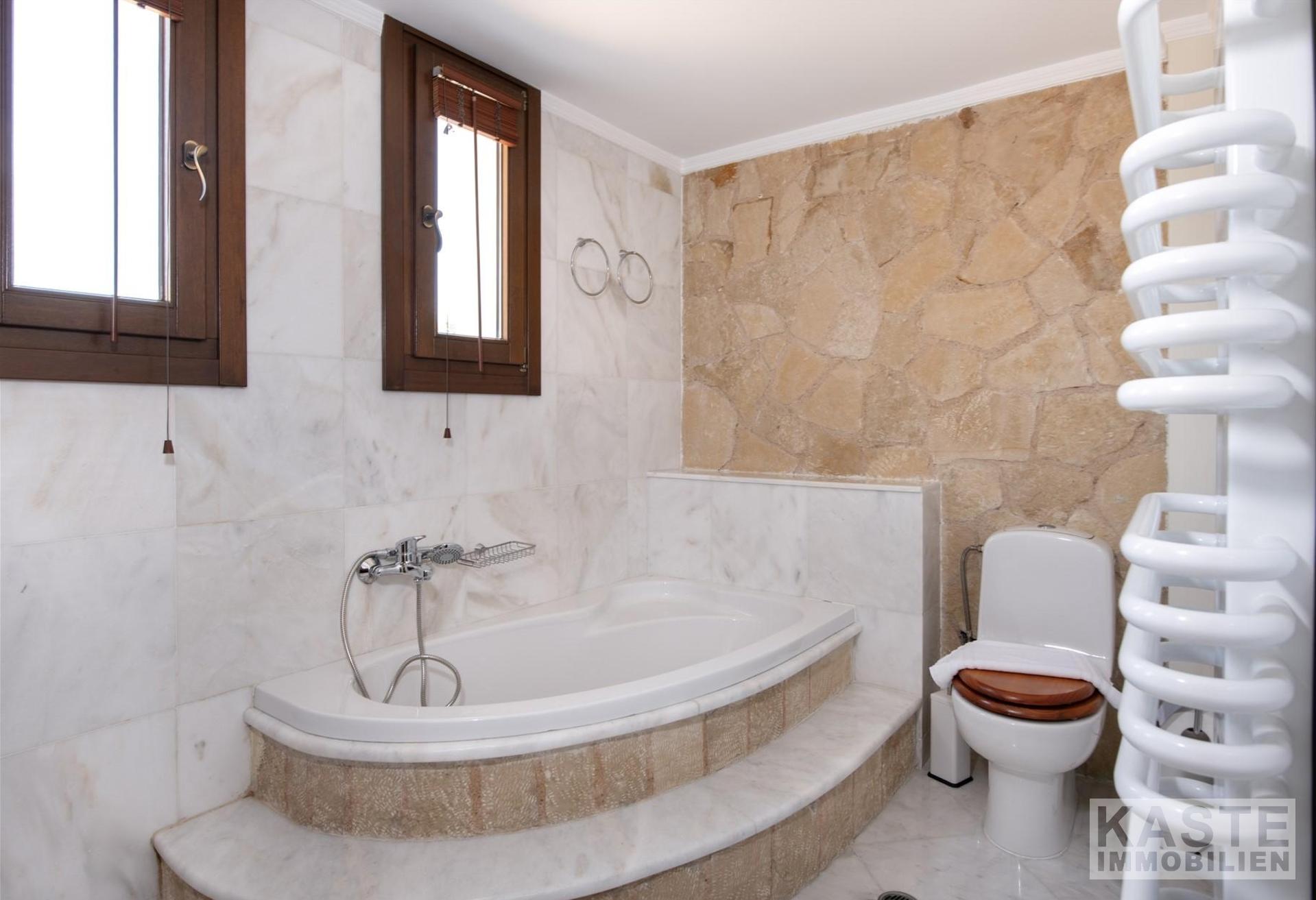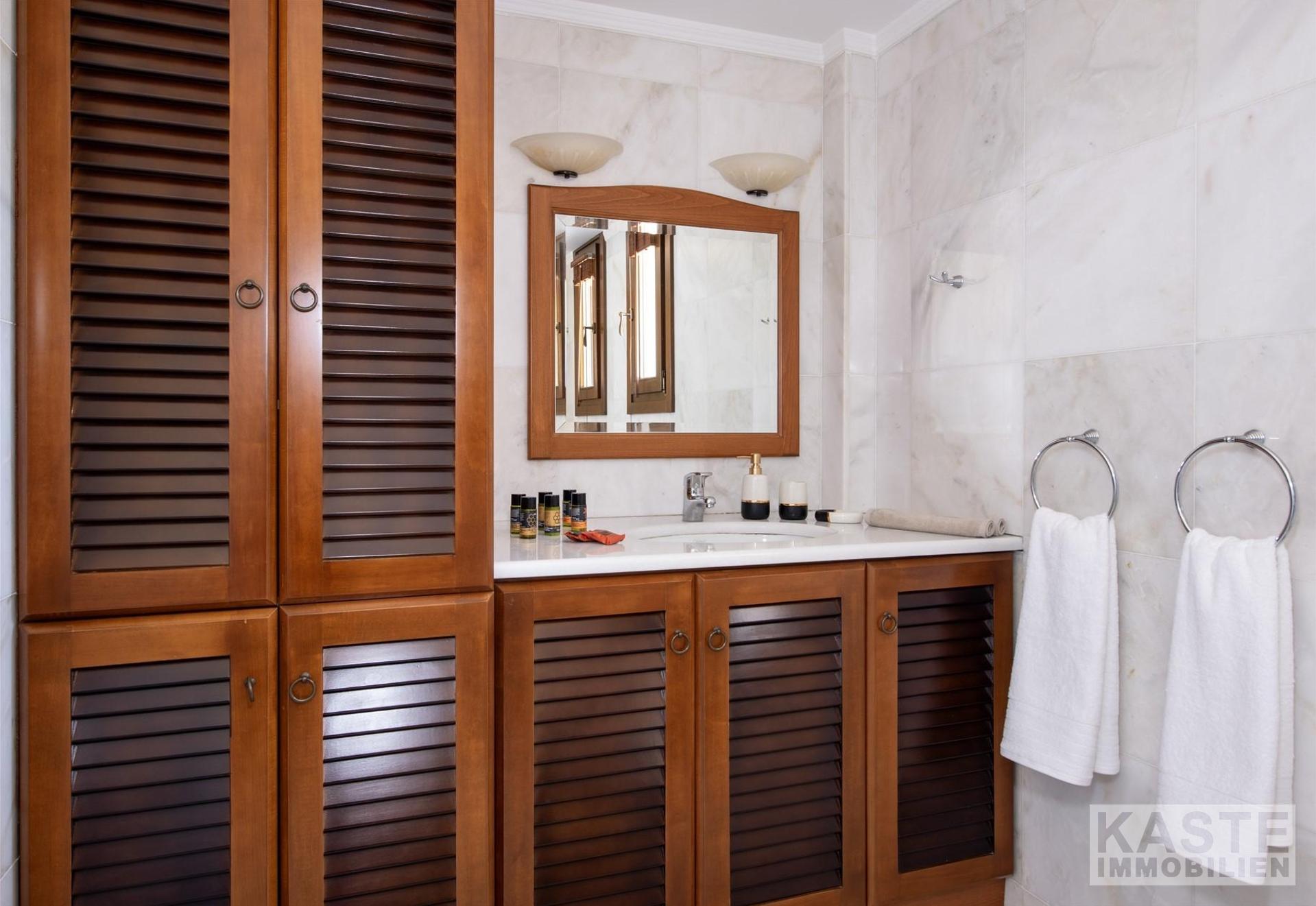 Innenausstattung - Kamin im Wohnbereich - Klimaanlage in allen Zimmern - Mehrere Abstellräume - Ausgestattete Badezimmer mit Sanitäreinrichtungen nach europäischem Standard - Holzfußboden und ansprechende italienische/spanische Bodenfliesen - Großzügige Einbauschränke in allen Schlafzimmern - Fliegengitter in jedem Raum - Zwei moderne Designerküchen mit Einbaugeräten - Fensterläden für optimalen Sonnenschutz - Doppelverglaste Fenster und Balkontüren - Zentralheizung mit Heizkörpern - Vollisolierung der Wände, des Bodens und der Decke - Großer Balkon mit Panoramablick