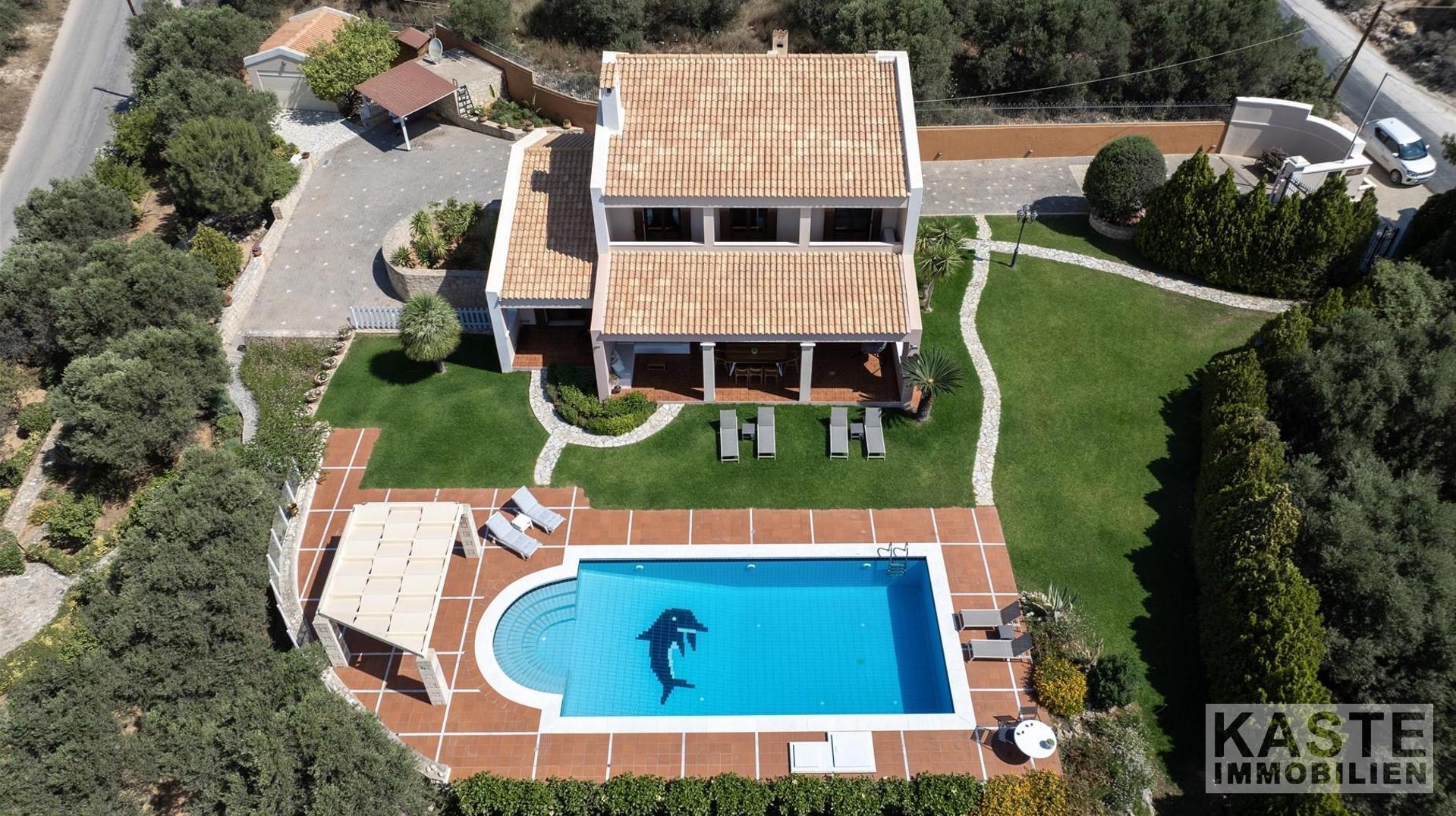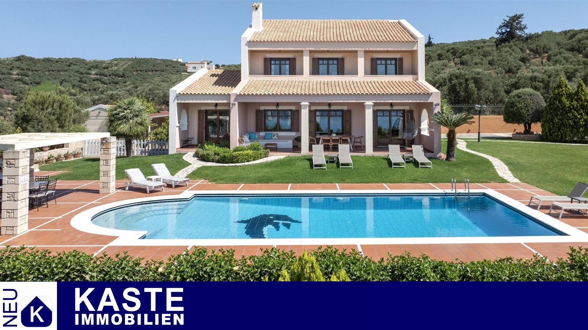 Diese beeindruckende Luxusvilla in Sternes, einem der begehrtesten Dörfer auf der malerischen Halbinsel Akrotiri, bietet Ihnen auf Kreta ein unvergleichliches Wohngefühl verbunden mit spektakulären Panoramablicken auf die Bucht von Souda und die majestätischen Weißen Berge. Die großzügige Immobilie mit einer Wohnfläche von 343 m² erstreckt sich über eine weitläufige Konzeption mit 5 eleganten Schlafzimmern und 3 modernen Badezimmern, ideal für Familien und Liebhaber exklusiven Komforts.