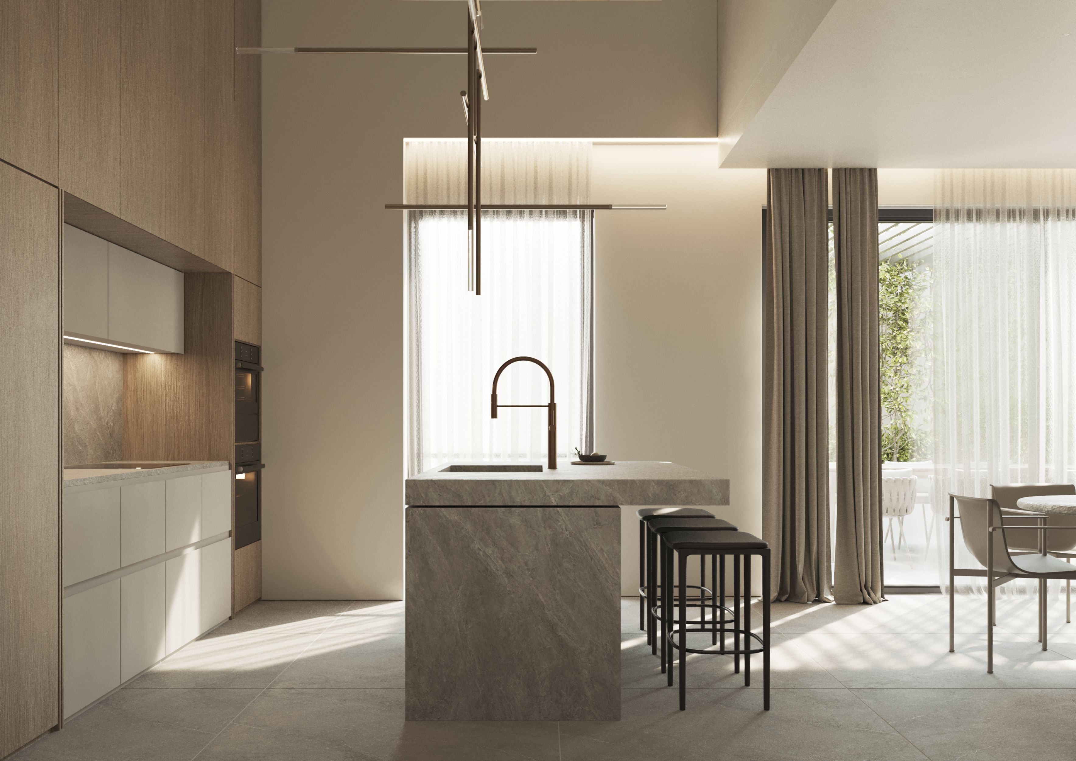 Design & Materialien - Italienische Designküche inkl. Insel & hochwertigen Elektrogeräten - Arbeitsflächen aus Corian oder Infinity-Keramik - Spanische Feinsteinzeugfliesen (innen & außen) - Maßgefertigte Einbauschränke (Formica HPL) bis zur Decke - Sicherheitseingangstür mit Dreifachverglasung - LED-Lichtkonzepte mit Spotlights, Lichtschienen & Akzentbeleuchtung - Aluminium-Fenster mit Thermo- und Schallschutz - Außenpergolen aus verzinktem Metall mit Beschattungssystem