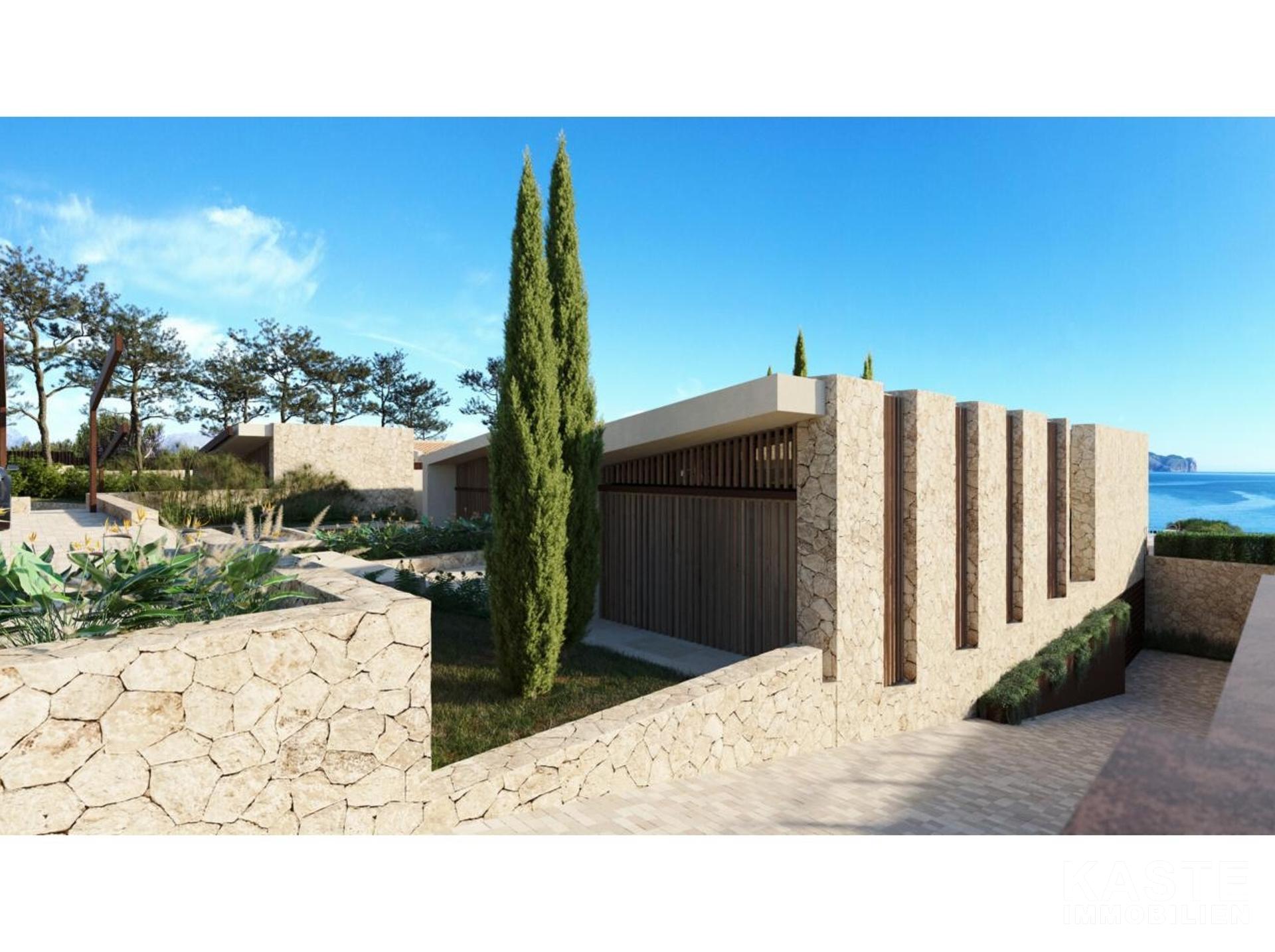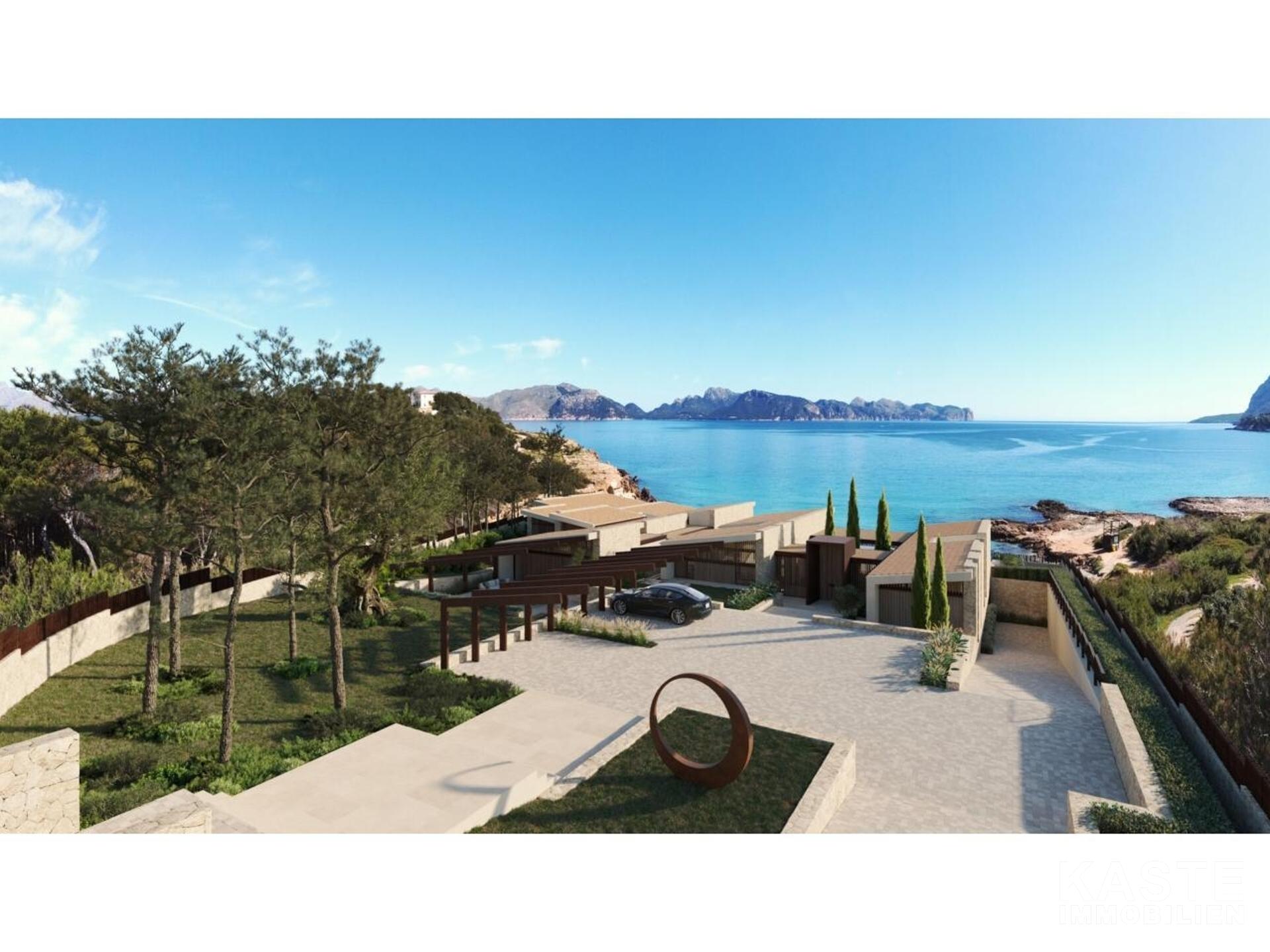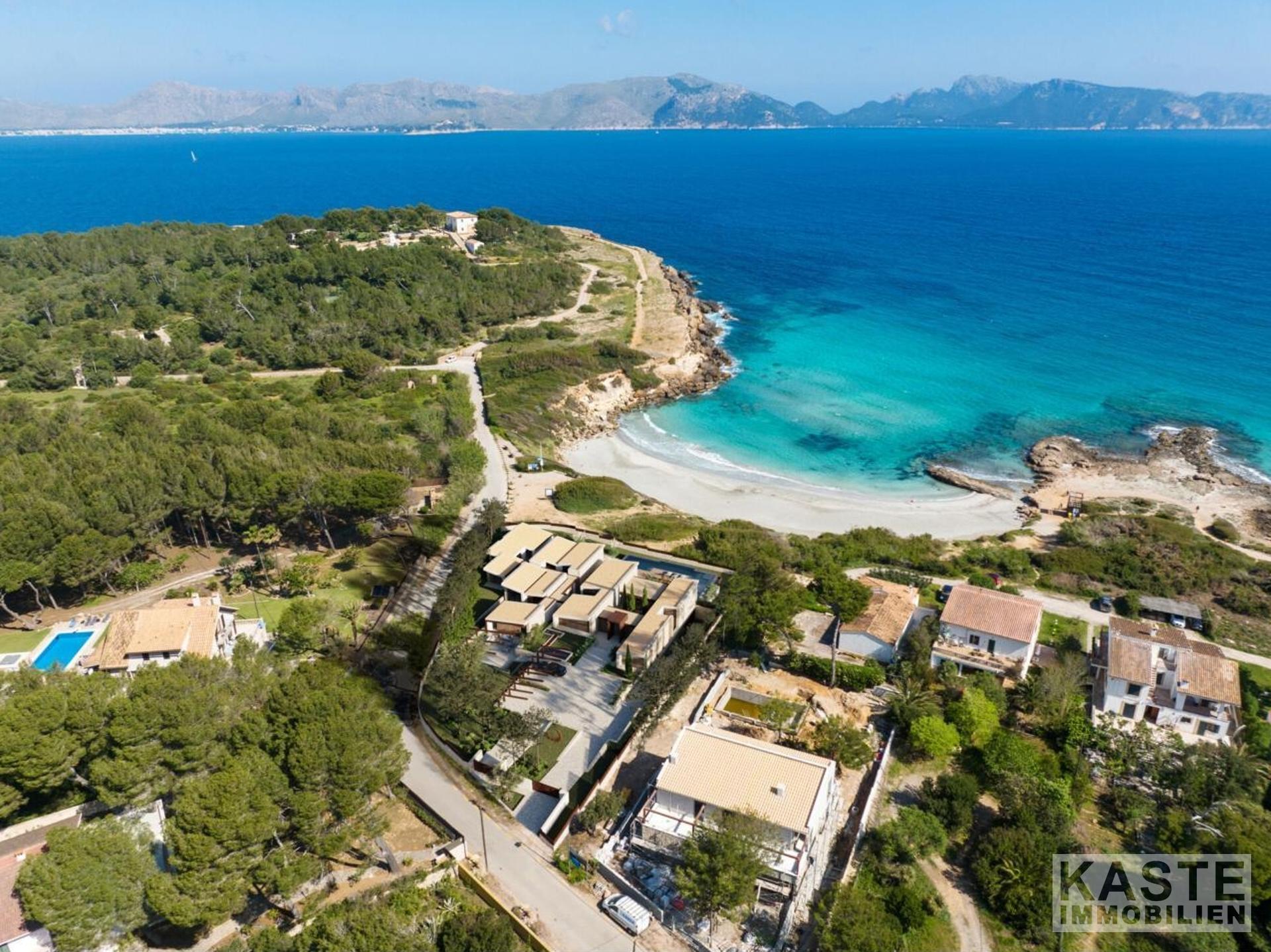 Diese exklusive Neubau-Villa in der begehrten Wohngegend Mal Pas bei Alcúdia auf Mallorca bietet luxuriösen Wohnkomfort auf etwa 650 m² Wohnfläche und erstklassige Ausstattung auf einem großzügigen 2.590 m² Grundstück mit direktem Strandzugang. Die eindrucksvolle, im modernen avantgardistischen Stil konzipierte, einstöckige Villa überzeugt durch ein durchdachtes Raumkonzept mit fünf großzügigen Schlafzimmern, fünf Badezimmern en-suite sowie einer zusätzlichen Gästetoilette. Offene Wohnbereiche, ein elegantes Esszimmer und eine exquisite, voll ausgestattete Küche schaffen ein offenes und kommunikatives Ambiente, das durch den direkten Zugang zu den sonnigen sowie überdachten Terrassen nahtlos mit dem idyllischen Außenbereich verschmilzt.