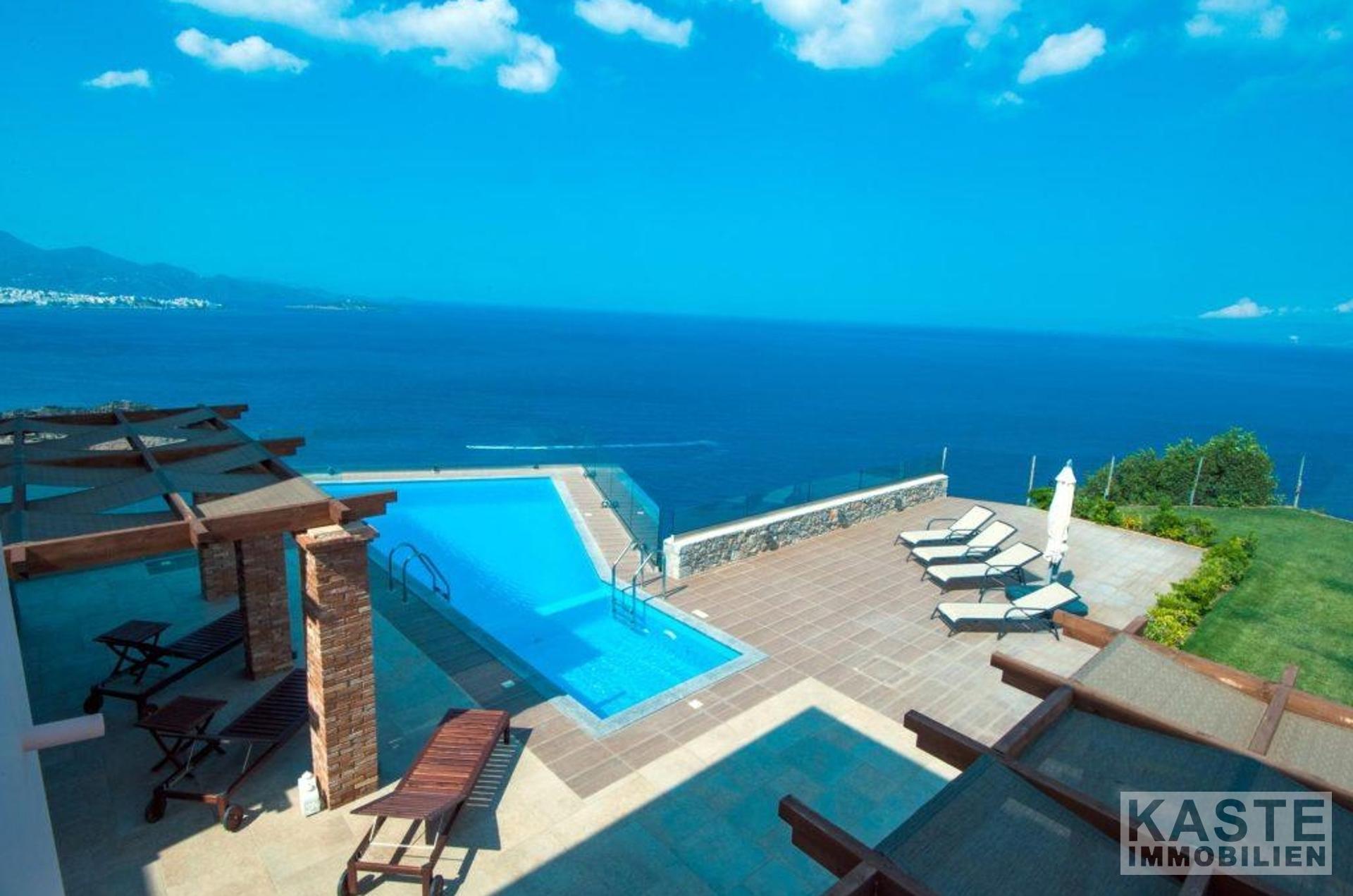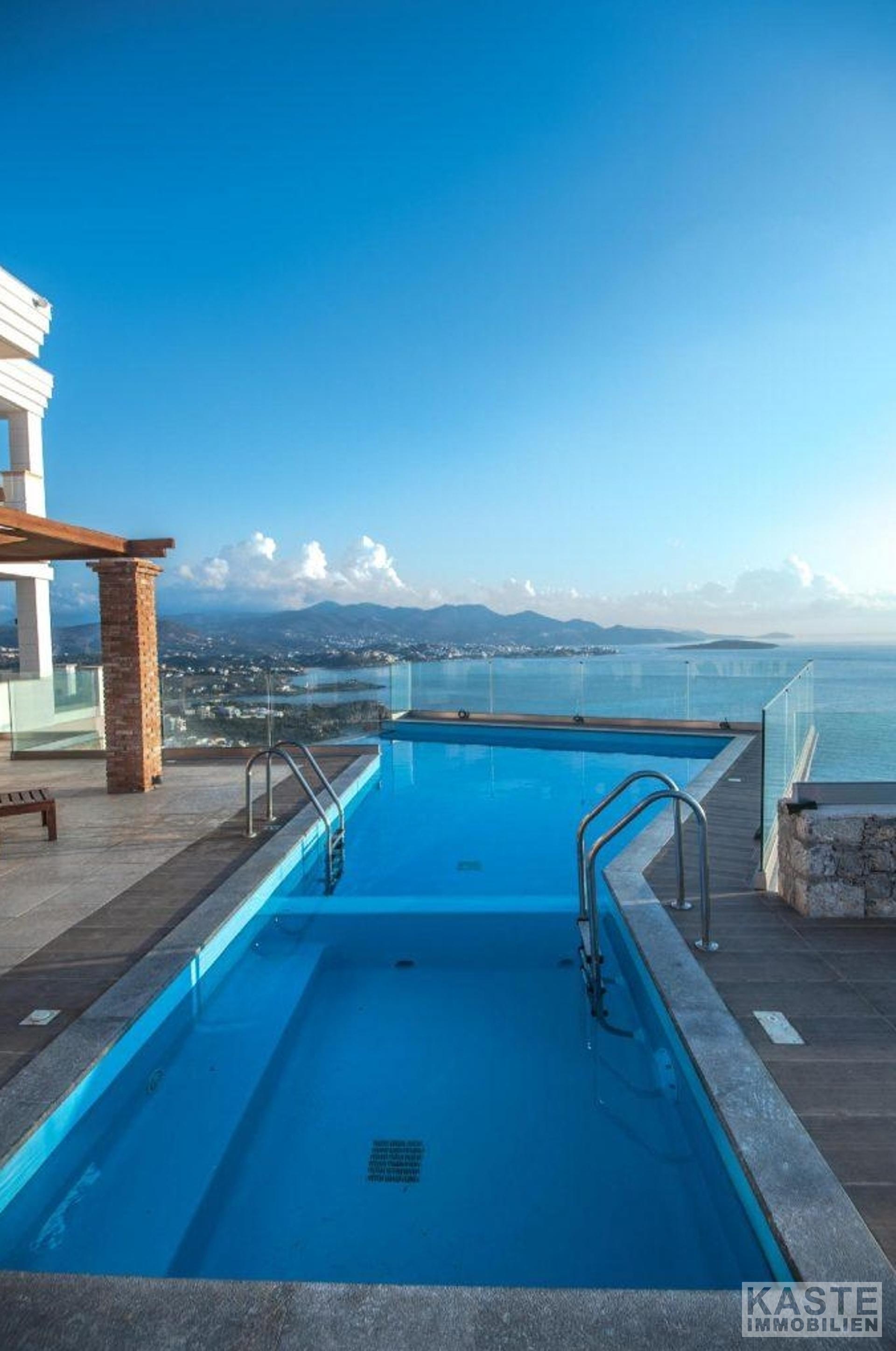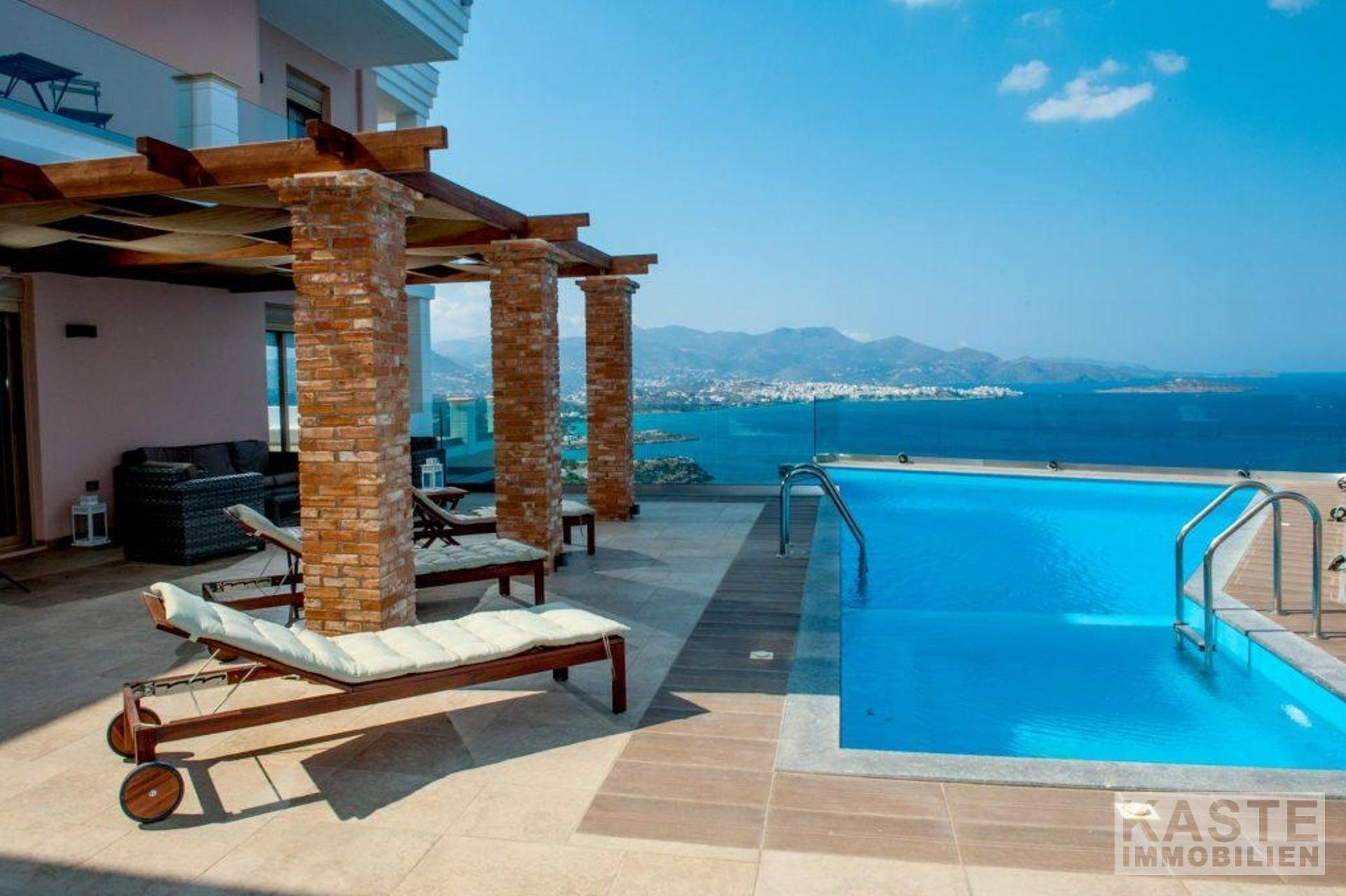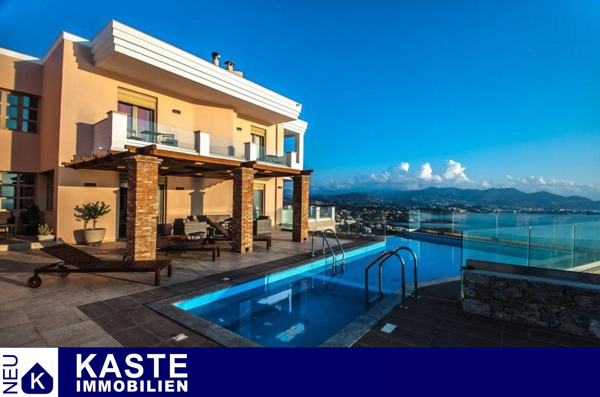 Diese wunderschöne, moderne Villa, die 300m2 umfasst, liegt nur 300m vom Strand und 4km von der hübschen Küstenstadt Agios Nikolaos auf Kreta entfernt. Das 3-stöckige Haus mit herrlichem Blick auf die Bucht von Mirabello und die Berge von Sitia, befindet sich auf einem großen Grundstück von 4.000m2.