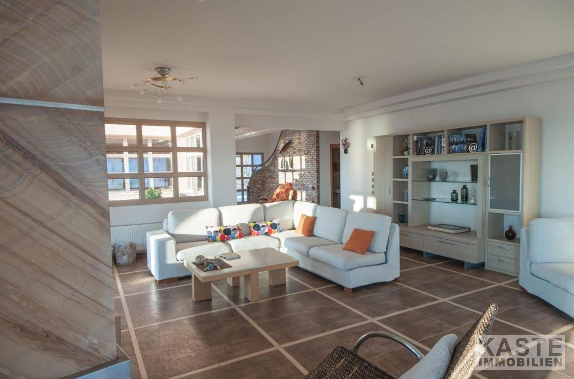 Die Villa umfasst folgendes im Erdgeschoss: - Offener Wohnbereich inklusive Küche, mit Kamin und einer Doppelglas-Balkontür, die zu einem 20m2 großen Balkon führt - Separate voll ausgestattete moderne Küche - Arbeitszimmer/Bürozimmer - Waschküche - Gästetoilette - Eine große Treppe, die in den ersten Stock führt.