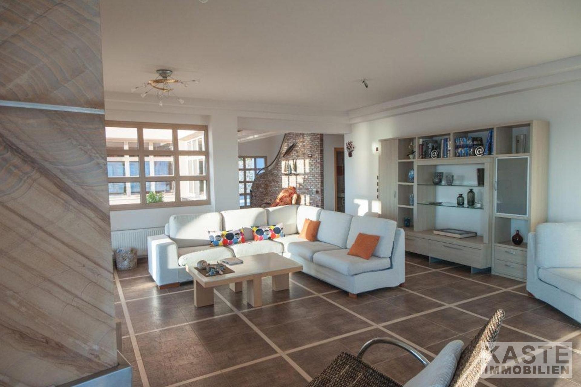 Die Villa umfasst folgendes im Erdgeschoss: - Offener Wohnbereich inklusive Küche, mit Kamin und einer Doppelglas-Balkontür, die zu einem 20m2 großen Balkon führt - Separate voll ausgestattete moderne Küche - Arbeitszimmer/Bürozimmer - Waschküche - Gästetoilette - Eine große Treppe, die in den ersten Stock führt.
