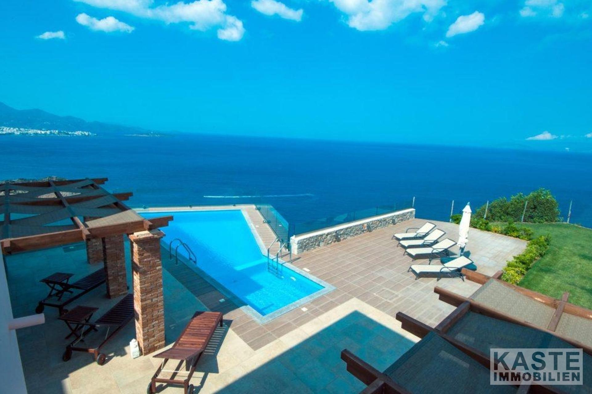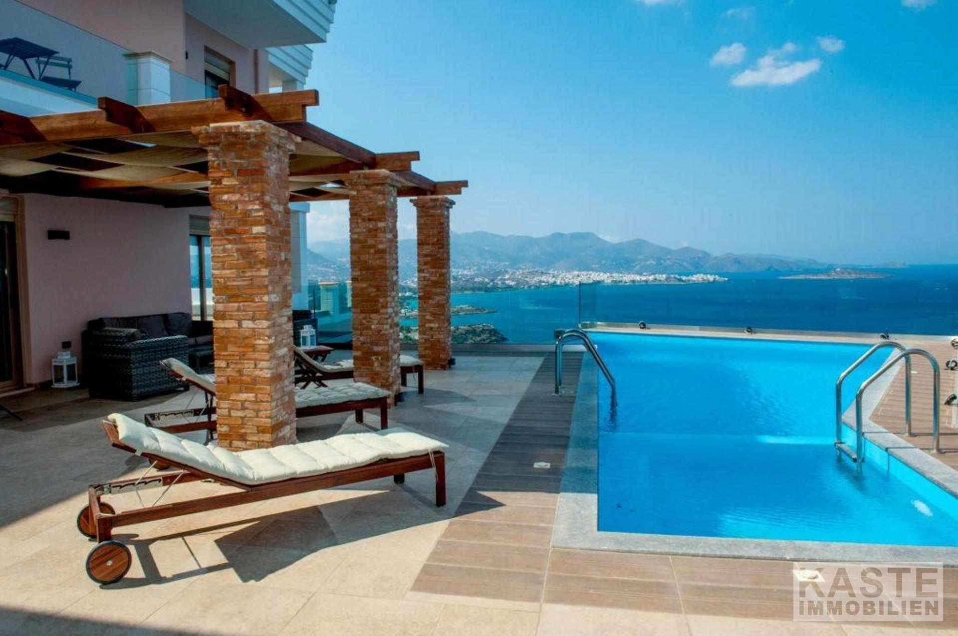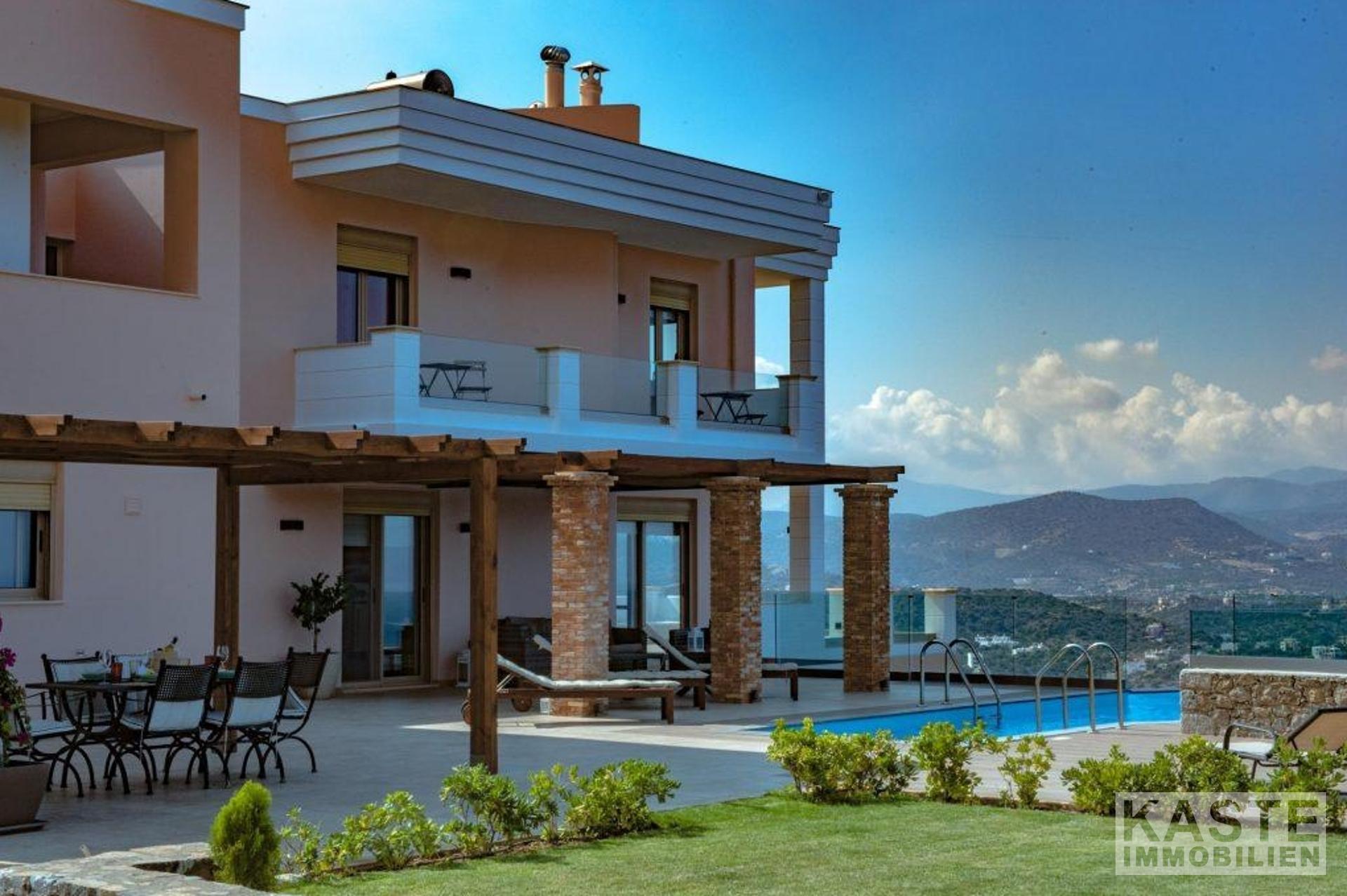 Diese wunderschöne, moderne Villa, die 300m2 umfasst, liegt nur 300m vom Strand und 4km von der hübschen Küstenstadt Agios Nikolaos auf Kreta entfernt. Das 3-stöckige Haus mit herrlichem Blick auf die Bucht von Mirabello und die Berge von Sitia, befindet sich auf einem großen Grundstück von 4.000m2.