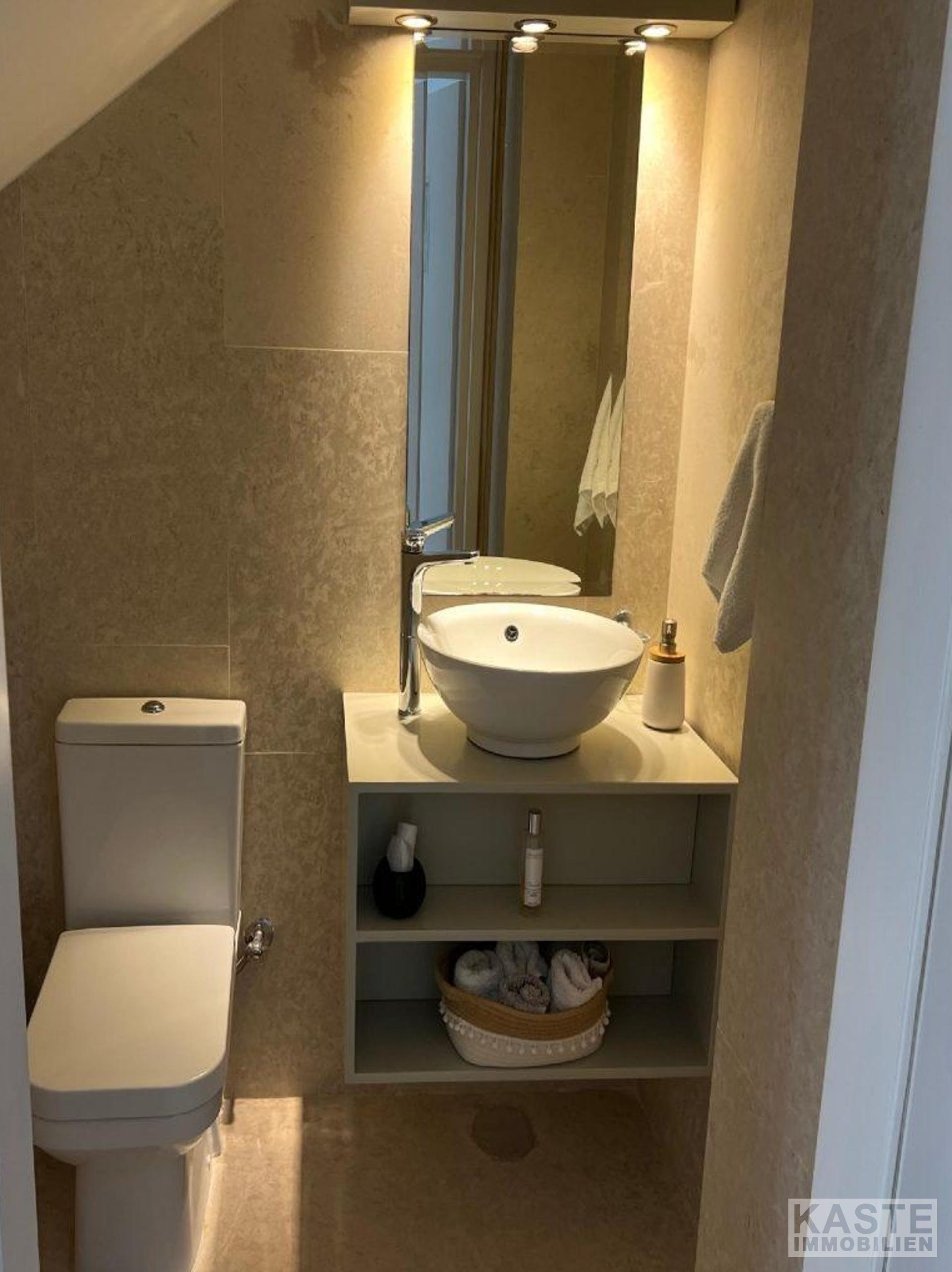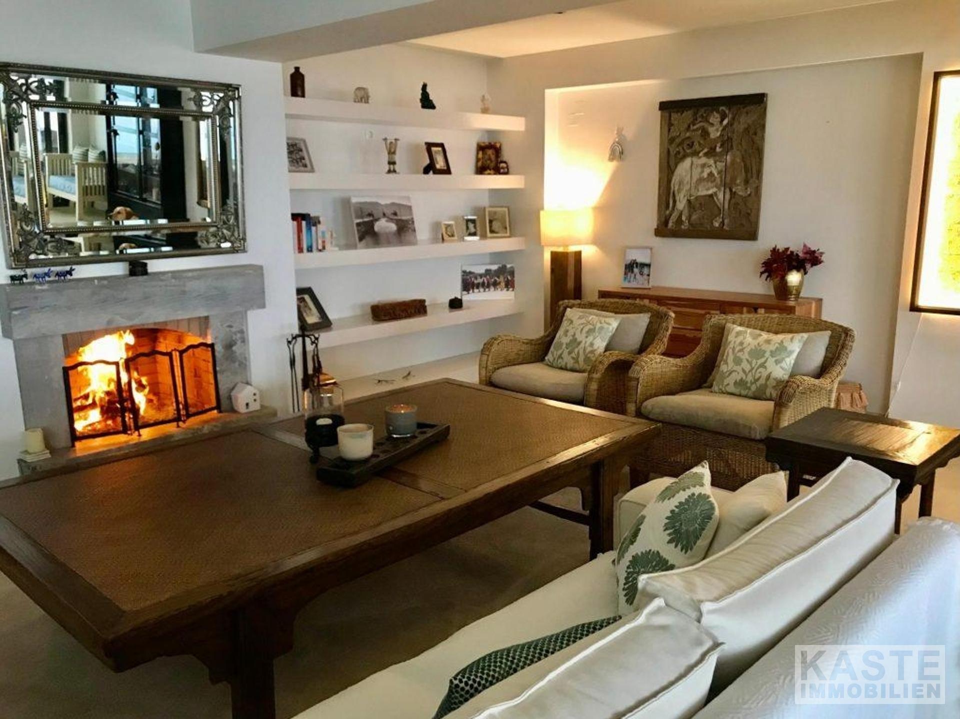 Innenausstattung - Offener Wohn-, Ess- und Küchenbereich mit Zugang zur Terrasse - Drei Schlafzimmer (zwei mit eigenem Bad und Balkonzugang) - Eigenständiges Gäste-Studio mit separatem Eingang - Homeoffice, wandelbar zu weiterem Schlafzimmer - Klimaanlage in der gesamten Villa - Zentralheizung für angenehmen Komfort - Elektrische Rollläden an allen Fenstern - Teils möbliert, Gästeapartment voll möbliert - Hochwertige Ausstattung und hochwertige Materialien