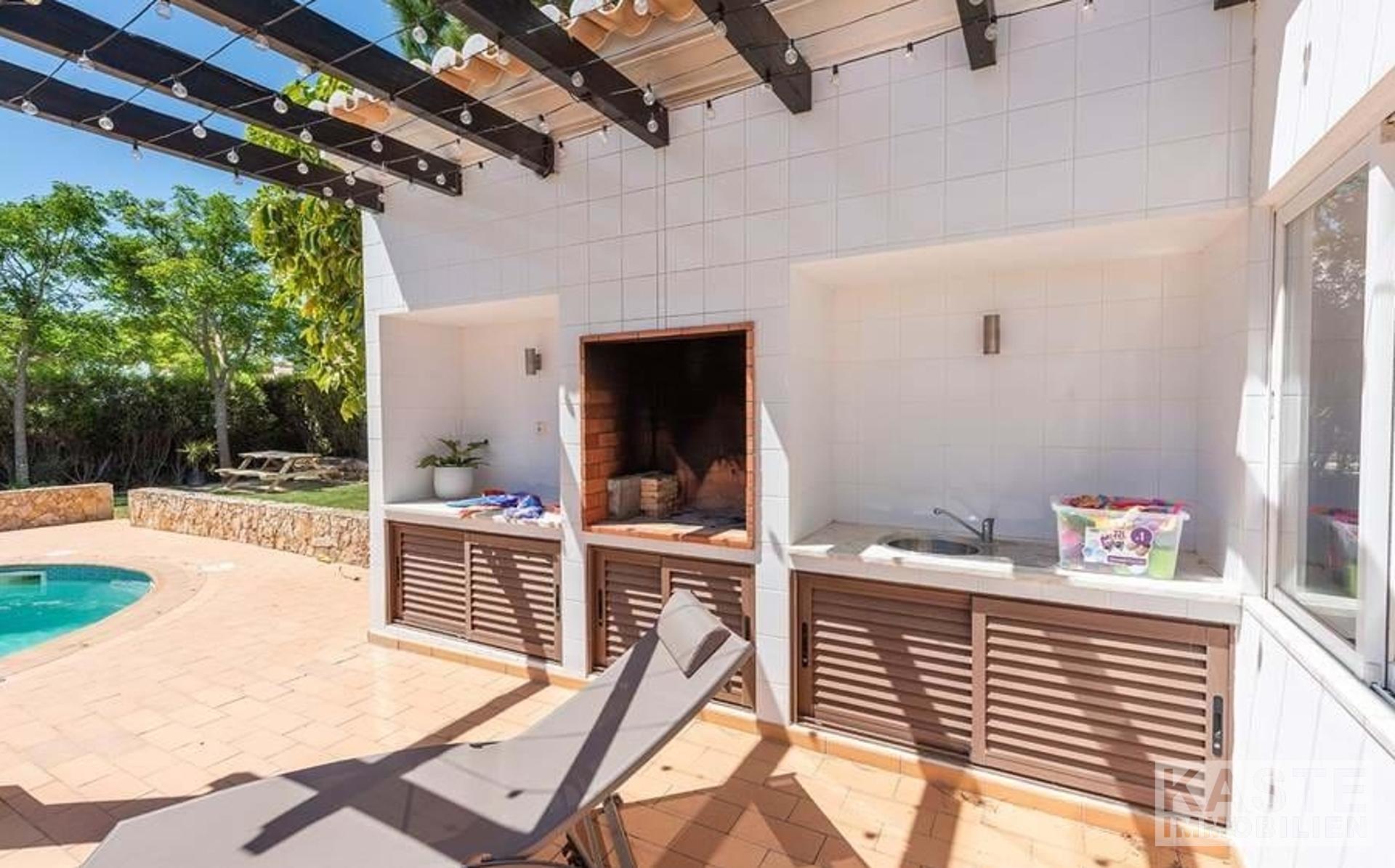 Moderne Ausstattung und Komfort Die Villa ist mit einem Holzofen im Wohnzimmer, Fußbodenheizung und Klimaanlagen bestens ausgestattet, um ganzjährig Komfort zu gewährleisten. Das Grundstück verfügt über eine Einfahrt mit automatischen Toren, die zu einem überdachten Carport führen.