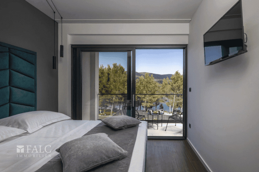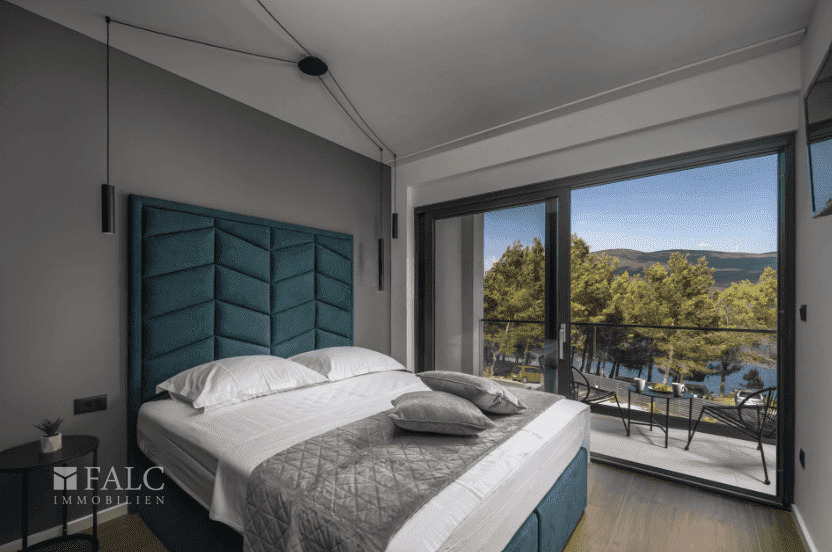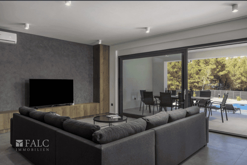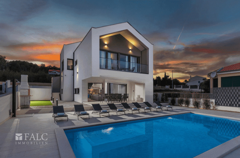 Andreas Franzke von FALC Immobilien Heilbronn präsentiert Ihnen ein modernes Traumhaus mit Meerblick an der Küste von Kroatien - ein Ort, an den Sie sich jederzeit zurückziehen können. Das im Jahr 2022 errichtete Anwesen überzeugt durch hochwertige Bauweise, großzügige Flächen und eine durchdachte Architektur. Auf einer Wohnfläche von ca. 204,94 m² und einem Grundstück von ca. 666 m² bietet die Villa ein hohes Maß an Privatsphäre und Komfort. Der gepflegte Außenbereich mit einem ca. 36 m² großen Pool, einer Außendusche sowie einer überdachten Terrasse mit Grillplatz lädt zu entspannten Stunden im Freien ein. Insgesamt stehen drei Parkplätze zur Verfügung, darunter eine Garage sowie zwei Außenstellplätze.