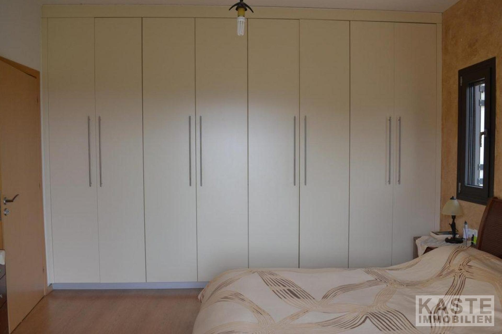 Der erste Stock präsentiert sich mit drei großzügigen Doppelschlafzimmern, alle mit bodentiefen Einbauschränken und jeweils einem eigenen Zugang zu Balkonen. Ein geräumiges Badezimmer mit Eckbadewanne und Einbauschränken vervollständigt diesen Bereich.