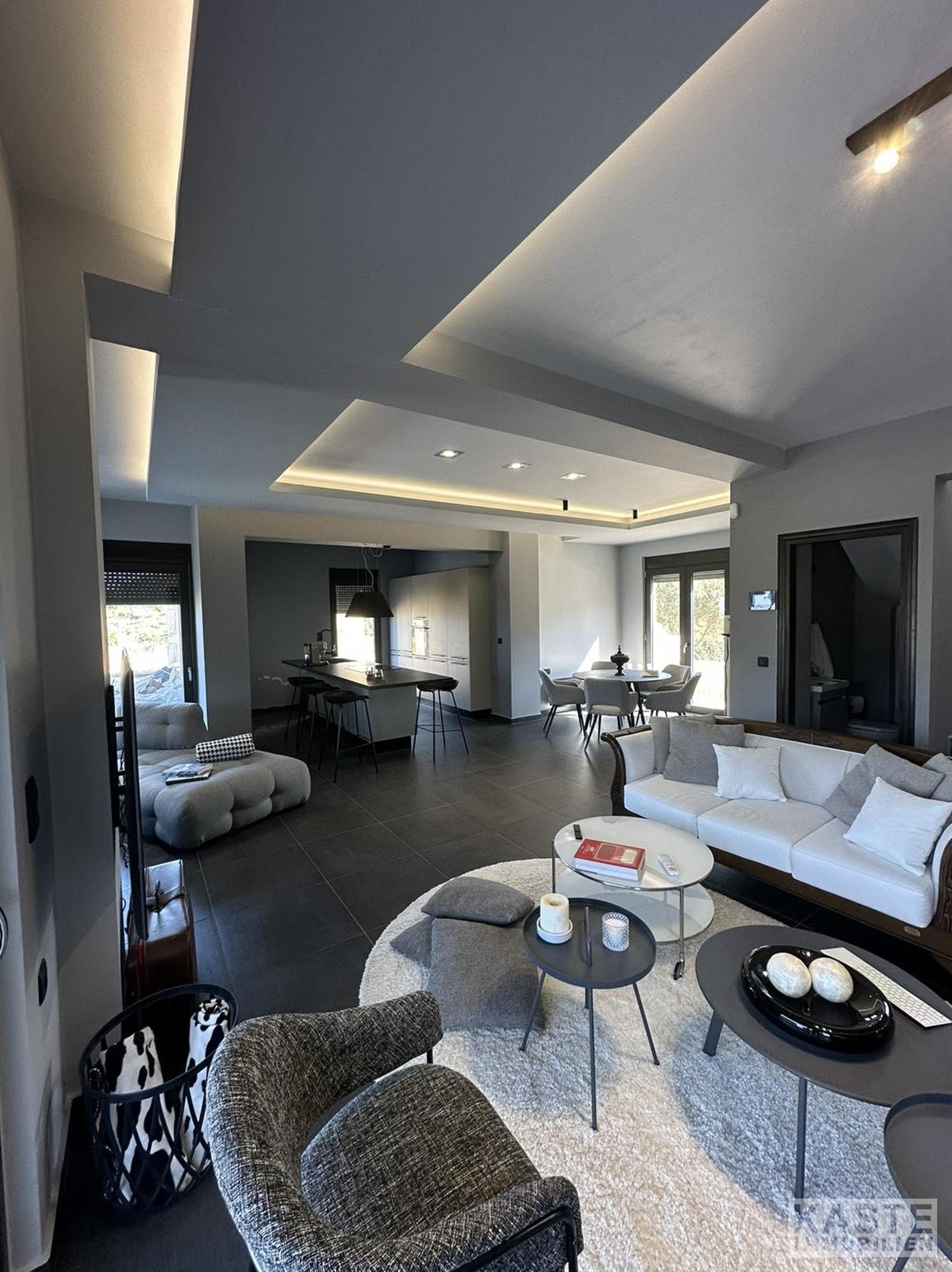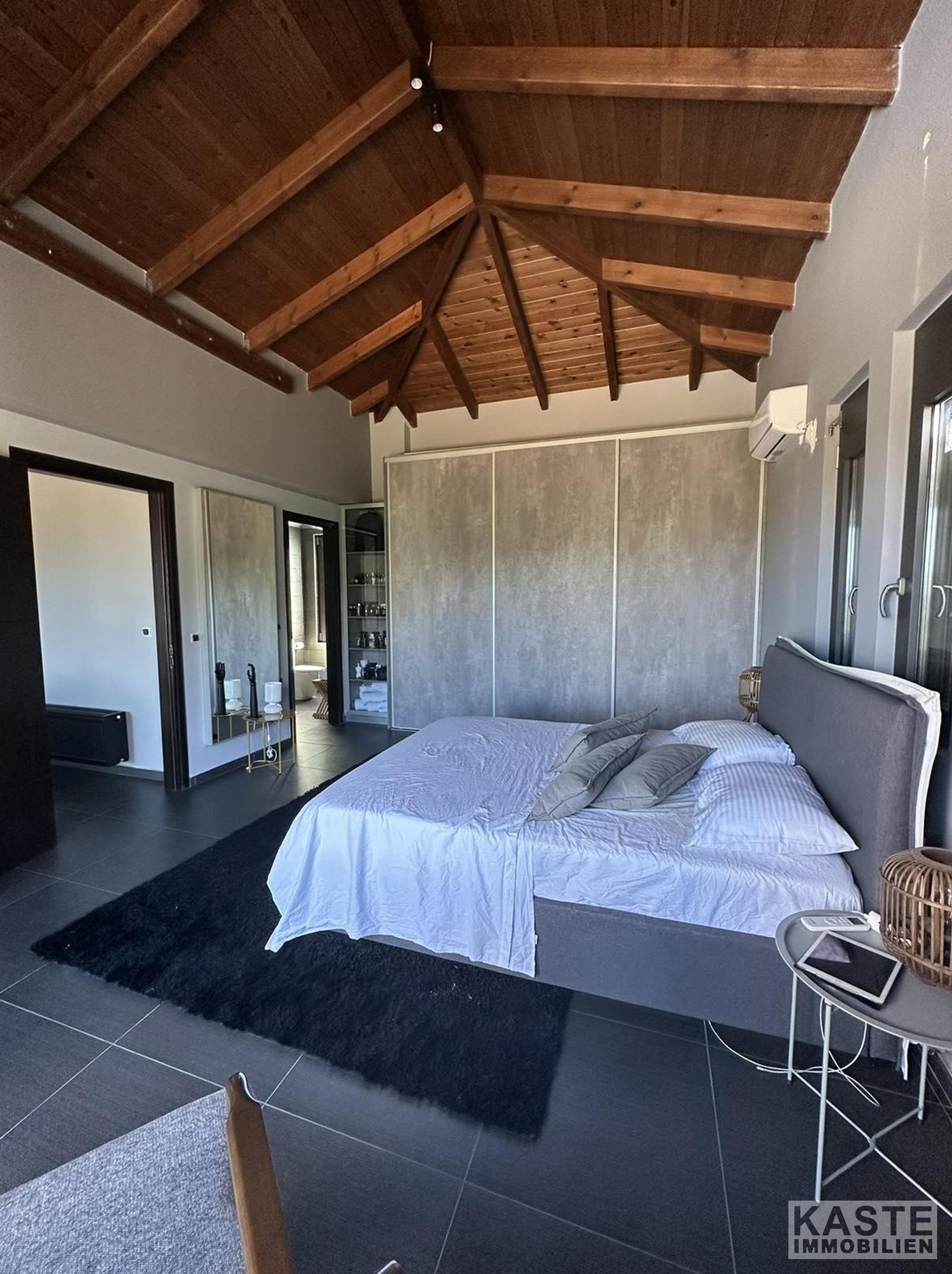 Auf rund 230 m² Wohnfläche bietet das Anwesen höchsten Wohnkomfort verteilt auf zwei Ebenen: Drei großzügige Schlafzimmer mit jeweils eigenen Badezimmern und Balkonen garantieren Privatsphäre und Weitblick – jedes Zimmer ein eigener Rückzugsort mit beeindruckender Aussicht. Im Erdgeschoss empfängt Sie ein offener Wohnbereich mit gemütlichem Kamin, Essplatz und moderner Küche – das stilvolle Zentrum der Villa.