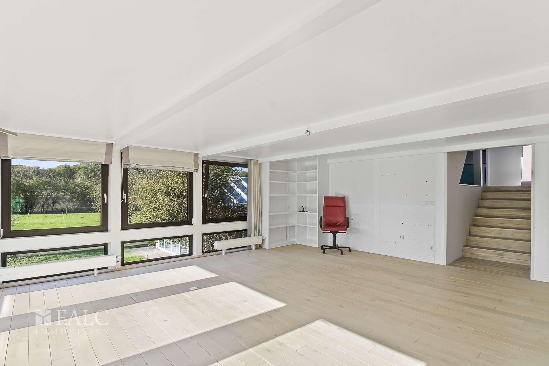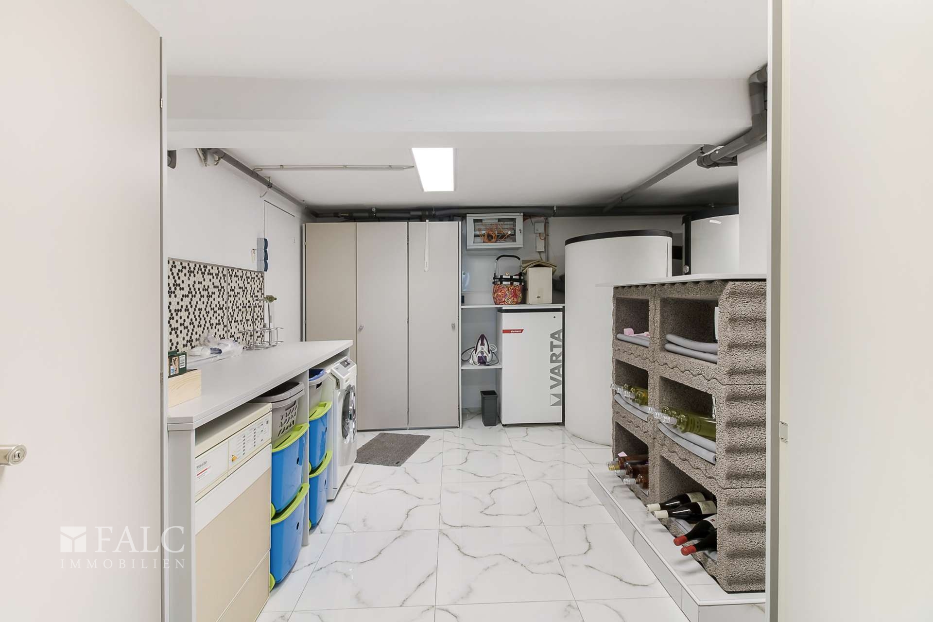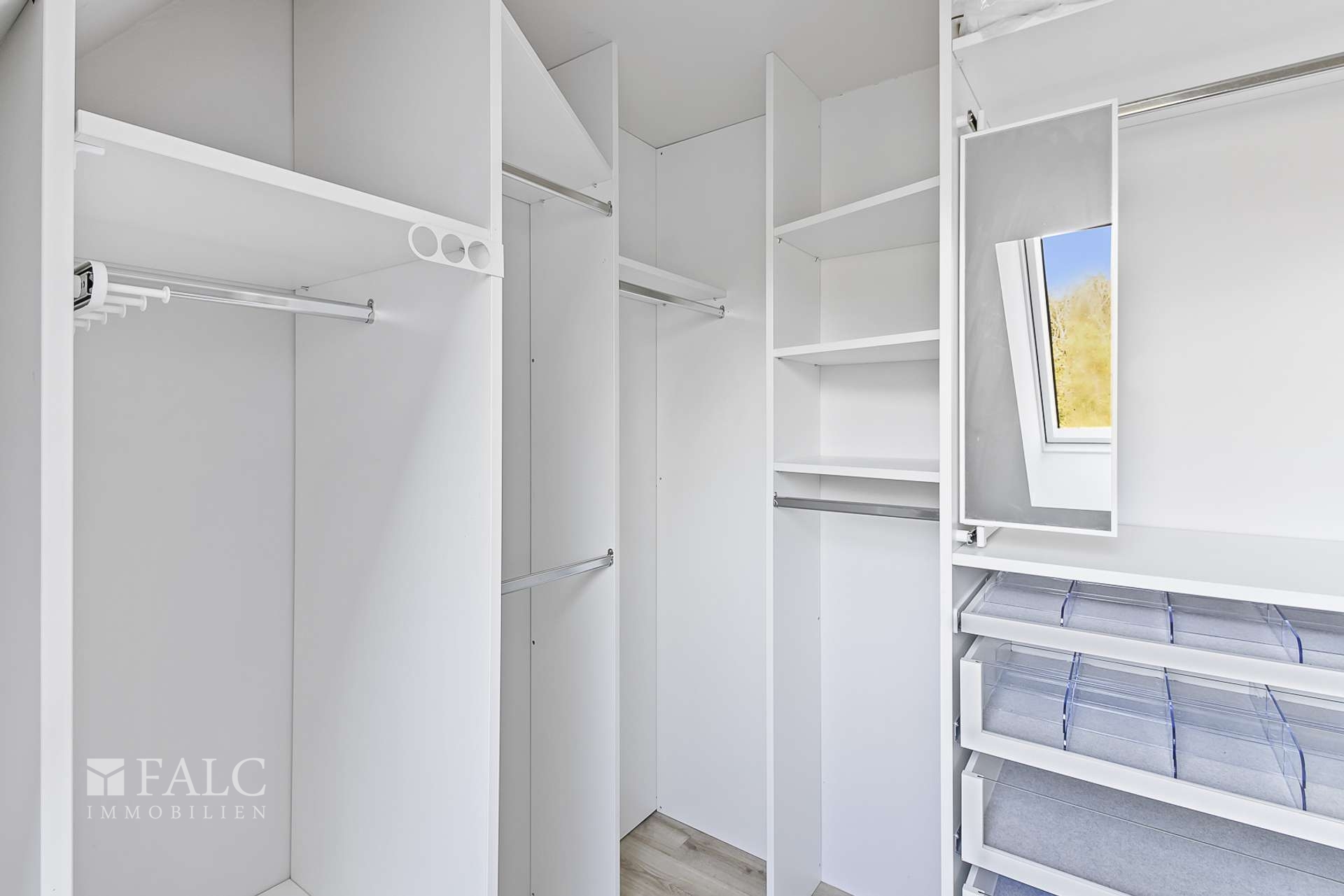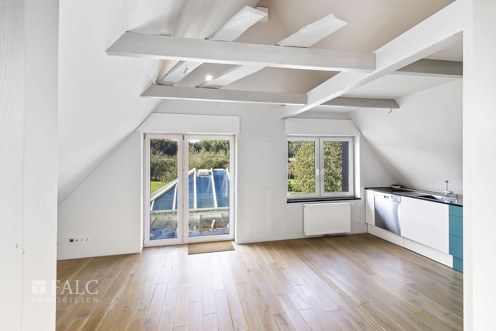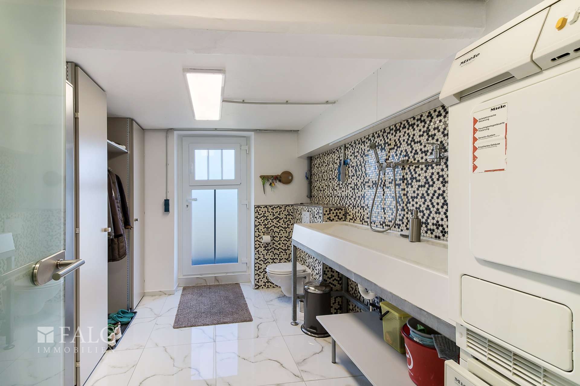 Das gesamte Obergeschoss des Hauses ist als Einliegerwohnung konzipiert und bietet zusätzlichen Wohnraum auf höchstem Niveau. Hier finden Sie ein Wohnzimmer, eine voll ausgestattete Küche sowie ein gemütliches Esszimmer. Das Schlafzimmer mit angrenzender Ankleide und ein modernes Badezimmer sorgen für Komfort und Privatsphäre – ideal für Gäste oder als separater Wohnbereich.