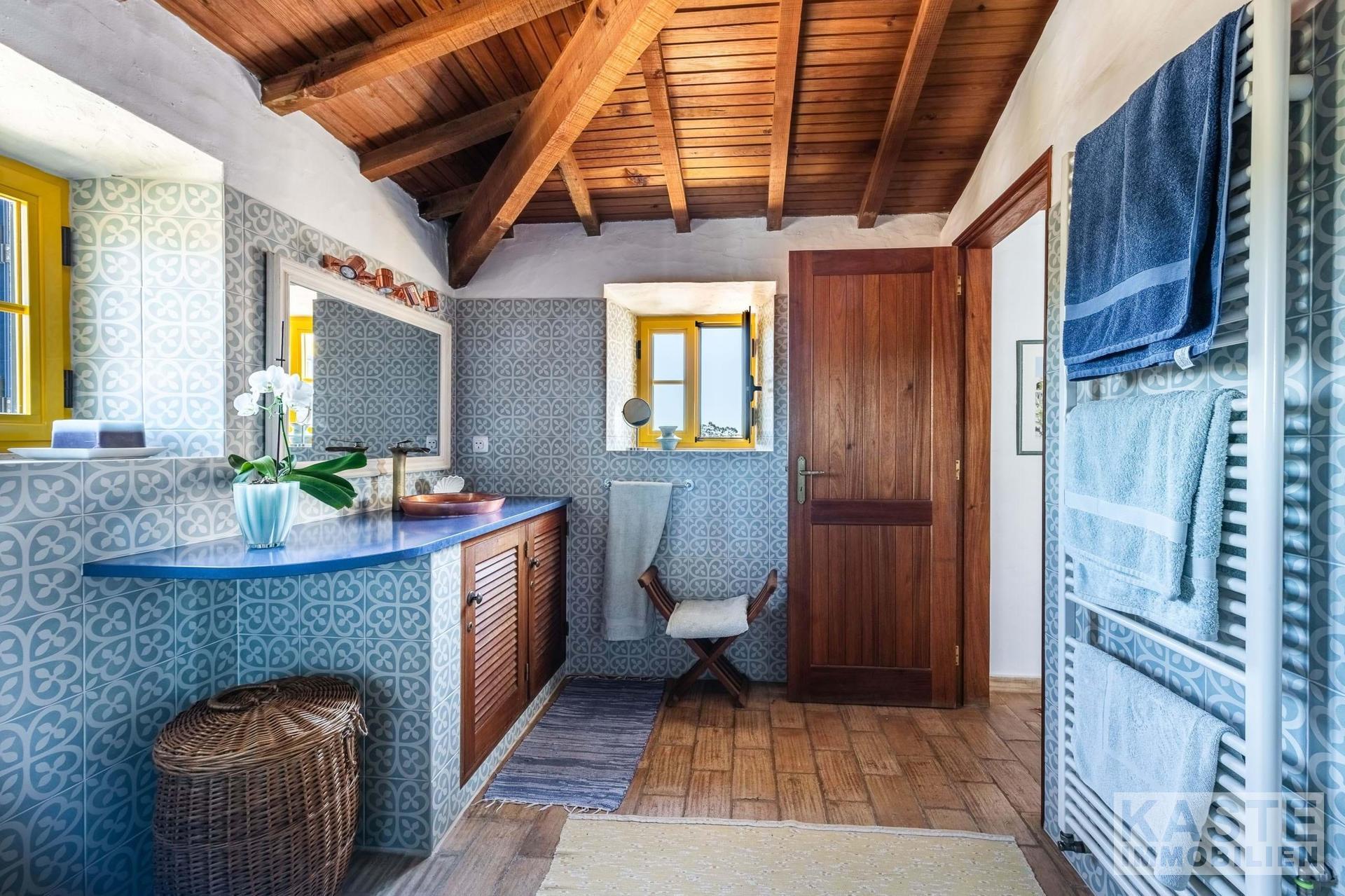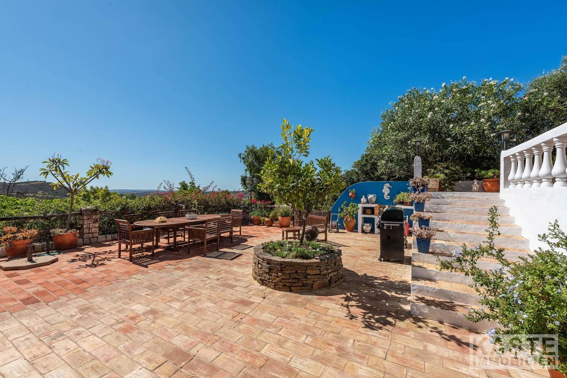 Die Residenz besteht aus einem eleganten Haupthaus mit vier großzügigen Schlafzimmern und sieben voll ausgestatteten Badezimmern sowie einem charmanten separaten Cottage mit zwei Schlafzimmern. Das Ambiente vereint klassischen portugiesischen Charme mit modernem Komfort und anspruchsvoller Ausstattung. Durchdachte Architektur sorgt für lichtdurchflutete Räume, die direkt auf Terrasse und Poolbereich zugreifen, von wo aus das beeindruckende Panorama entdeckt werden kann.