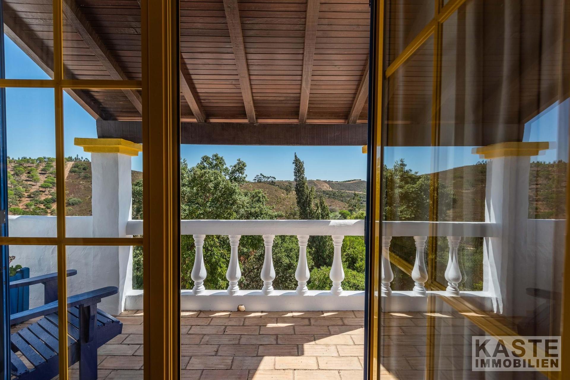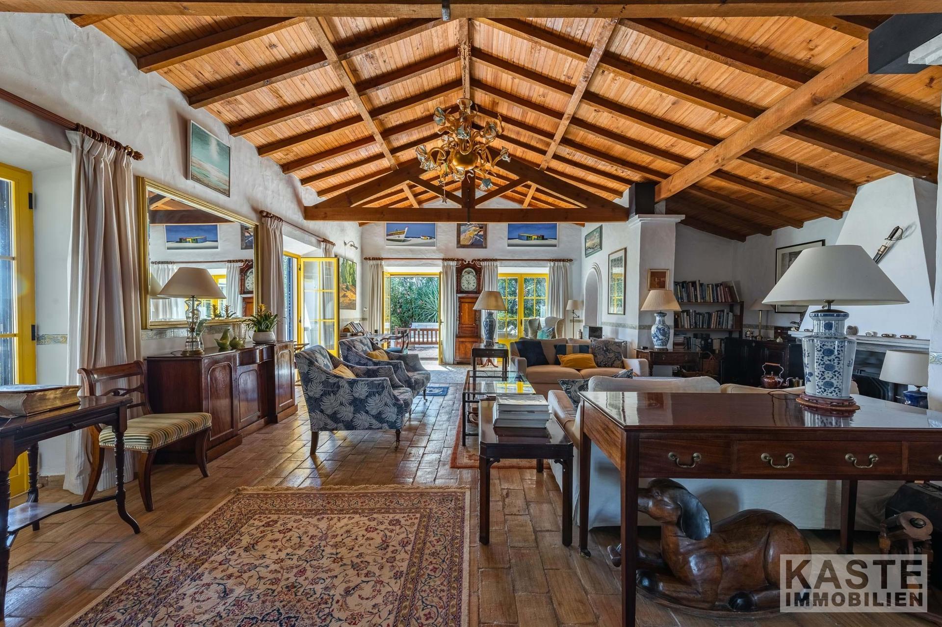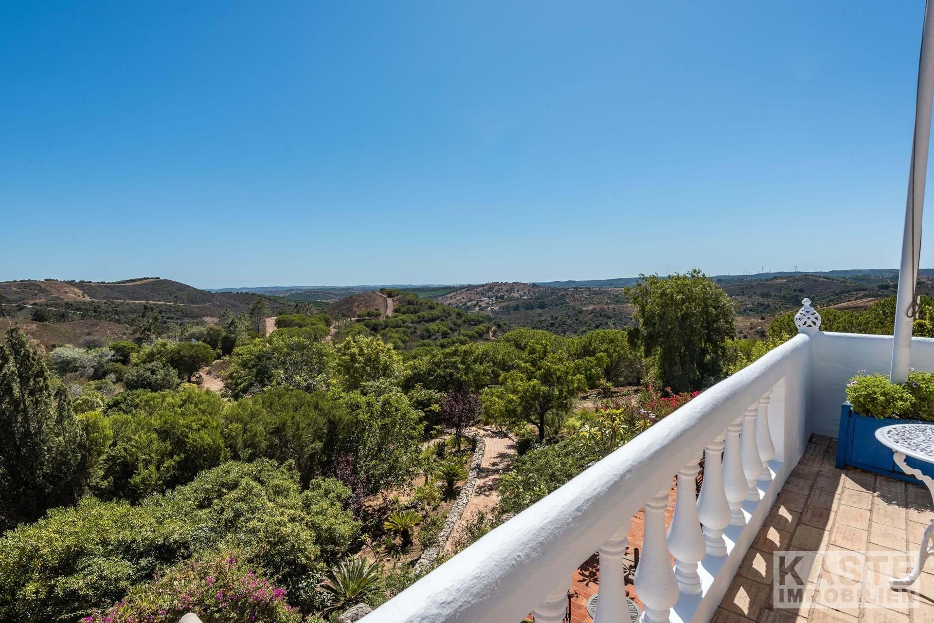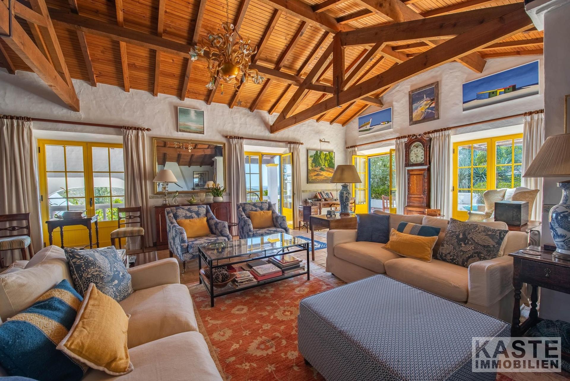 Die Residenz besteht aus einem eleganten Haupthaus mit vier großzügigen Schlafzimmern und sieben voll ausgestatteten Badezimmern sowie einem charmanten separaten Cottage mit zwei Schlafzimmern. Das Ambiente vereint klassischen portugiesischen Charme mit modernem Komfort und anspruchsvoller Ausstattung. Durchdachte Architektur sorgt für lichtdurchflutete Räume, die direkt auf Terrasse und Poolbereich zugreifen, von wo aus das beeindruckende Panorama entdeckt werden kann.
