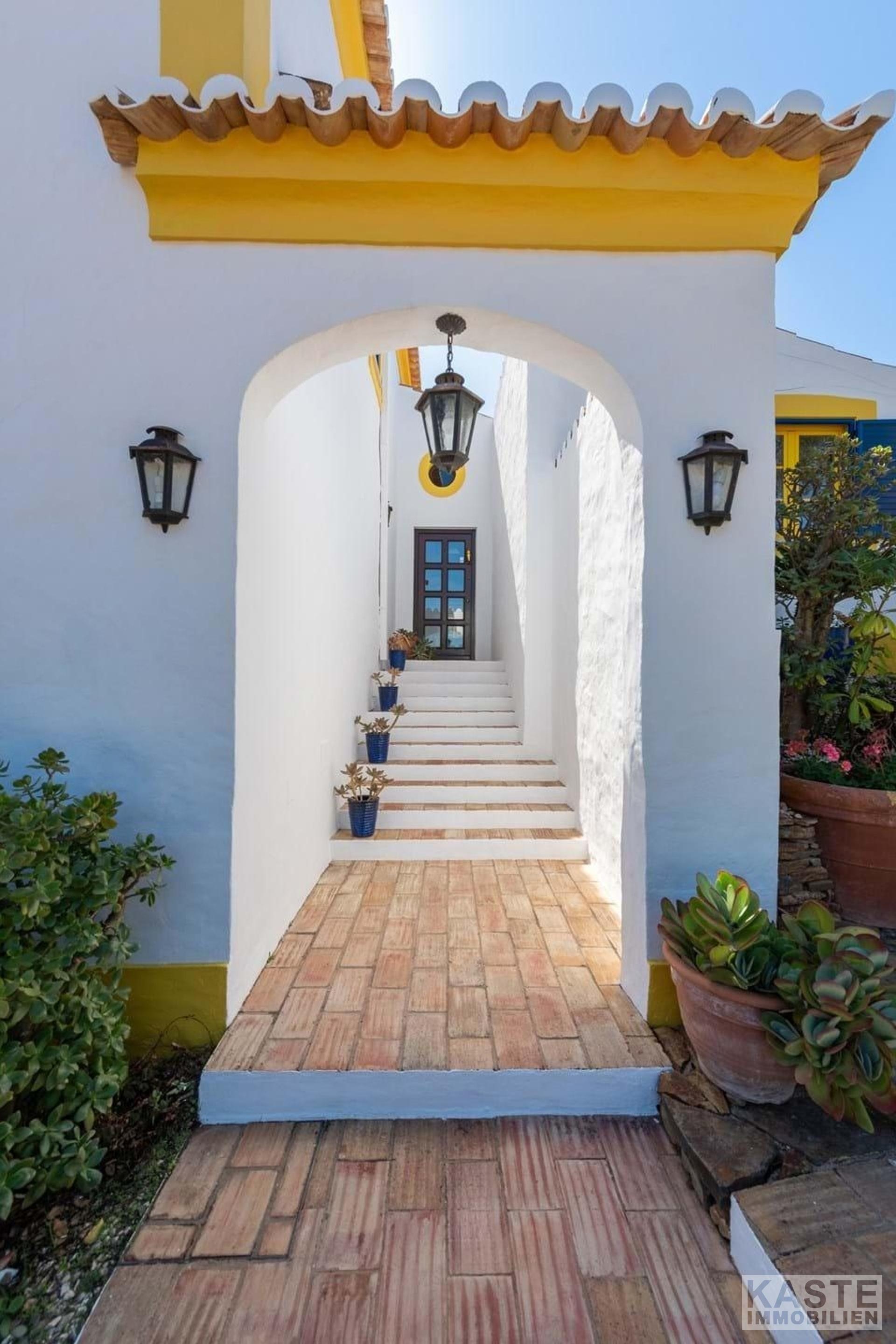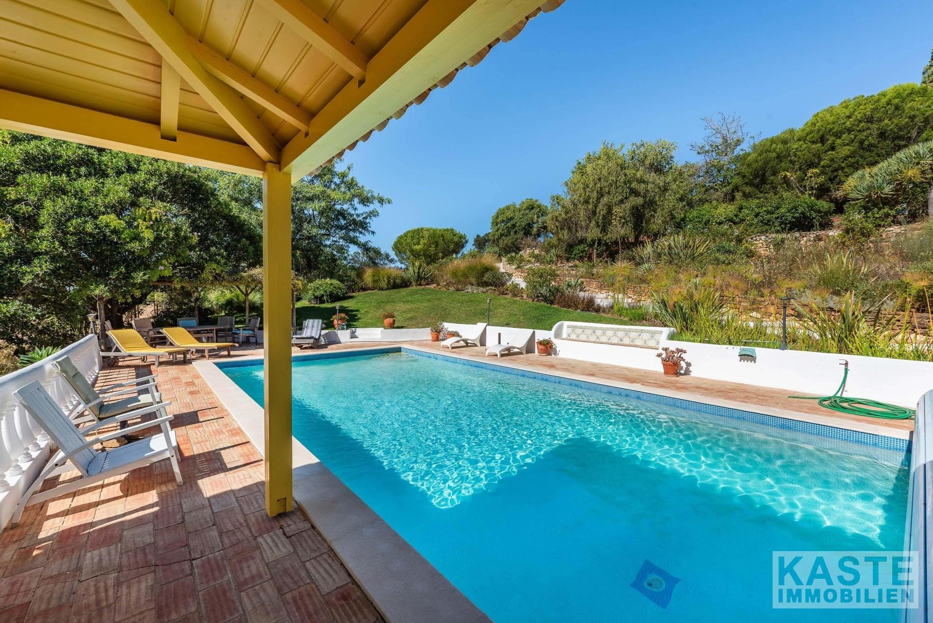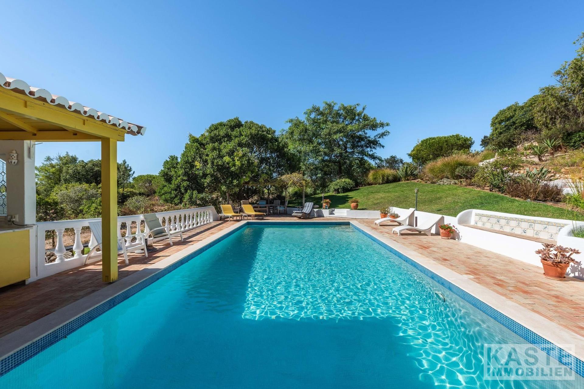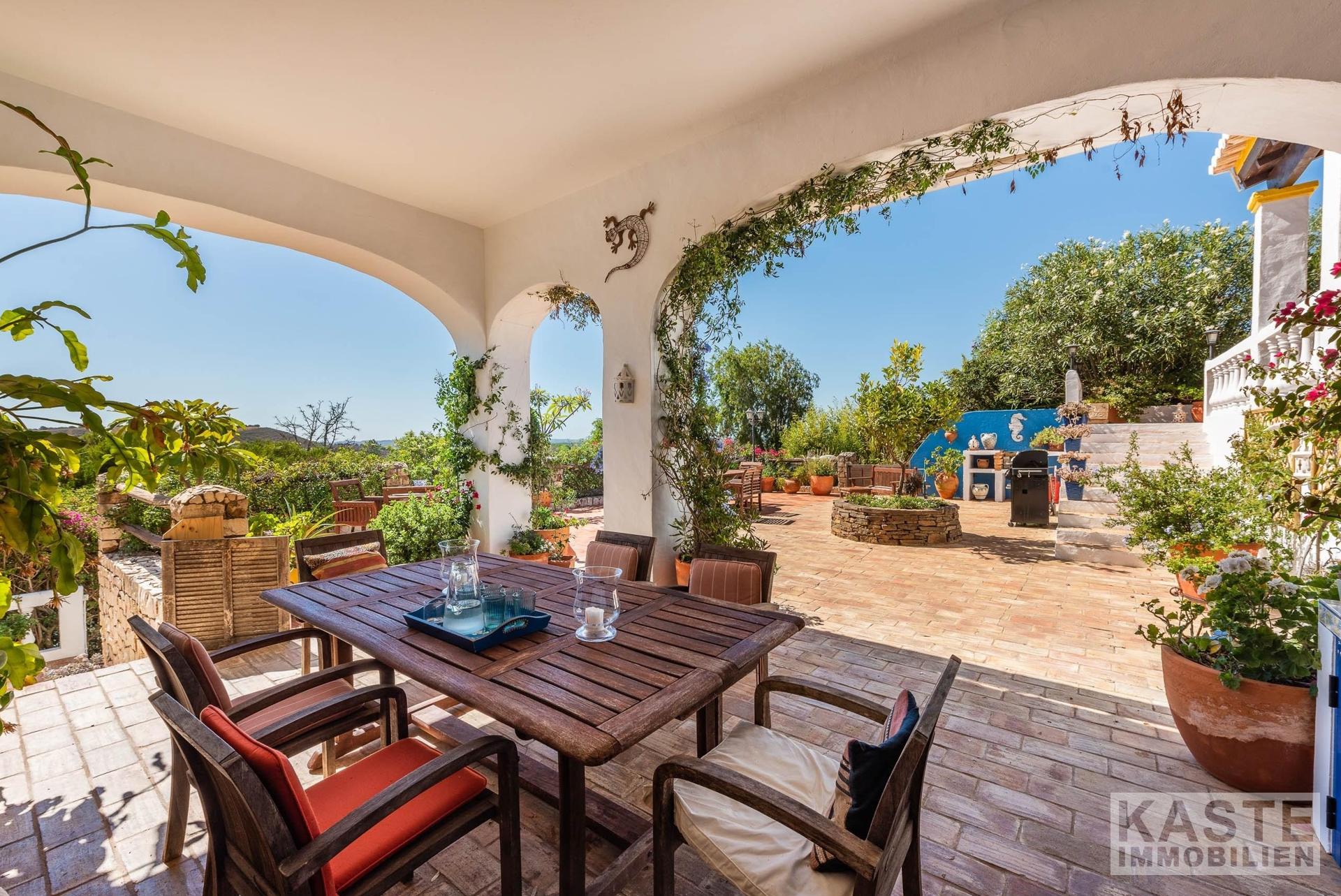 Die Residenz besteht aus einem eleganten Haupthaus mit vier großzügigen Schlafzimmern und sieben voll ausgestatteten Badezimmern sowie einem charmanten separaten Cottage mit zwei Schlafzimmern. Das Ambiente vereint klassischen portugiesischen Charme mit modernem Komfort und anspruchsvoller Ausstattung. Durchdachte Architektur sorgt für lichtdurchflutete Räume, die direkt auf Terrasse und Poolbereich zugreifen, von wo aus das beeindruckende Panorama entdeckt werden kann.