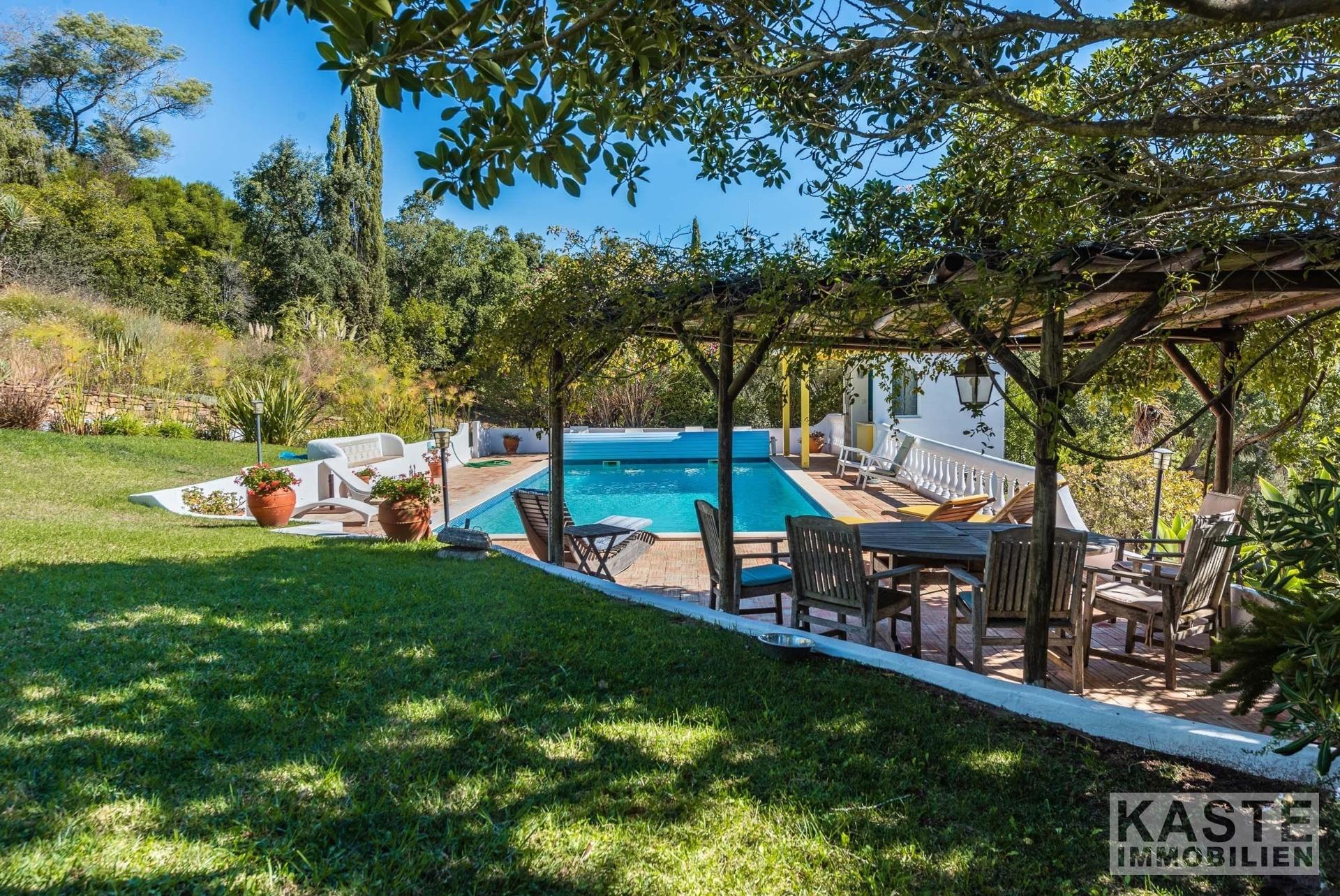 Dieses außergewöhnliche Anwesen auf den sanften Hügeln von Pincho, nur 20 Minuten nördlich von Lagos in der Algarve, verkörpert die perfekte Symbiose aus naturnaher Idylle und luxuriösem Lebensstil. Auf einem großzügigen 17 Hektar umfassenden Grundstück erstrecken sich gepflegte alte Gärten, weitläufige Obst- und Olivenhaine sowie zwei private Seen, die für eine unvergleichliche Atmosphäre der Ruhe und Privatsphäre sorgen. Hier genießen Sie einen atemberaubenden Panoramablick, der sich über den herrlichen Südküstenabschnitt Portugals bis zum Meer zieht.