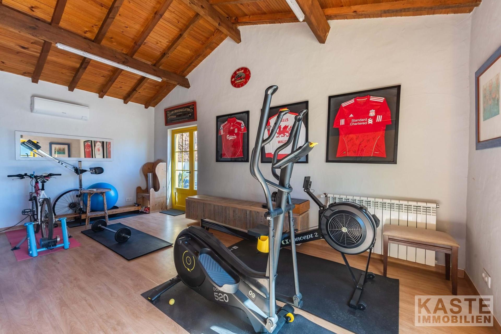 Ein 55 m² großer, beheizter Swimmingpool, ein Tennisplatz und eine Garage mit integriertem Fitnessraum und Sauna unterstreichen den exzellenten Freizeitwert des Grundstücks. Nachhaltigkeit spielt eine große Rolle: Photovoltaikanlagen zusammen mit Batteriespeichern garantieren nahezu autarke Energieversorgung und Warmwasserbereitung. Traditionelle Elemente wie ein geschlossener Kamin ergänzen trotz modernster Technik das komfortable Wohngefühl.