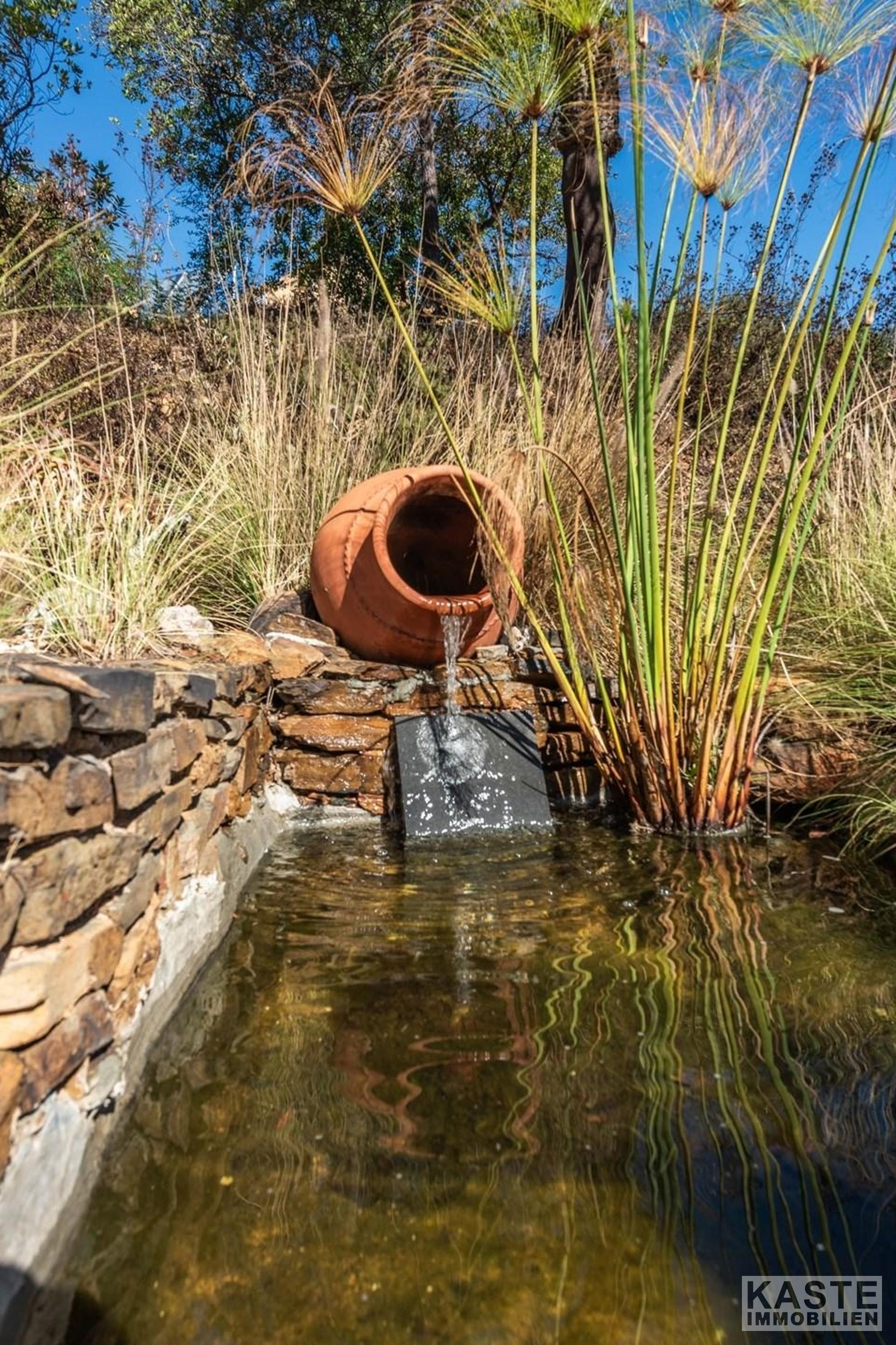 Außenbereich & Grundstück - 17 Hektar Grundstück mit alten Gärten, Obst- und Olivenhainen - Privater beheizter 55 m² Swimmingpool - Tennisplatz - Zwei eigene Seen - Große Terrasse mit Garten- und Terrassenmöbeln - Sommerküche mit Grill - Bewässerungssystem - Garage